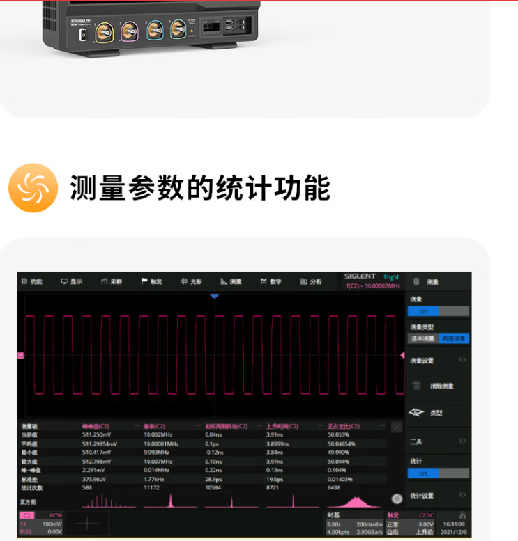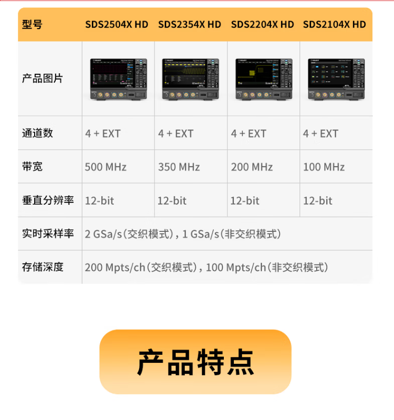 SIGLENT digital oscilloscope SDS2000X HD series 4 channels 200M storage depth 2G sampling SDS2504X HD (500M bandwidth 2G sampling)