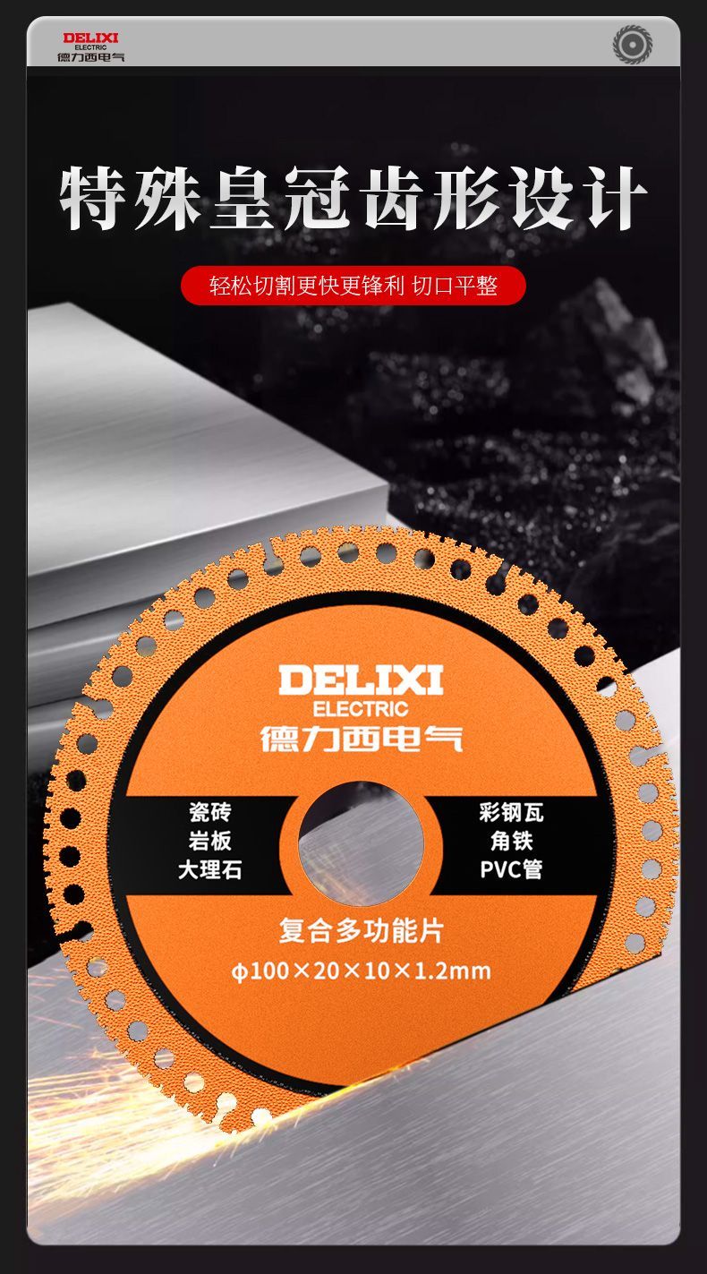 Delixi Electric Multifunctional Cutting Blade Angle Grinder Composite Blade Stainless Steel Metal Angle Iron Diamond Cutting Saw Blade Sharp and Wear-Resistant Industrial Grade Multifunctional Cutting Blade 2 Pack