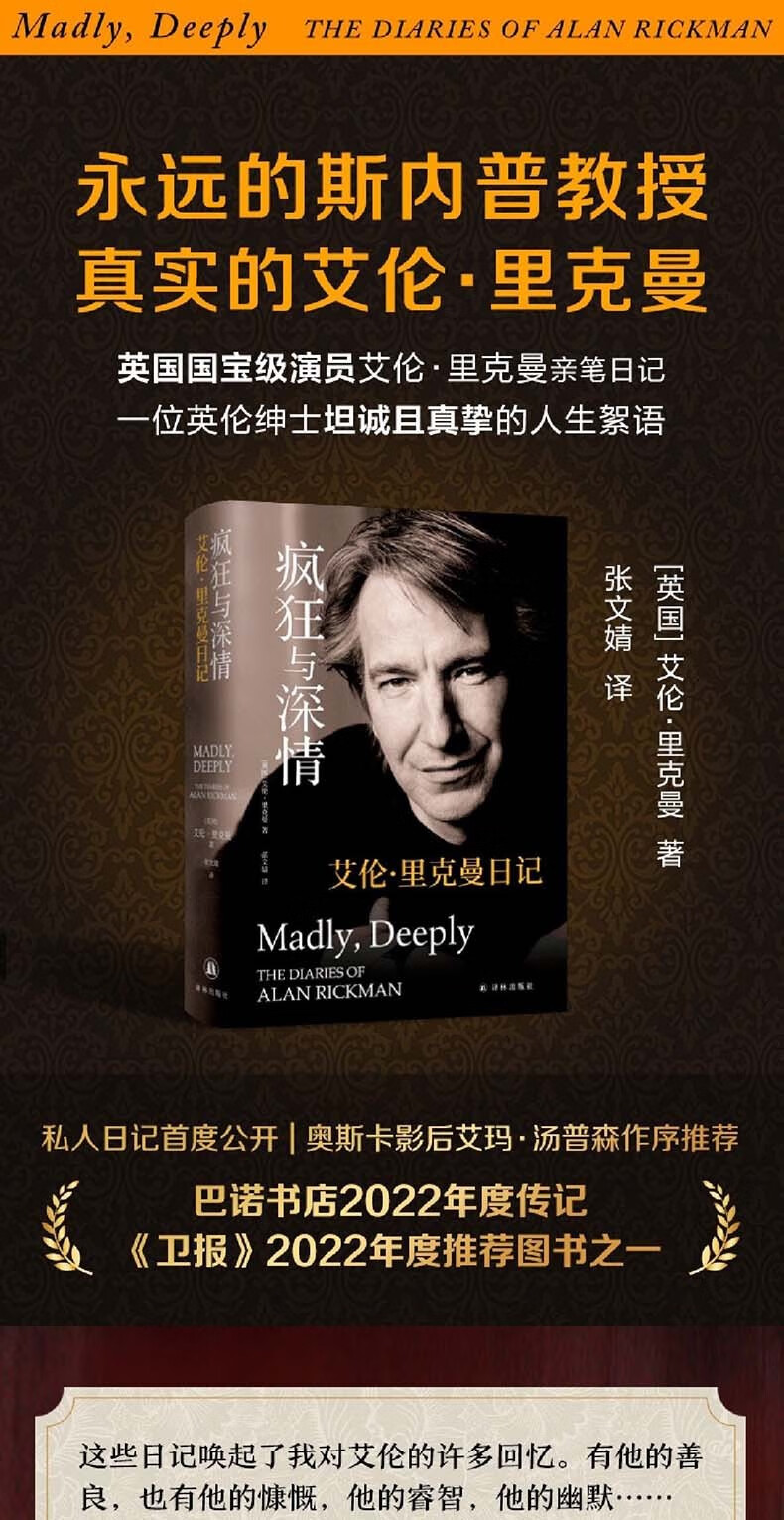 Crazy and Affectionate Alan Rickman's Diary Alan Rickman's Private Diary, a British gentleman's candid and sincere life quotes