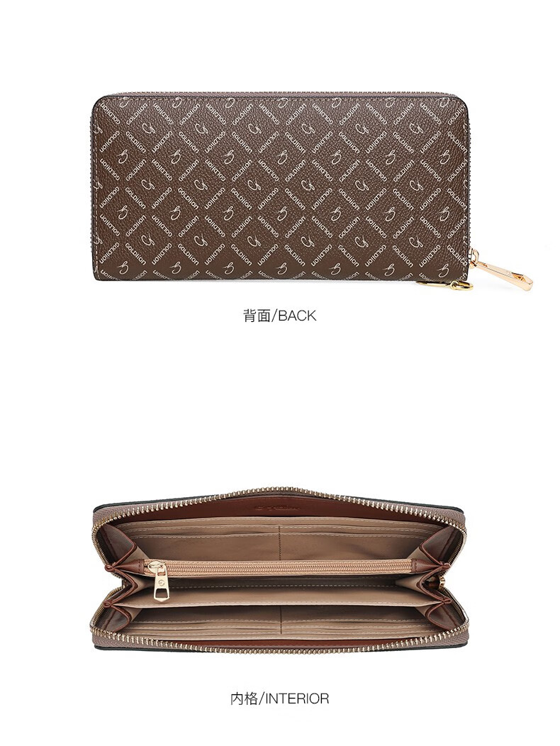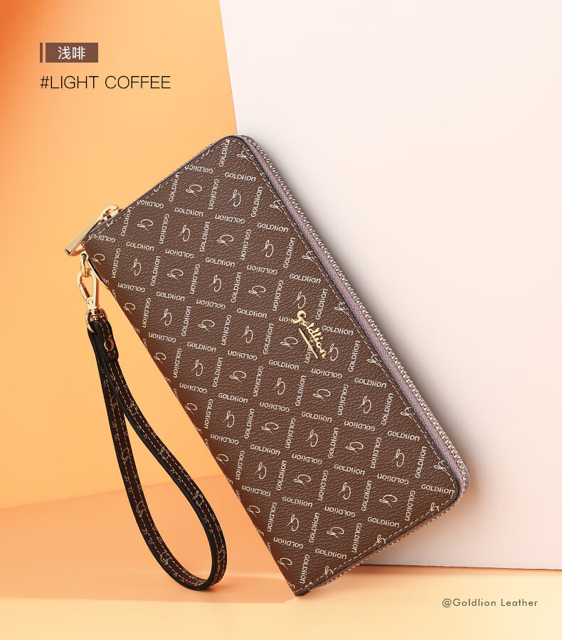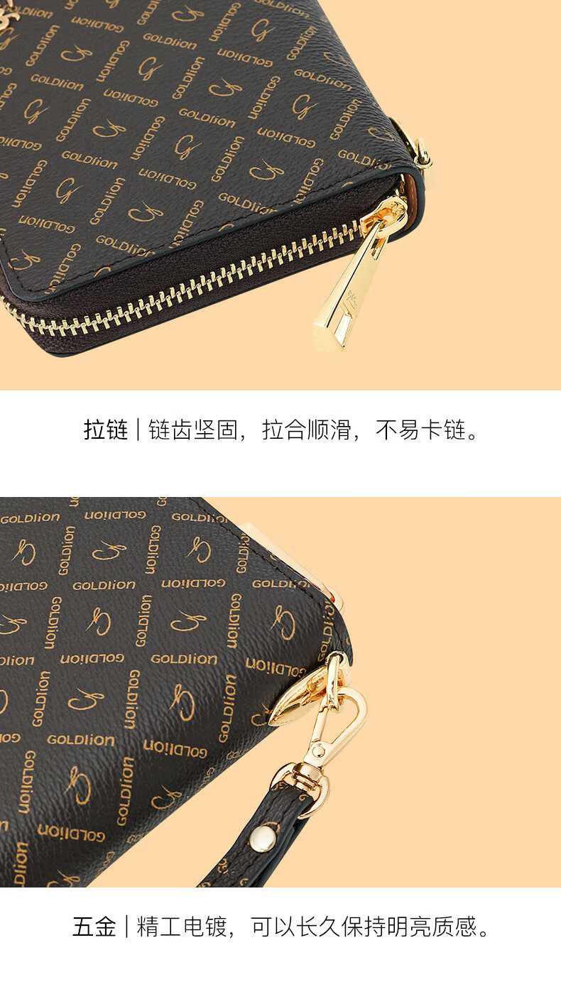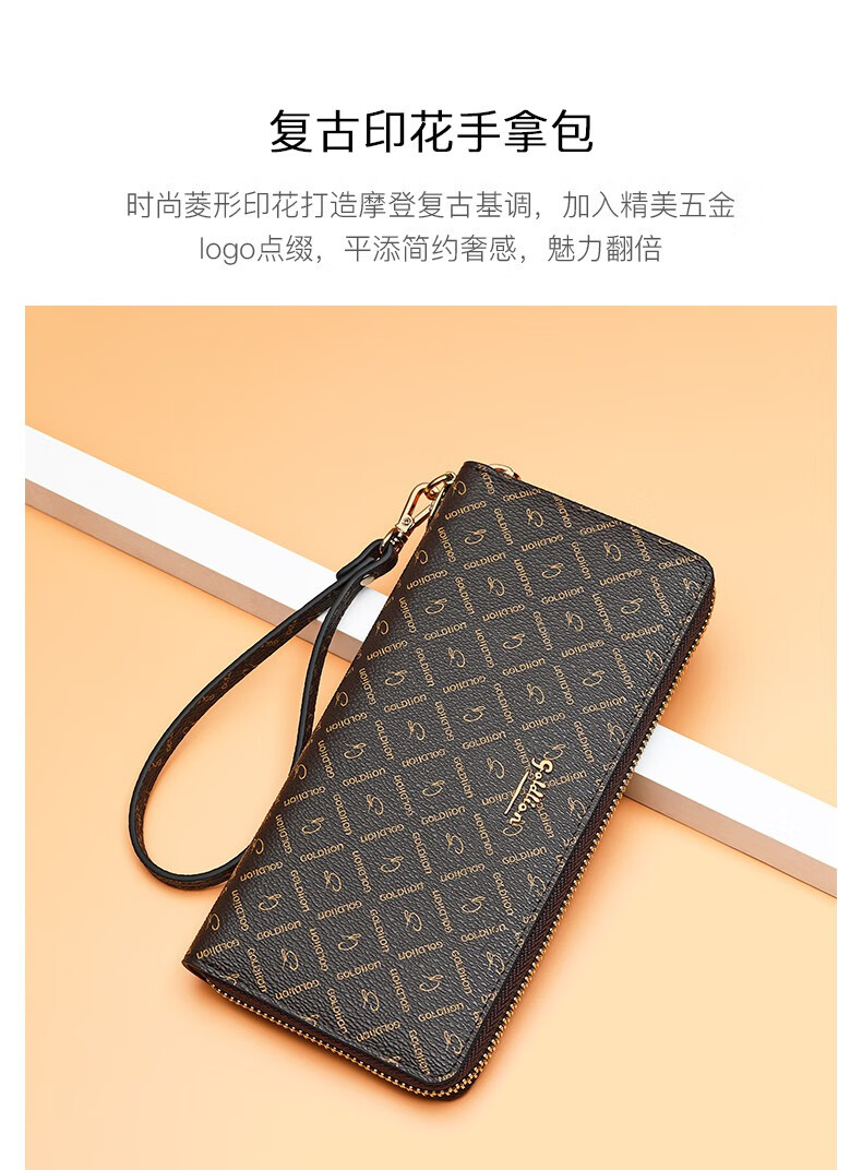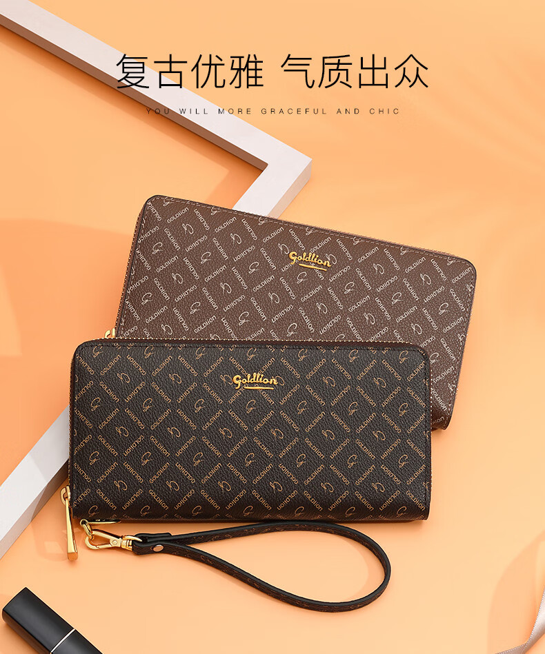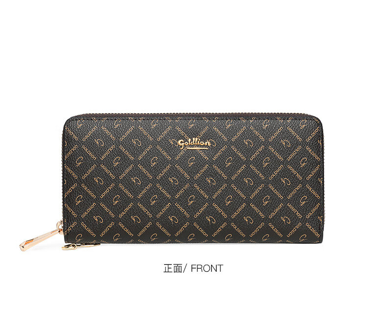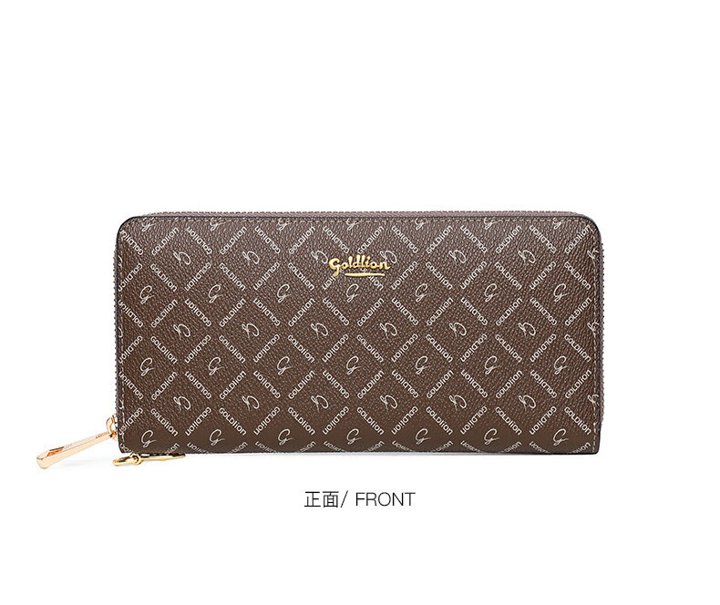 Goldlion Wallet Women's 2025 New Clutch Printed Long Zipper Multifunctional Coin Purse Women's Wallet Clutch Dark Brown