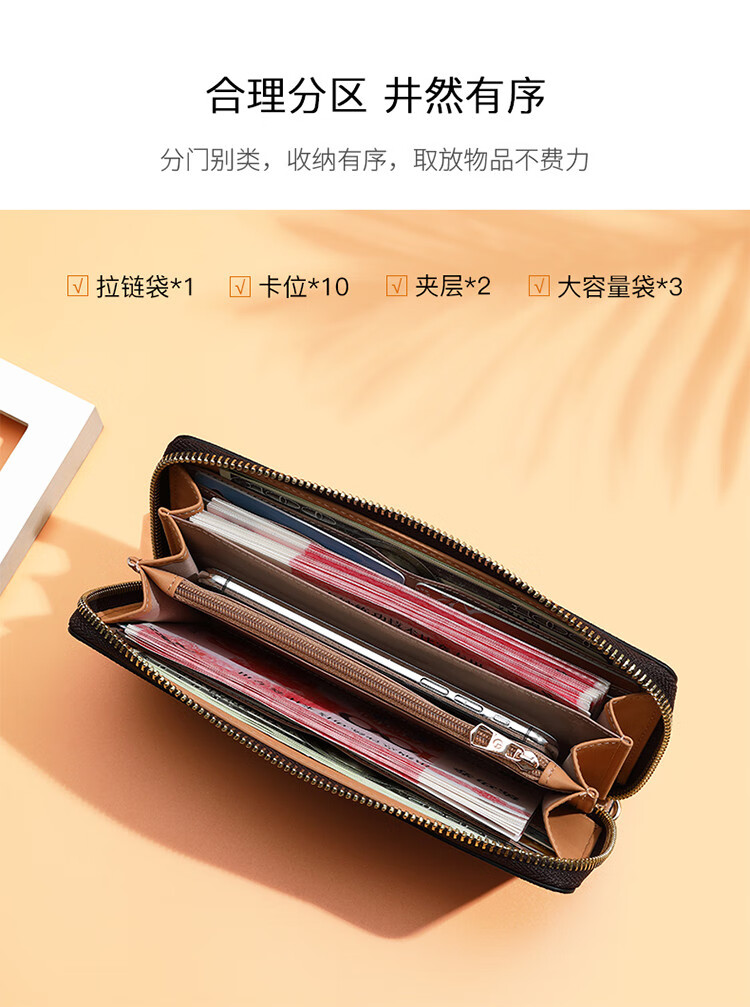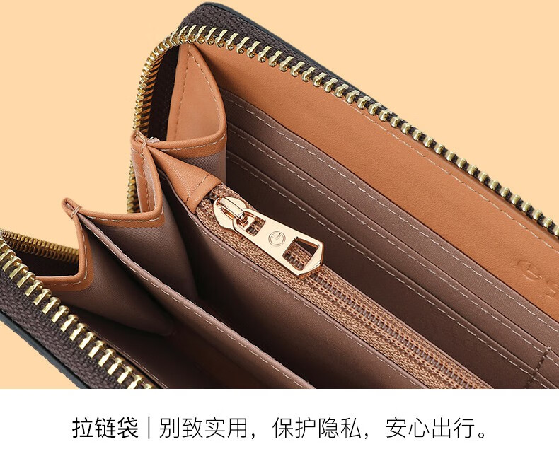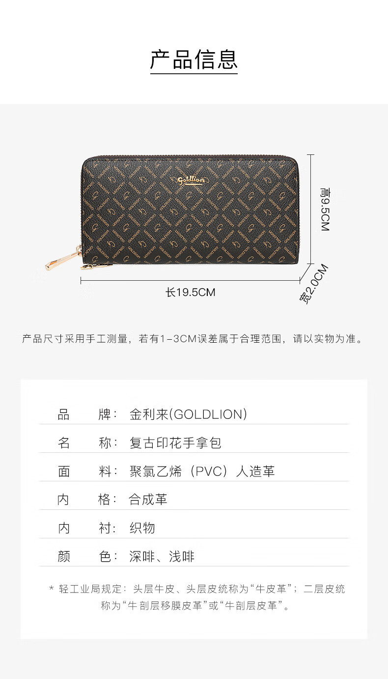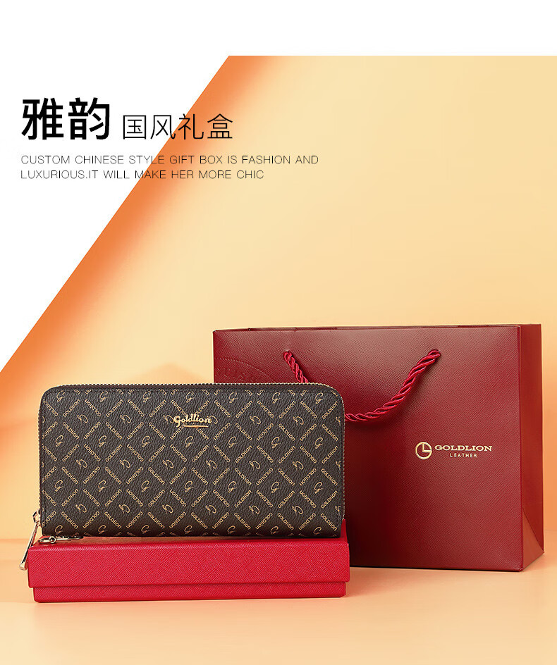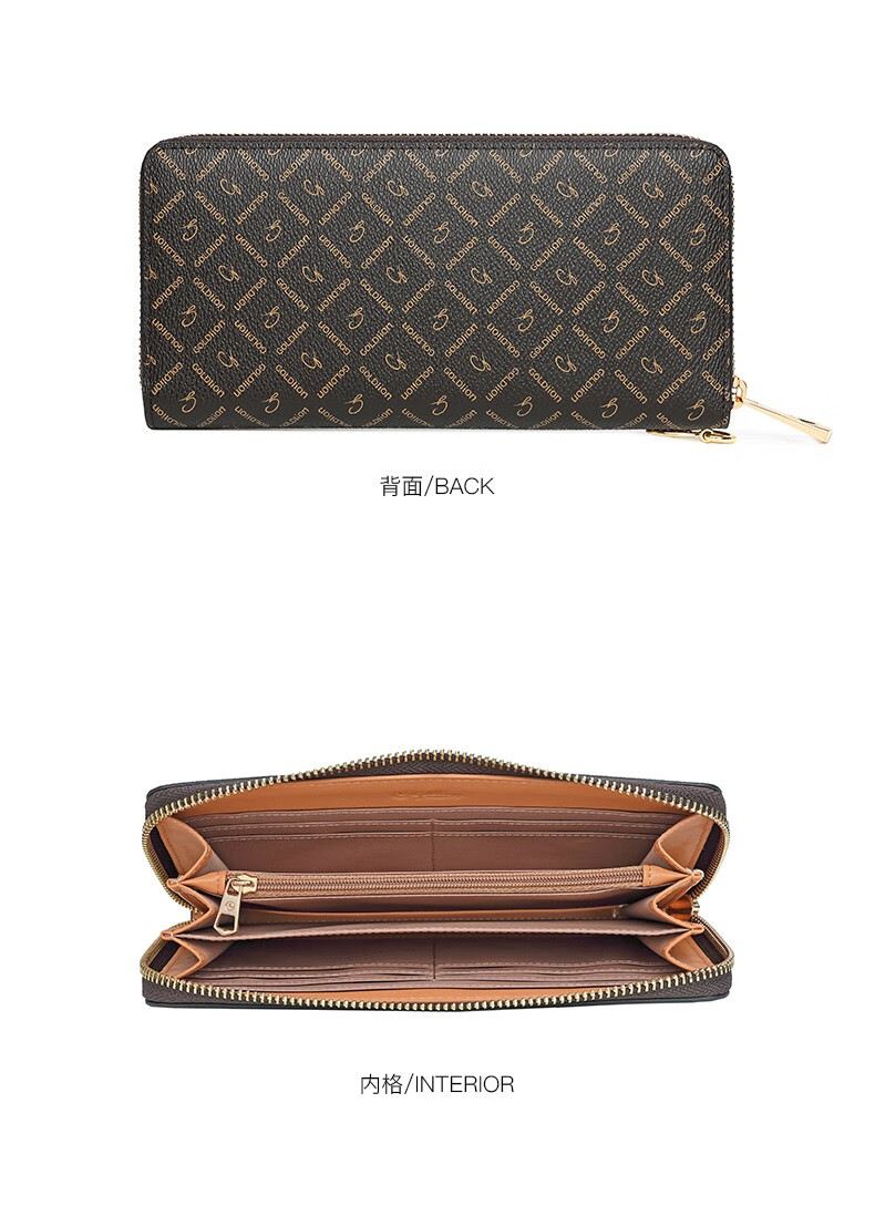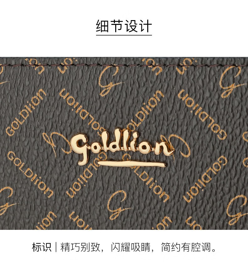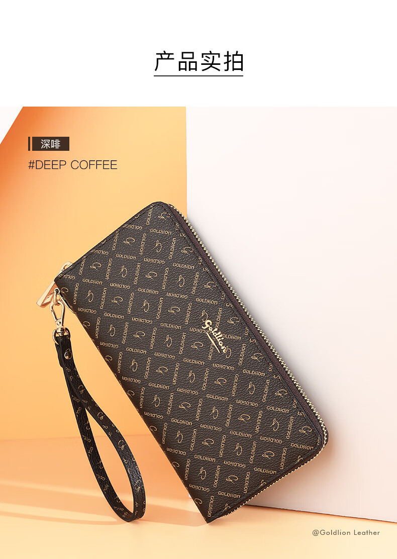 Goldlion Wallet Women's 2025 New Clutch Printed Long Zipper Multifunctional Coin Purse Women's Wallet Clutch Dark Brown