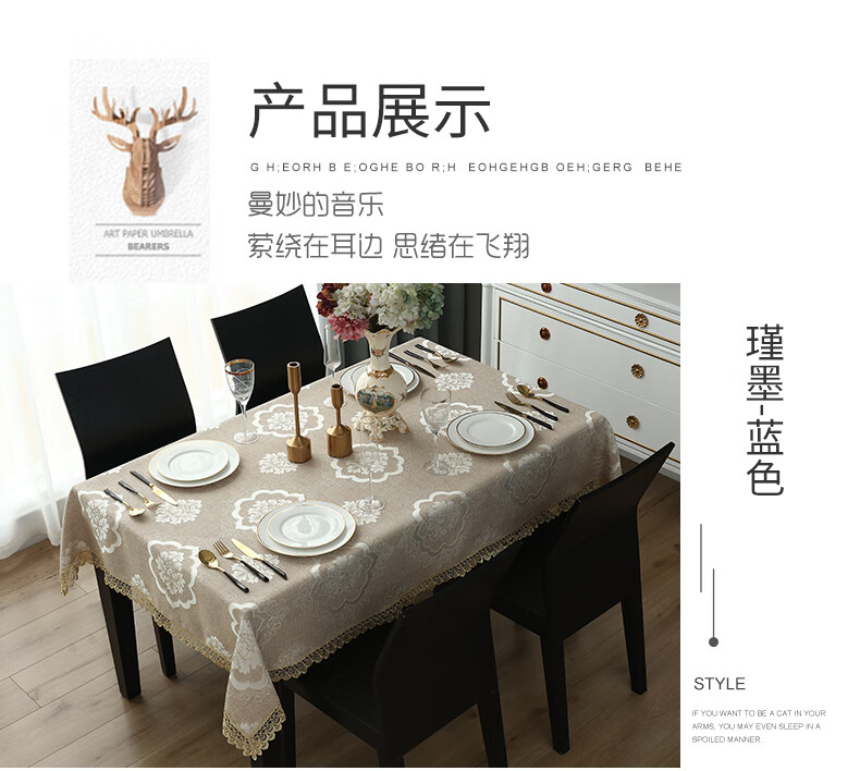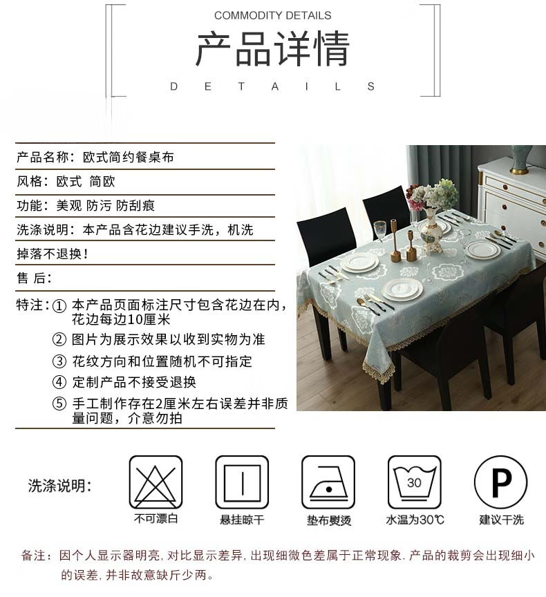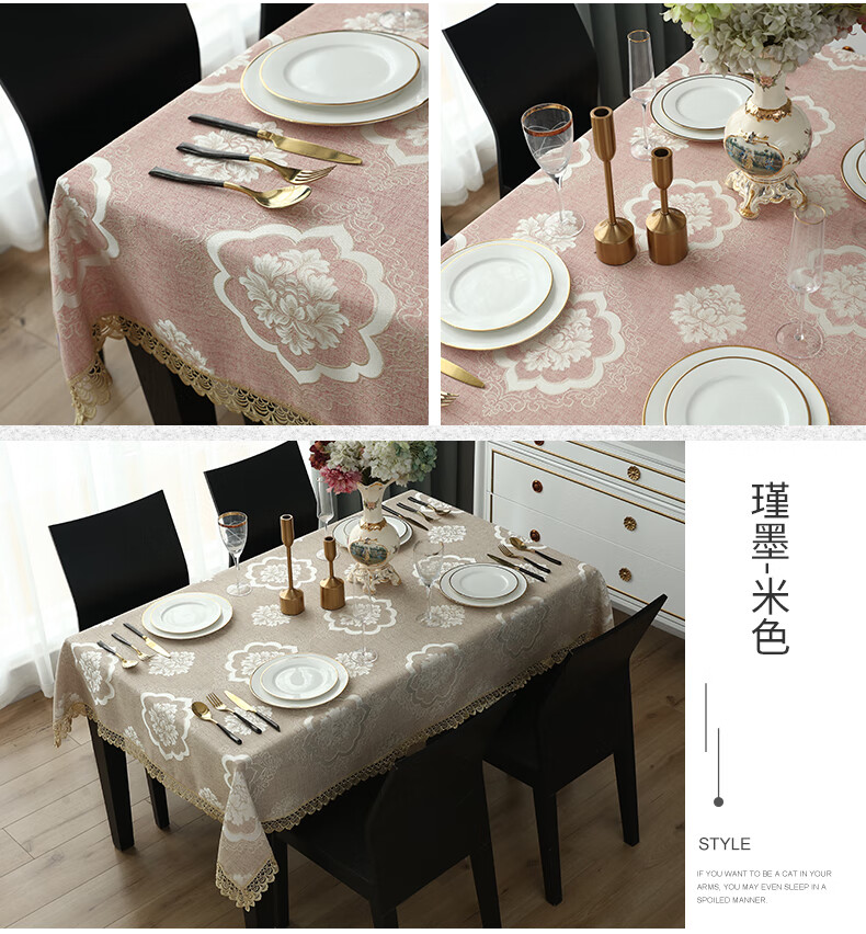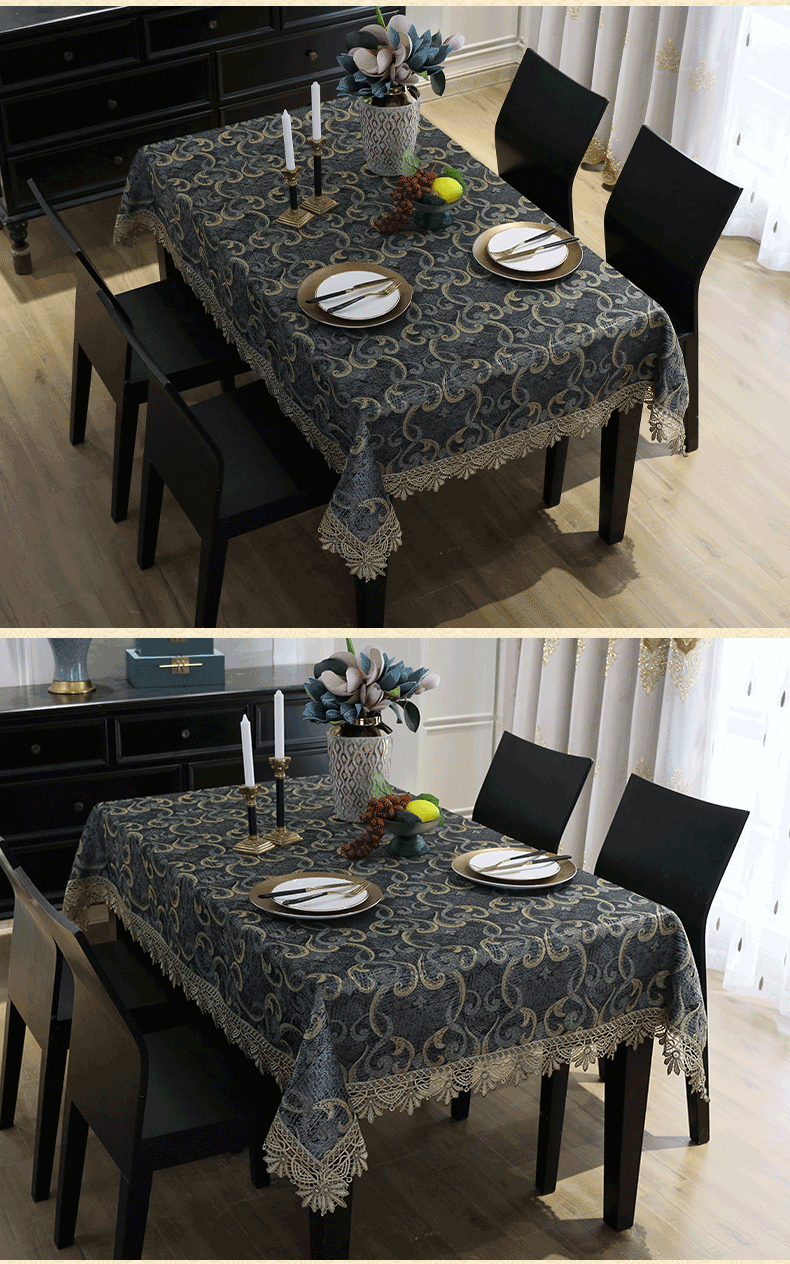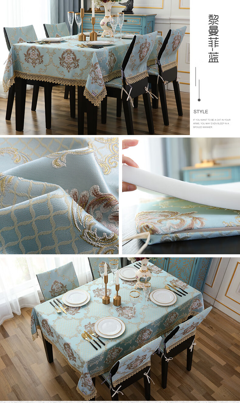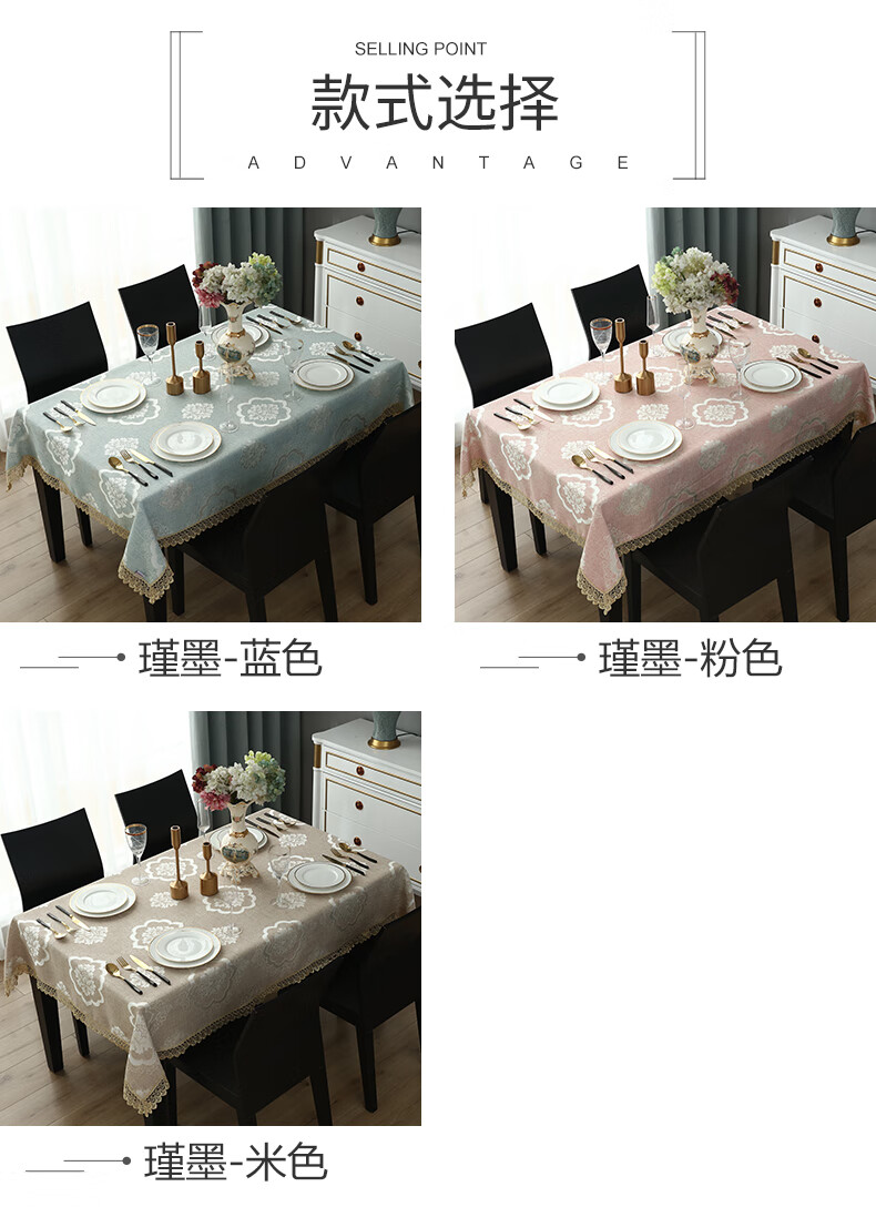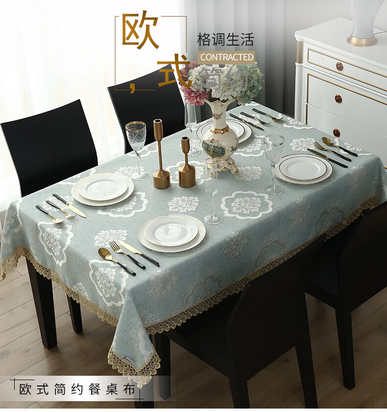 Bansheng European rectangular dining table tablecloth living room home coffee table cloth lace square tablecloth Leman Fei-blue 140*200cm (including lace)