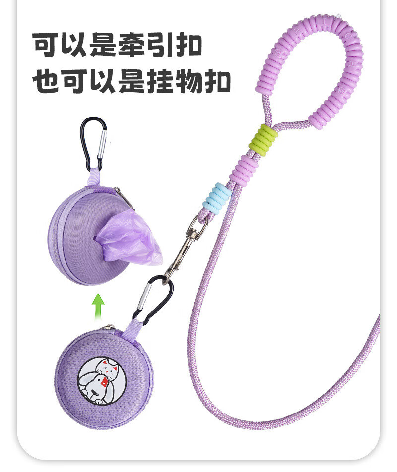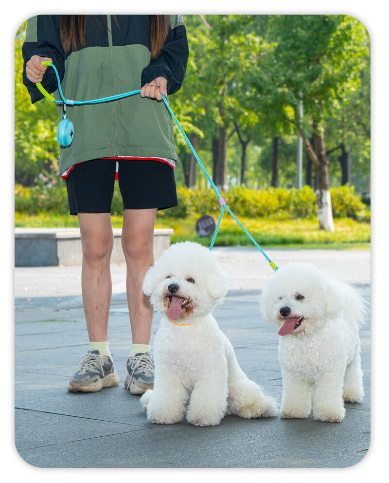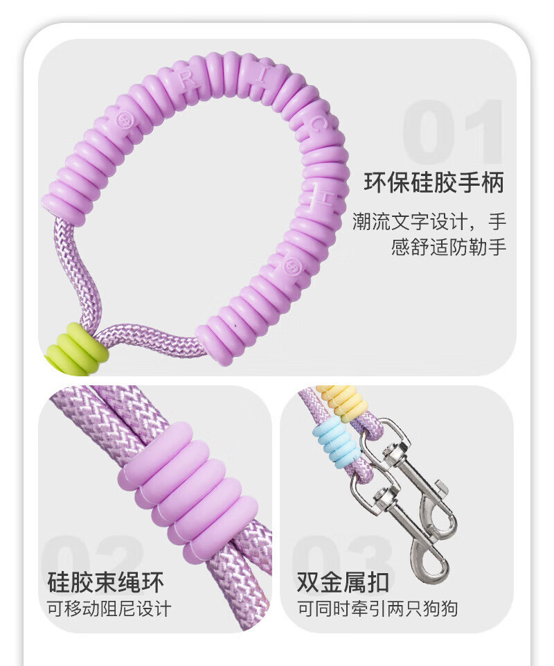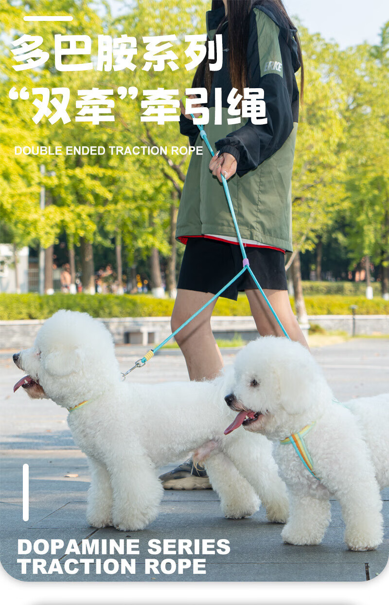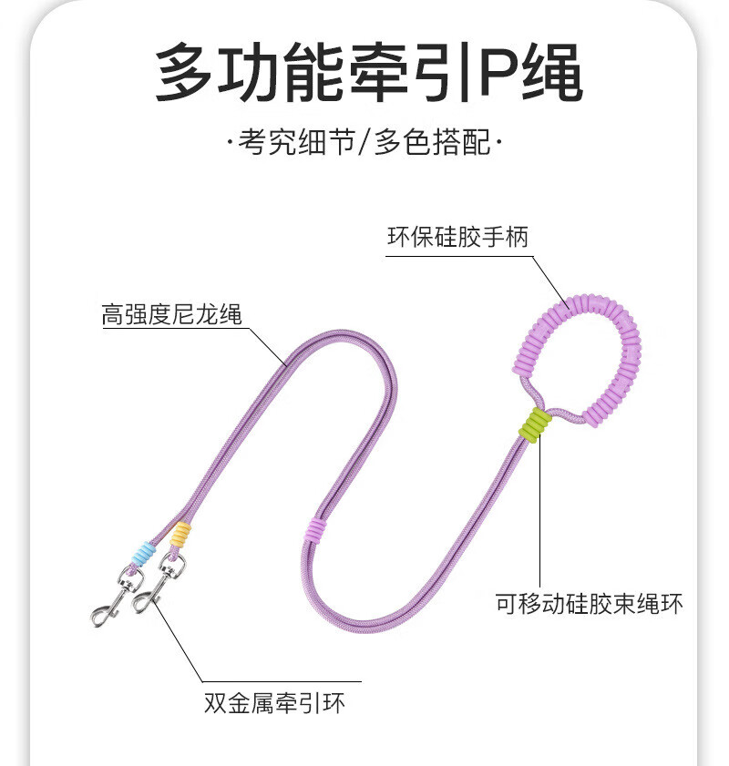 He Jiangong dog rope one to two traction rope double-headed dog rope two dogs double chain traction dog walking rope small dog two-headed rope double-headed traction rope - purple 100cm