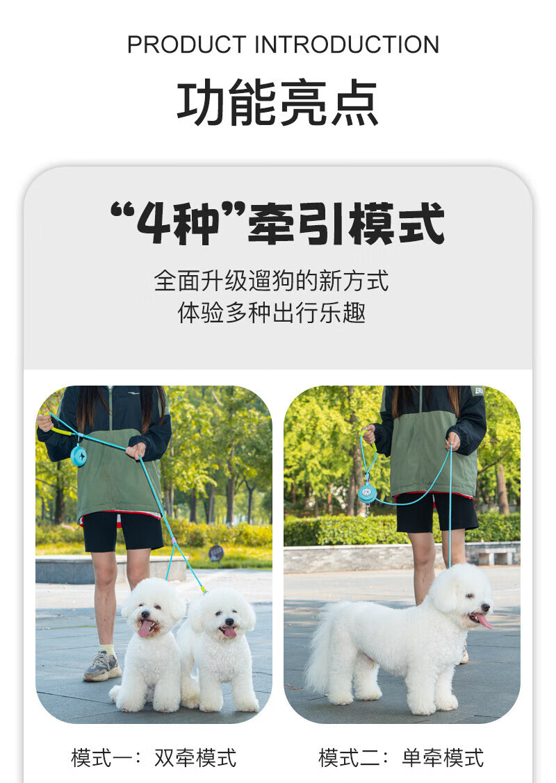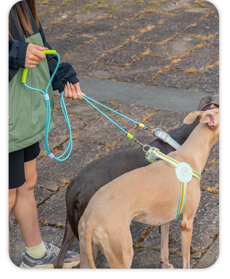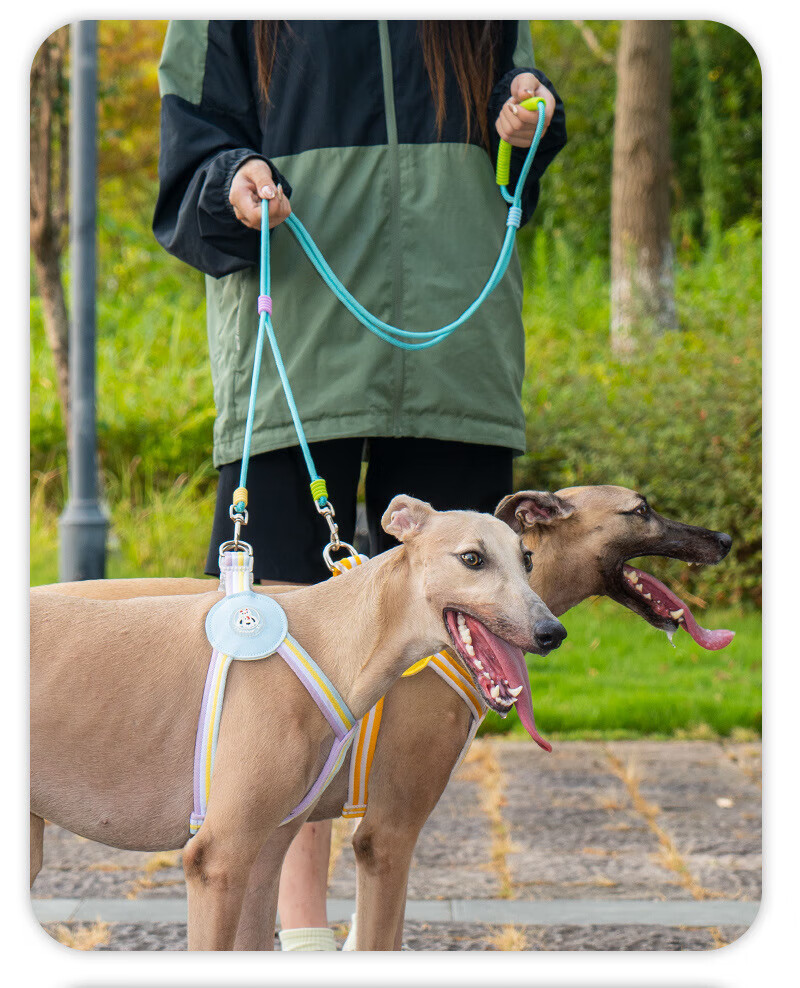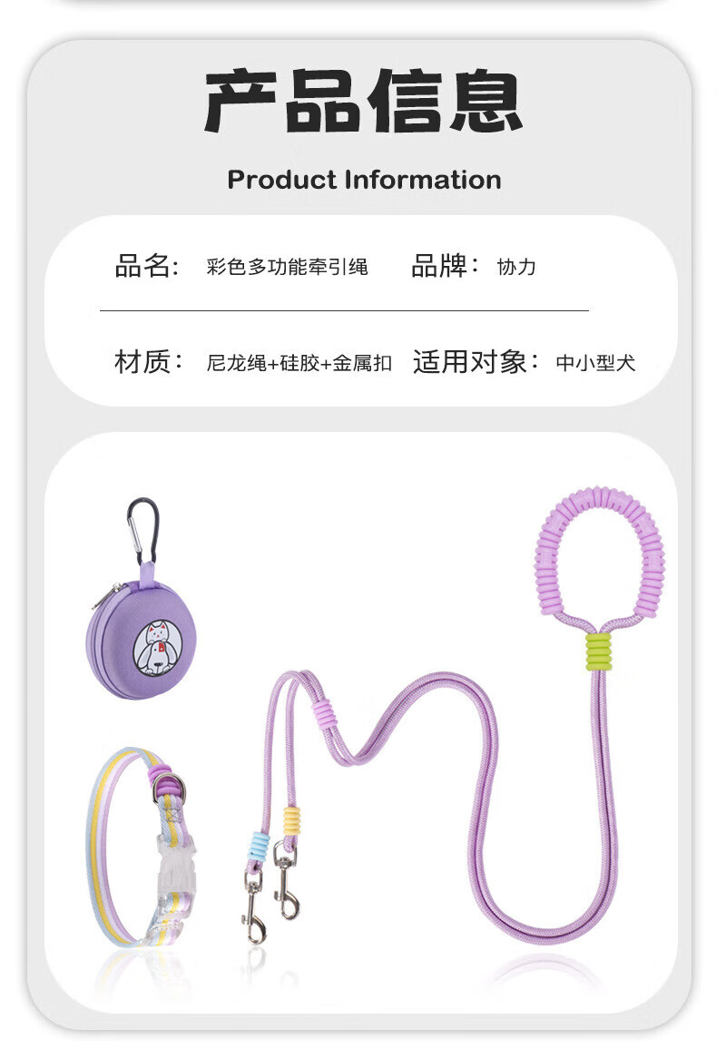 He Jiangong dog rope one to two traction rope double-headed dog rope two dogs double chain traction dog walking rope small dog two-headed rope double-headed traction rope - purple 100cm