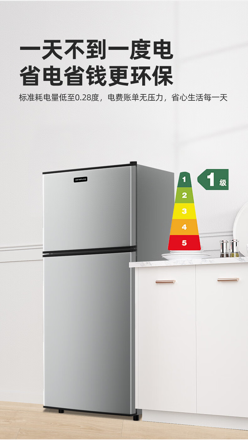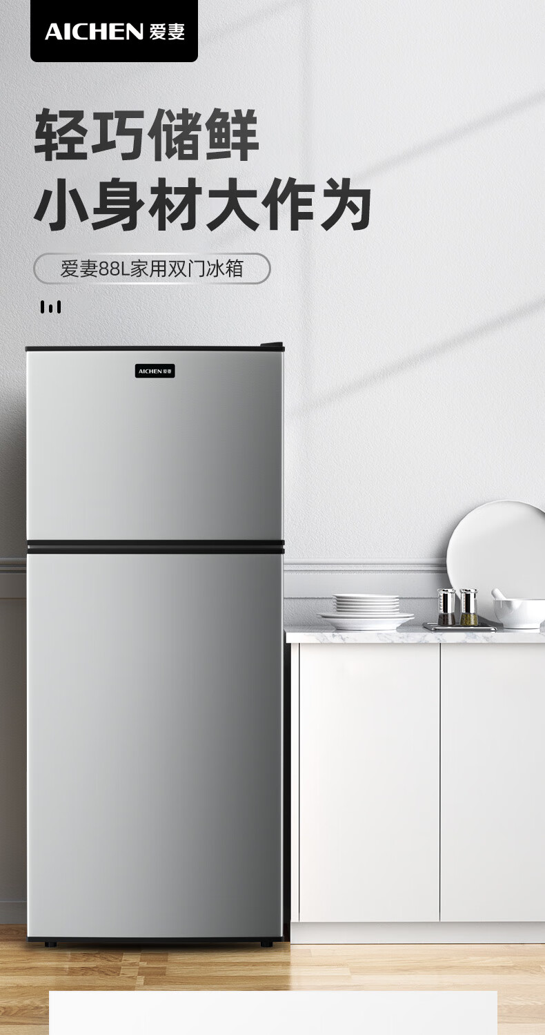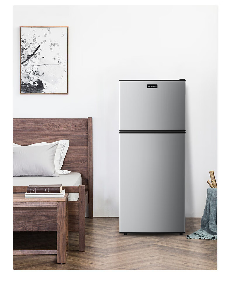 AICHEN small refrigerator mini small household refrigeration and freezing dual-purpose dormitory rental double-door office refrigerator energy-saving energy-saving first-class energy efficiency 56L silver approximately one hour of electricity in four days