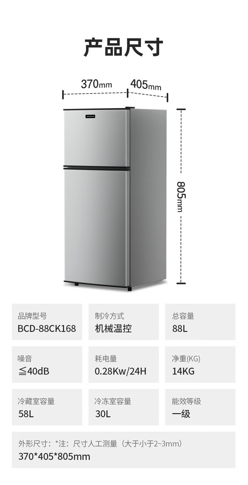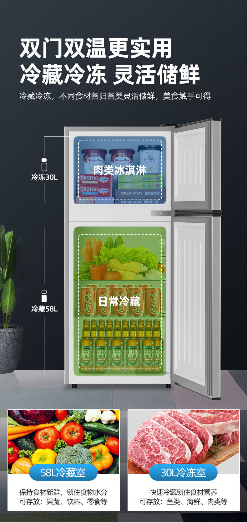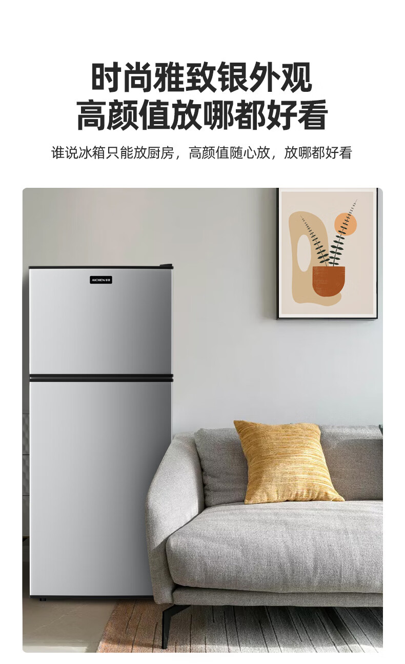 AICHEN small refrigerator mini small household refrigeration and freezing dual-purpose dormitory rental double-door office refrigerator energy-saving energy-saving first-class energy efficiency 56L silver approximately one hour of electricity in four days