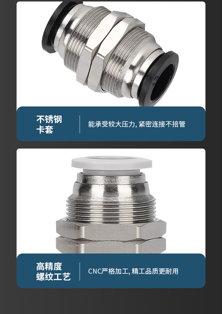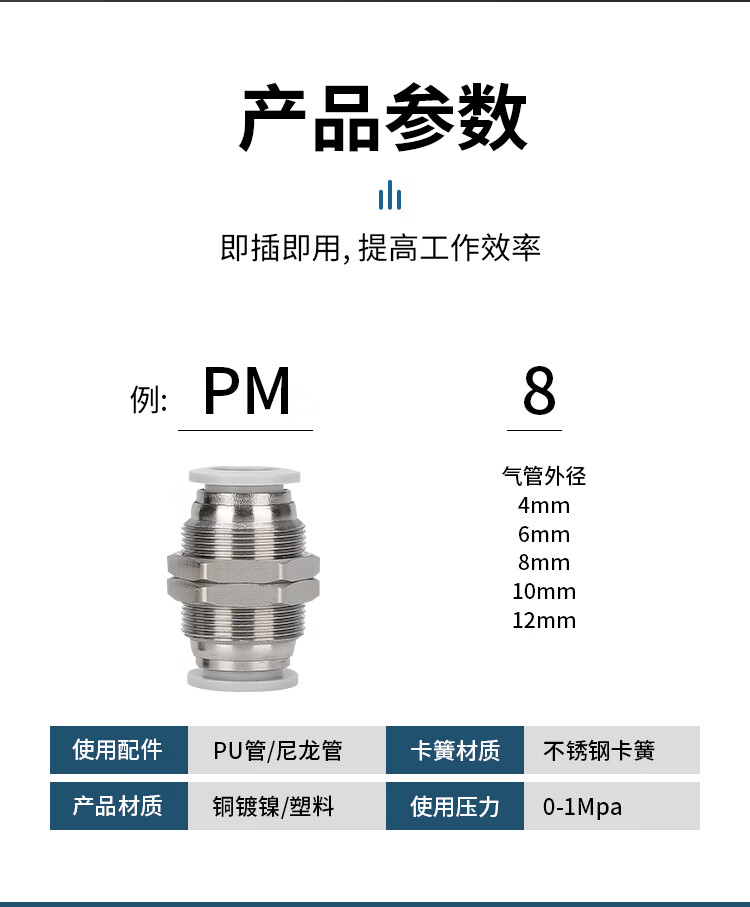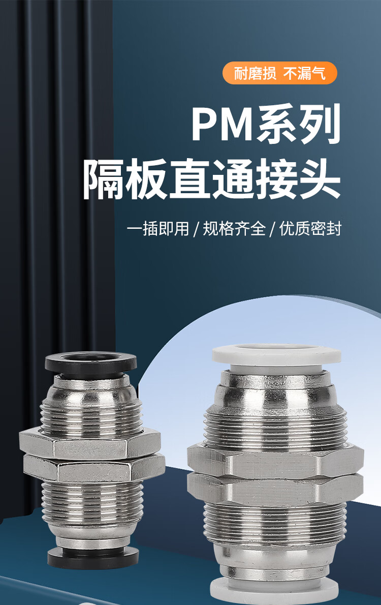 EXSN pneumatic quick connector PM partition straight through trachea quick plug threaded plate connector black and white PM-4/6/8/10/12 white PM-6