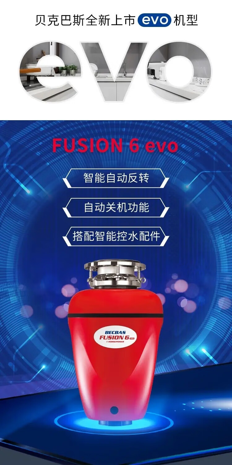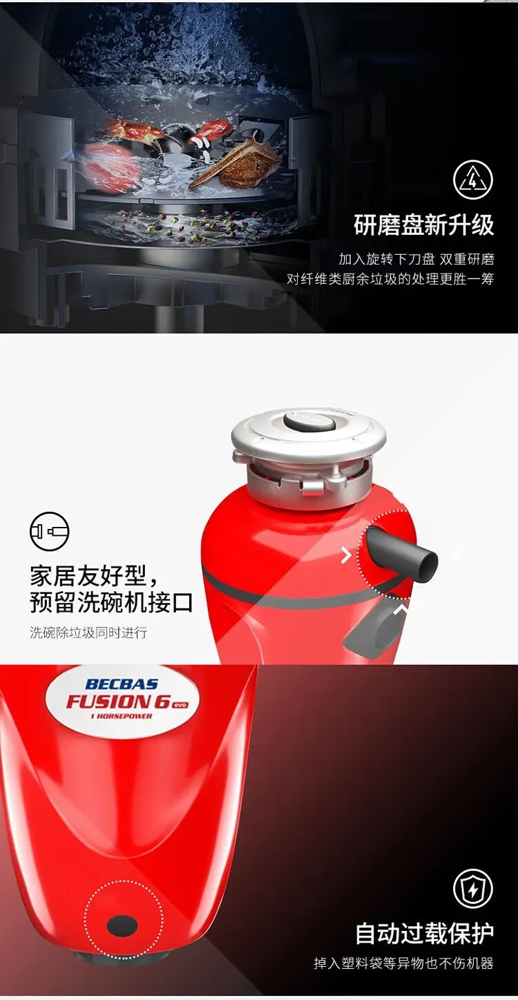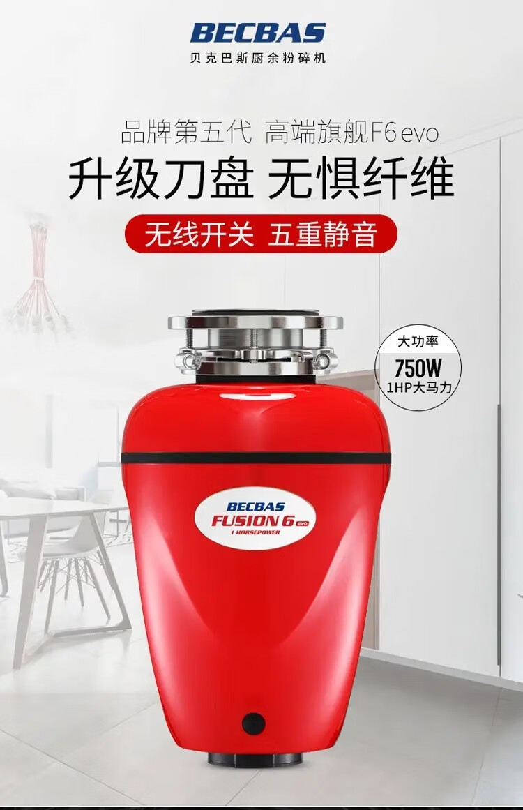 Baker Bass F6evo food waste disposer sink household kitchen food waste crusher resistance reverse high-power silent F6evo nationwide warranty includes installation