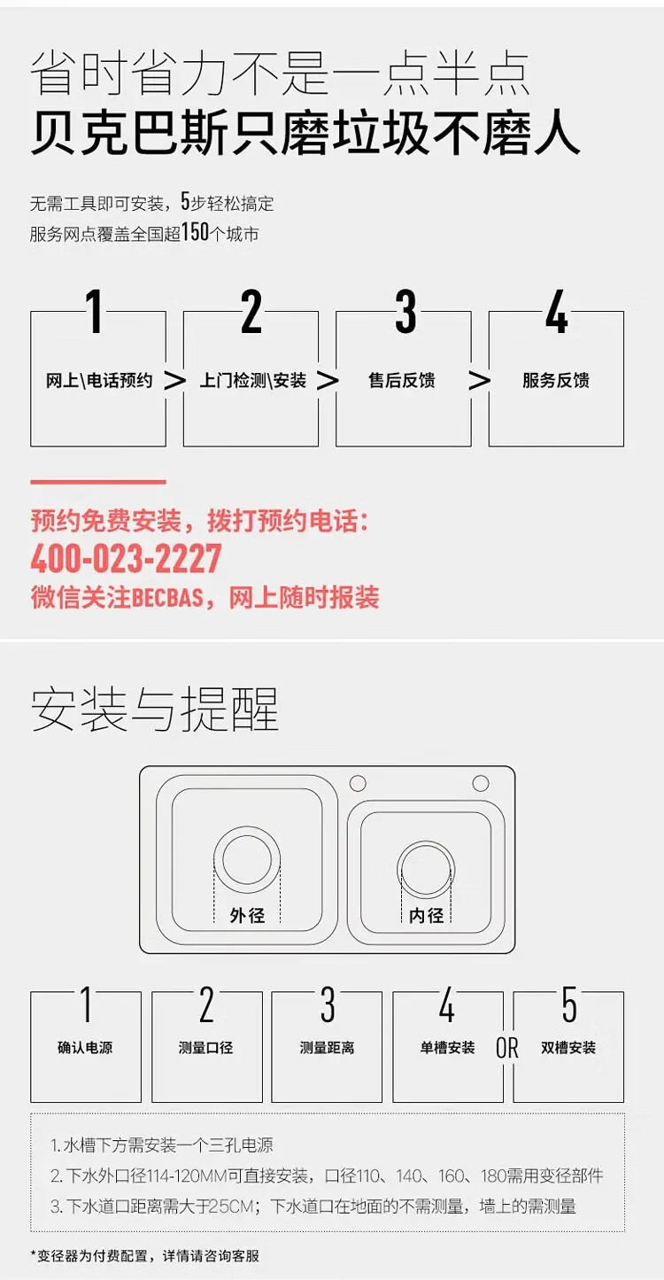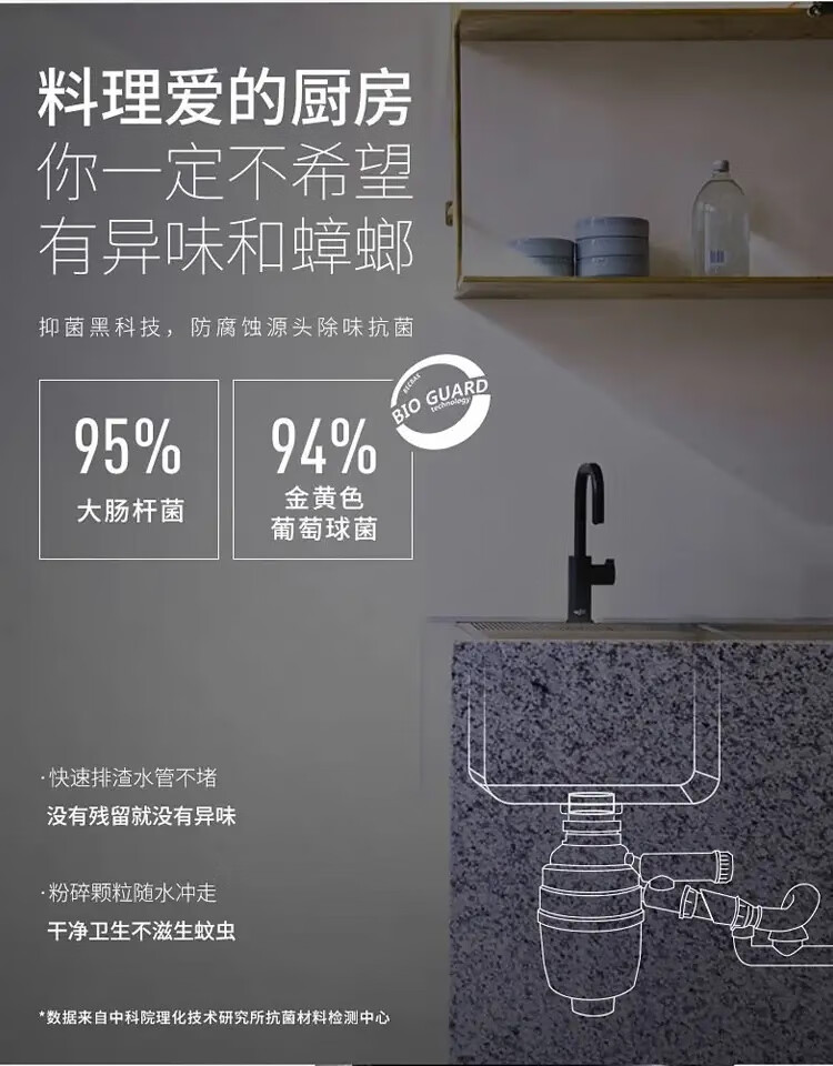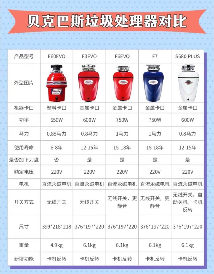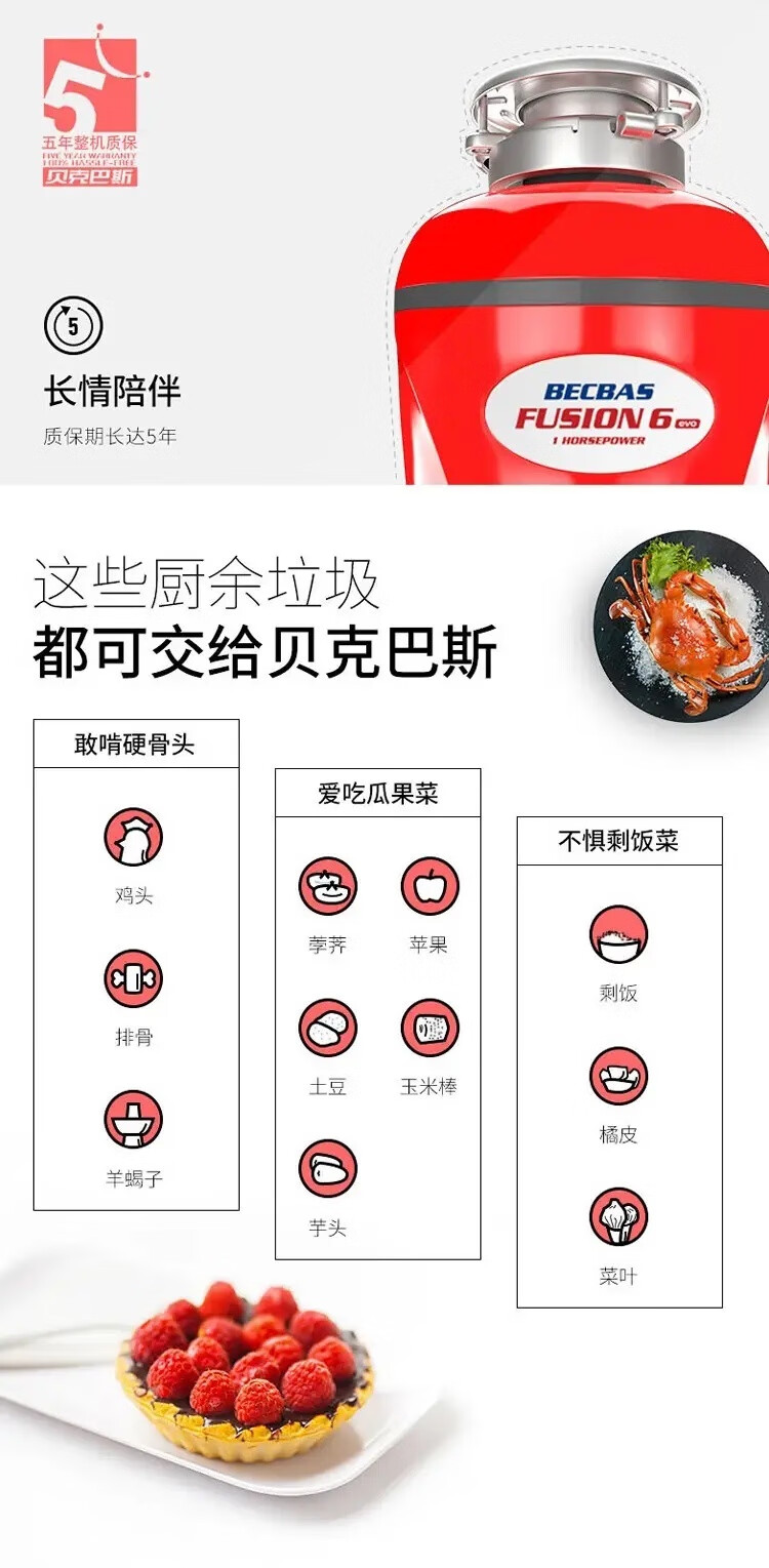 Baker Bass F6evo food waste disposer sink household kitchen food waste crusher resistance reverse high-power silent F6evo nationwide warranty includes installation