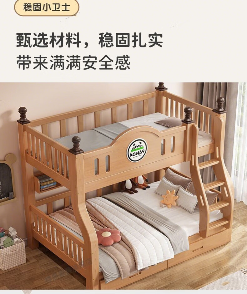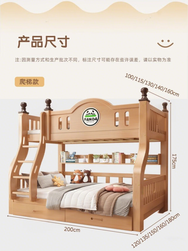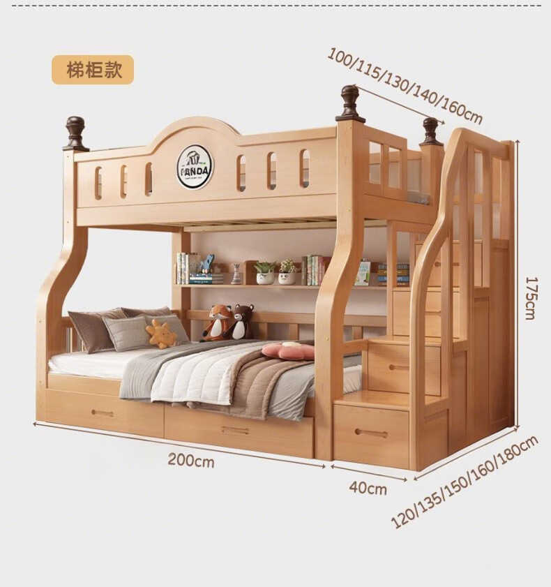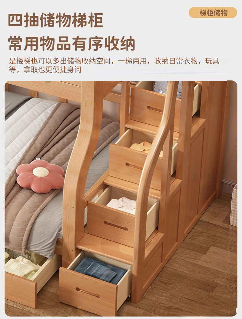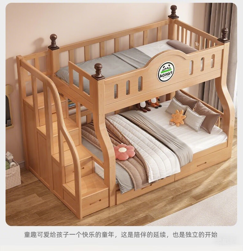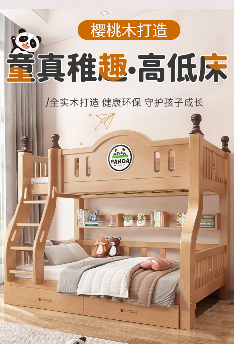 Jiangyao Mengju includes installation, cherry wood all solid wood children's upper and lower bunk beds with high and low bunk storage, ladder bed 1.6 meters below 1.8m + coconut palm mattress * 2 mattresses * 2 + bookshelves with double drawers, installation included