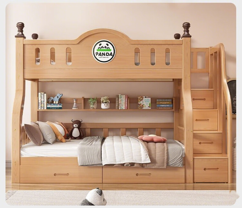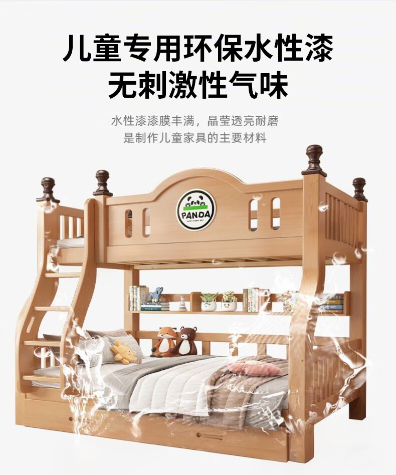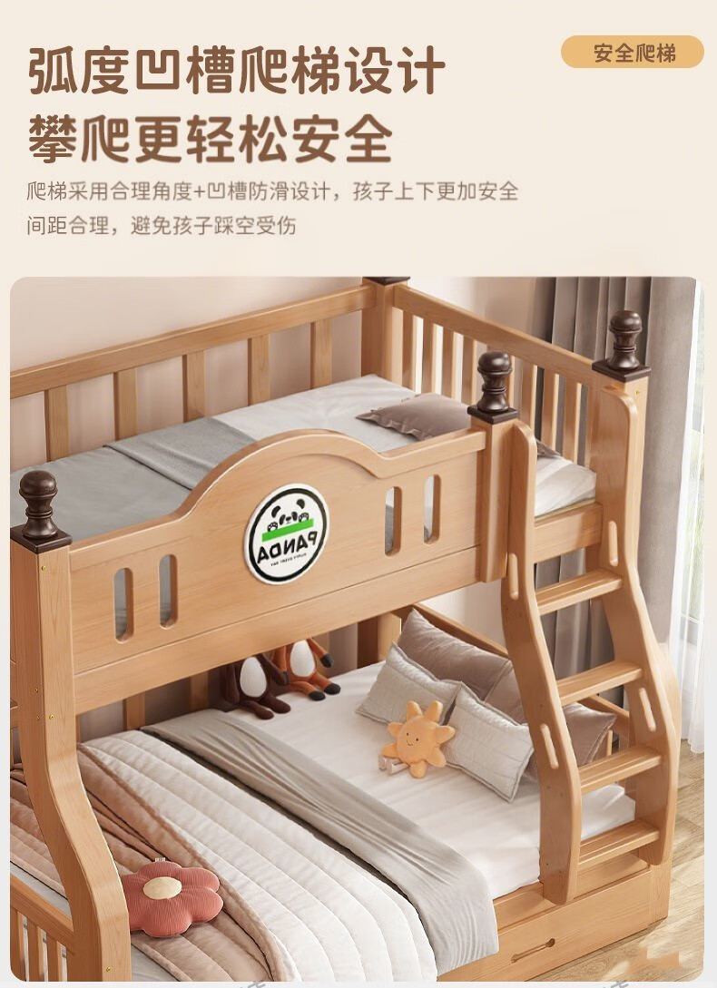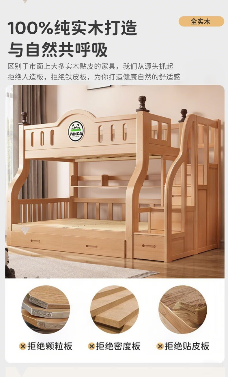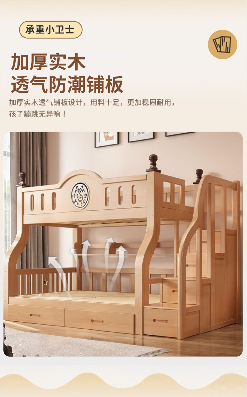 Jiangyao Mengju includes installation, cherry wood all solid wood children's upper and lower bunk beds with high and low bunk storage, ladder bed 1.6 meters below 1.8m + coconut palm mattress * 2 mattresses * 2 + bookshelves with double drawers, installation included