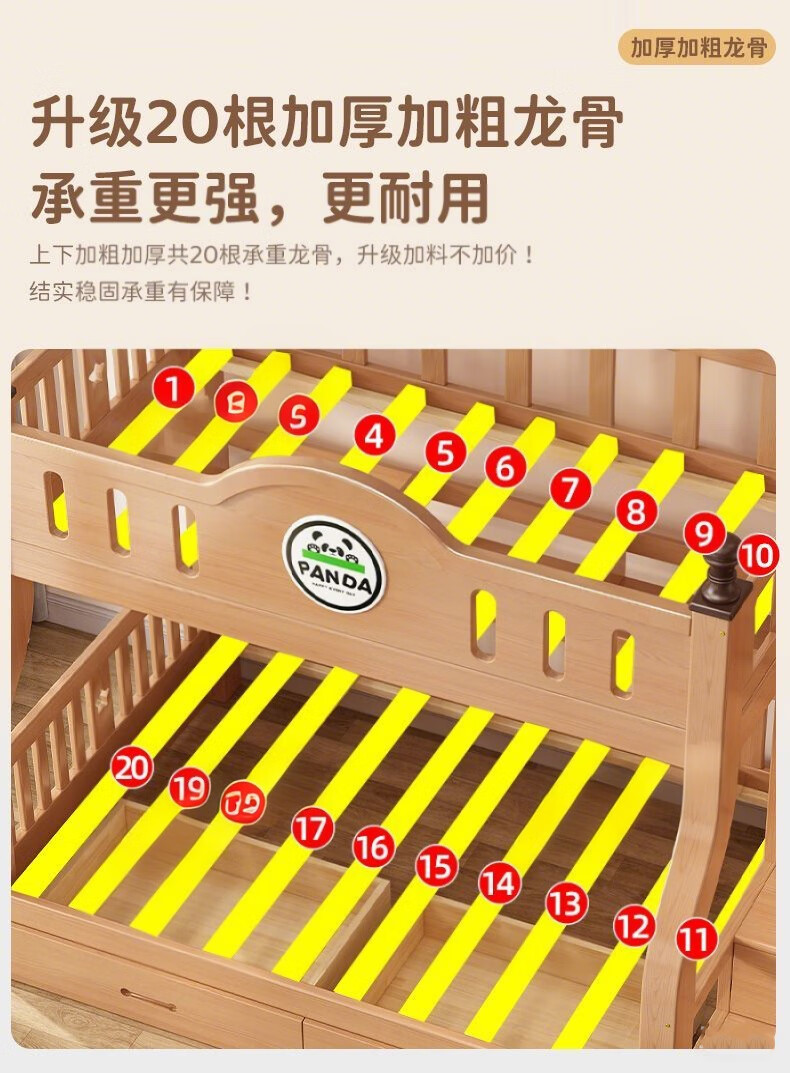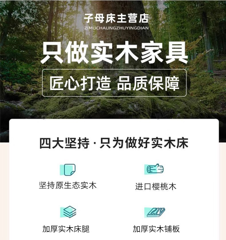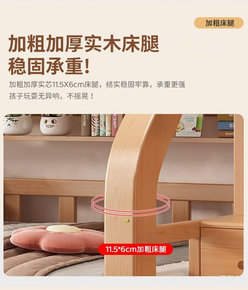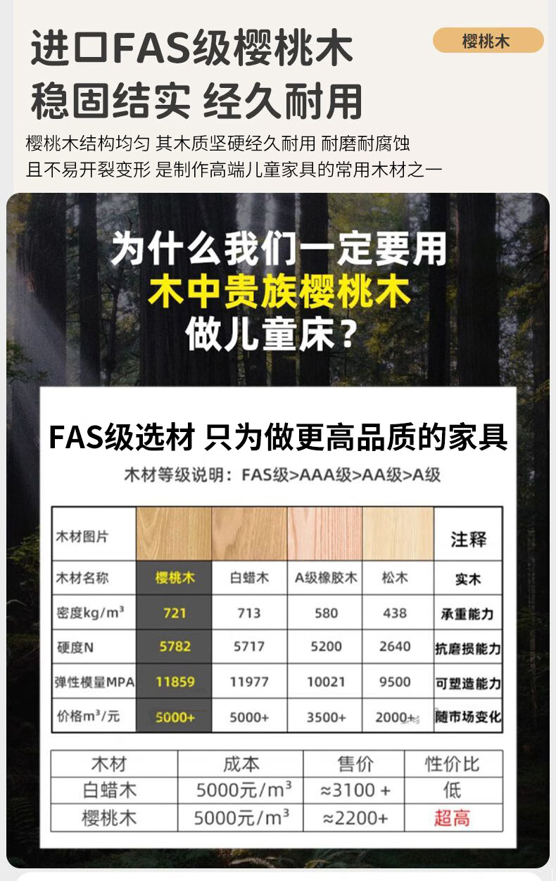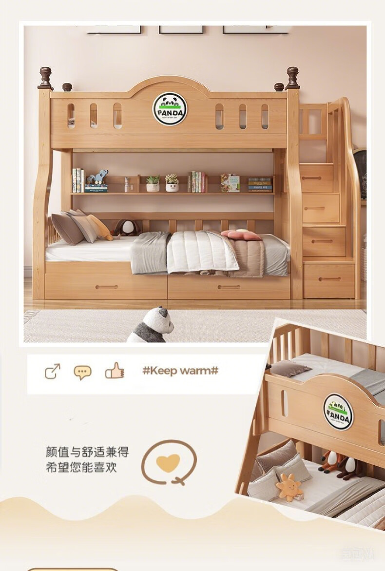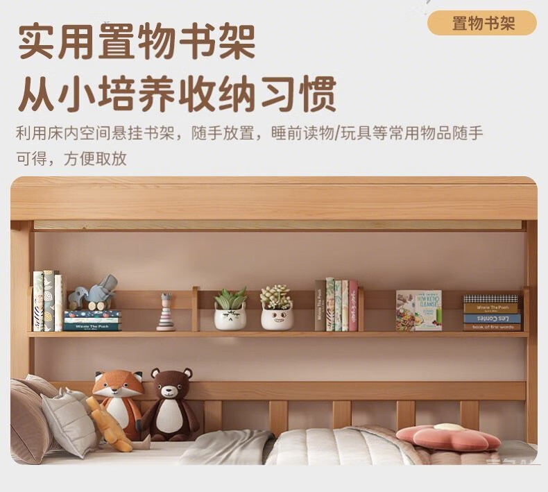 Jiangyao Mengju includes installation, cherry wood all solid wood children's upper and lower bunk beds with high and low bunk storage, ladder bed 1.6 meters below 1.8m + coconut palm mattress * 2 mattresses * 2 + bookshelves with double drawers, installation included