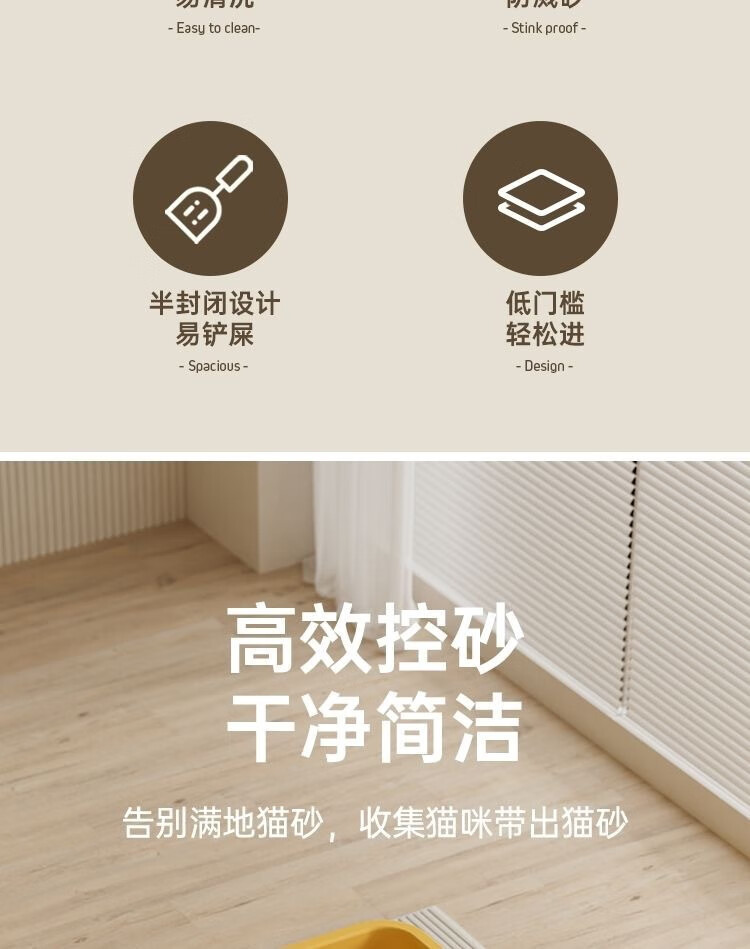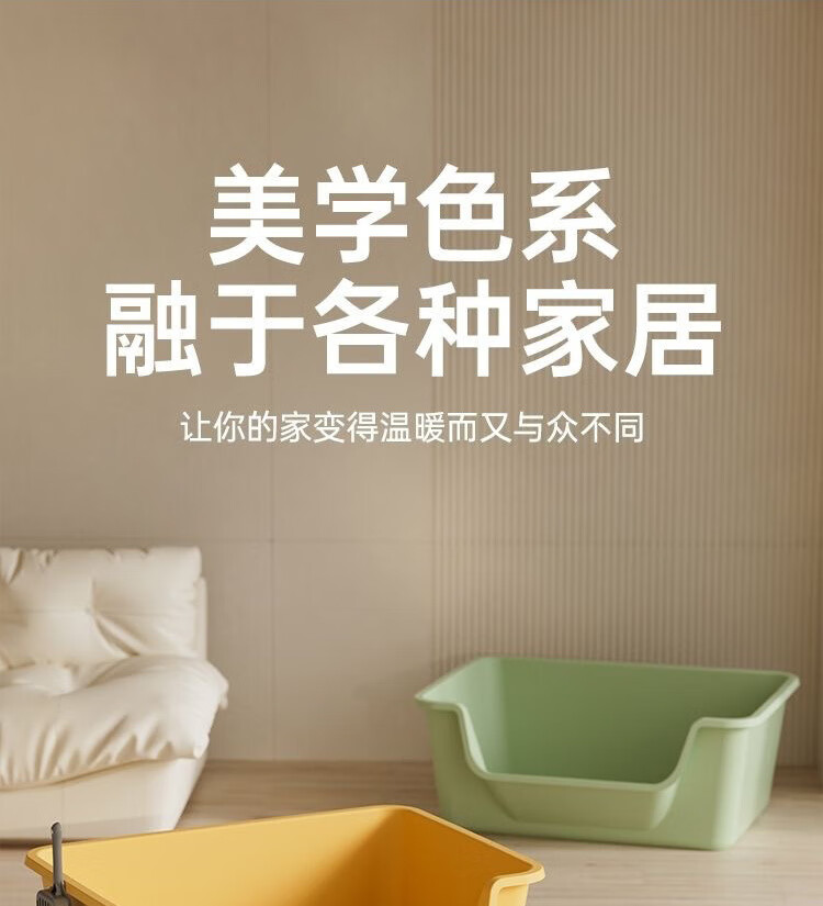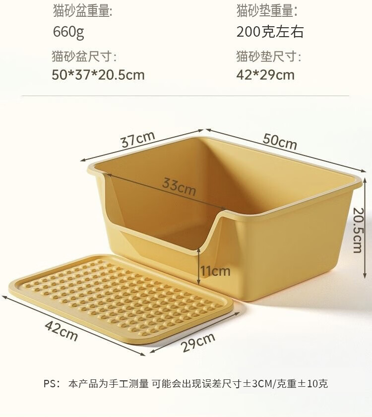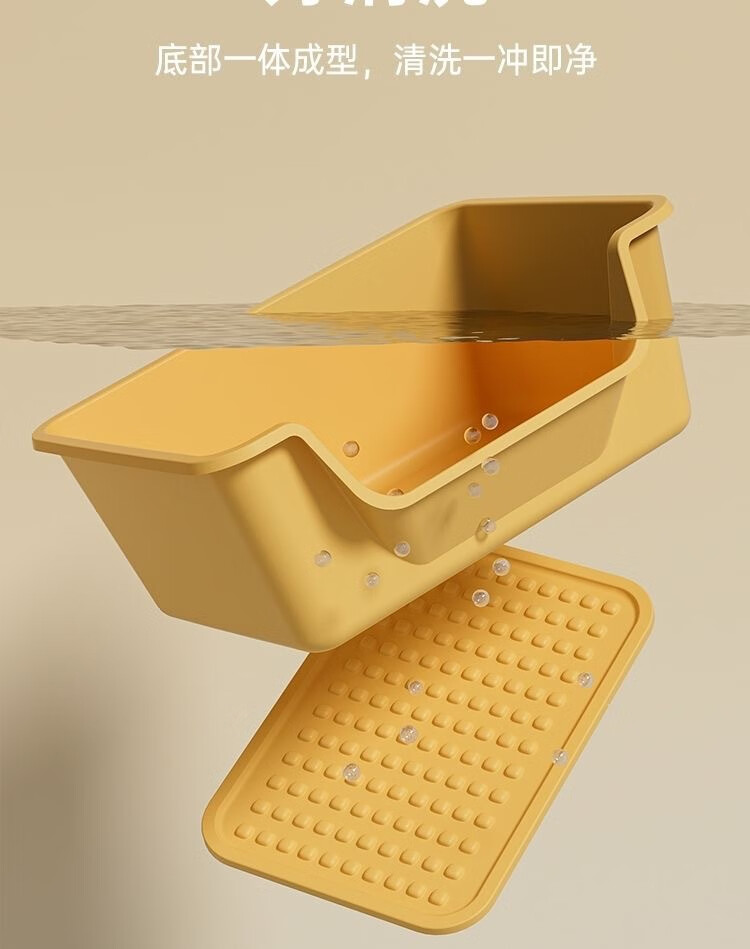Extra large cat litter box, anti-splash open cat litter box, young kitten poop box, extra large giant cat litter box, welfare impulse 60CM mango yellow handle model, within 35 pounds