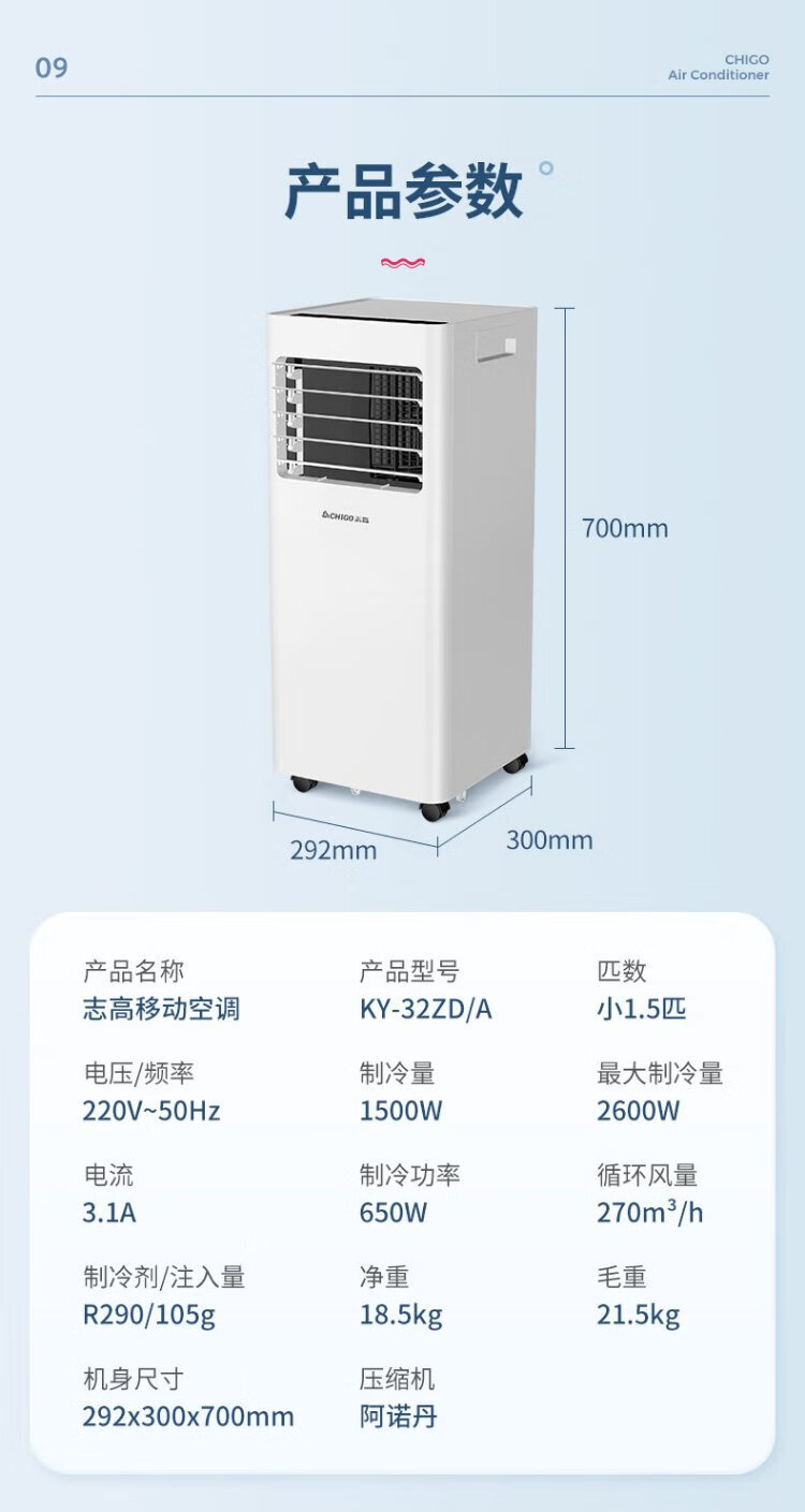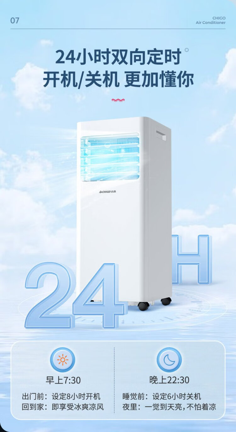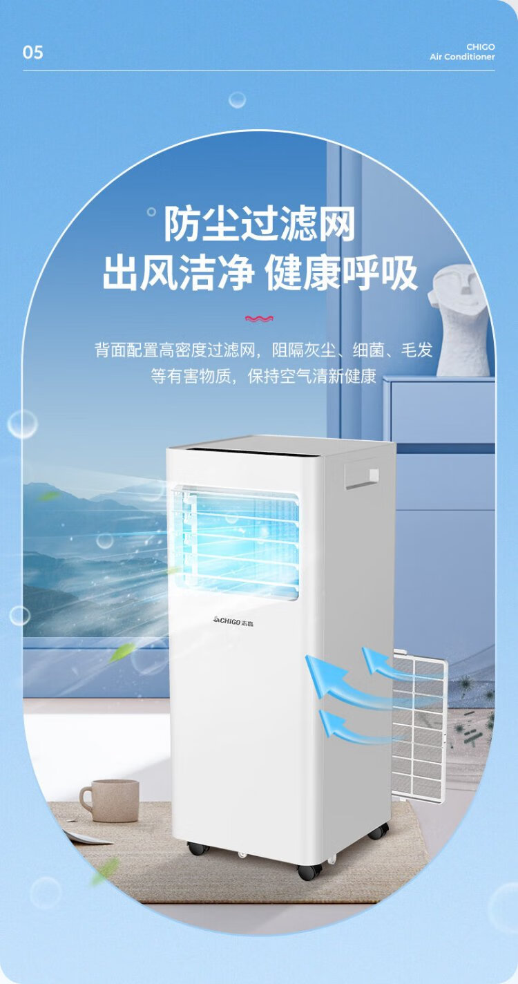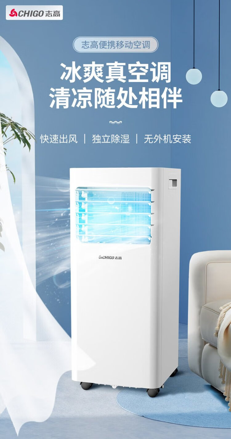 CHIGO mobile air conditioner 1.5 HP single cooling and heating air conditioner all-in-one unit without outdoor unit installation-free rental kitchen bedroom cooling portable mobile air conditioner 1.5 HP heating and cooling - suitable for 18 square meters