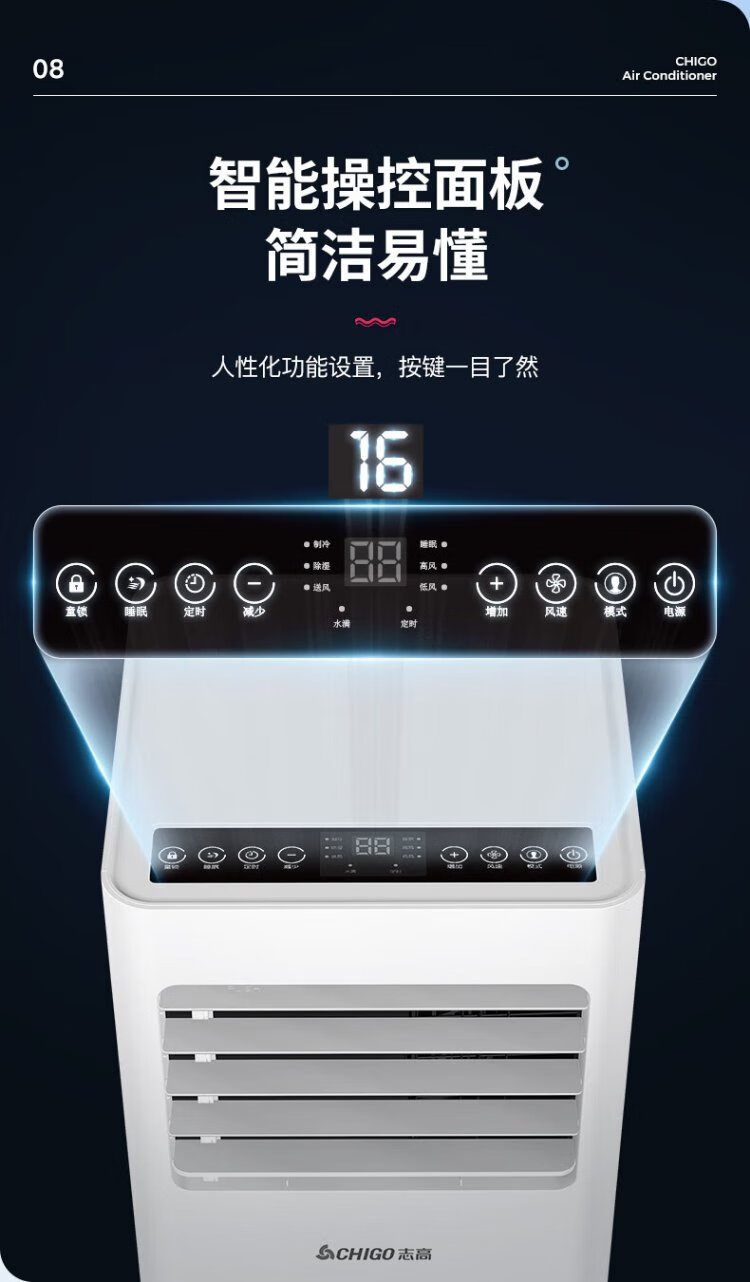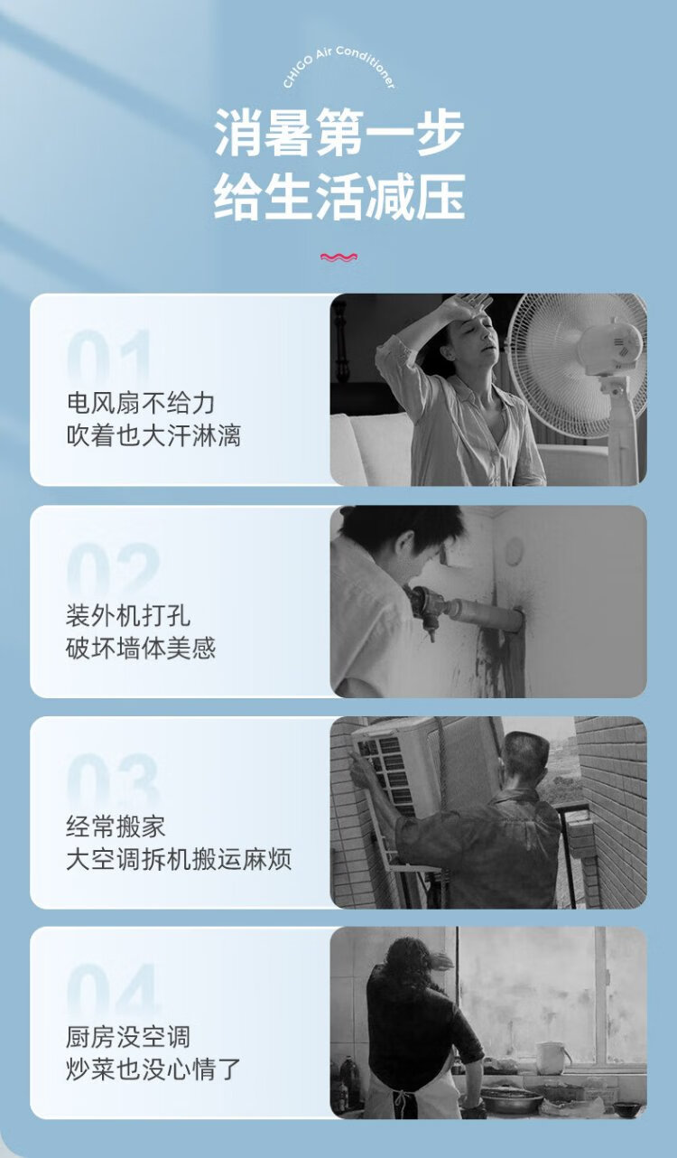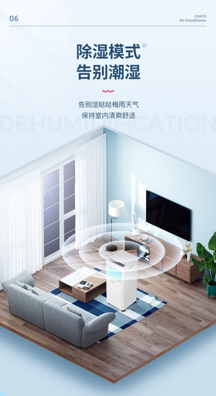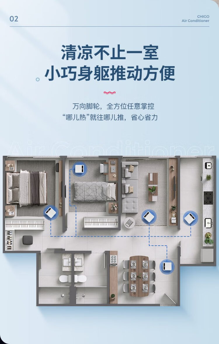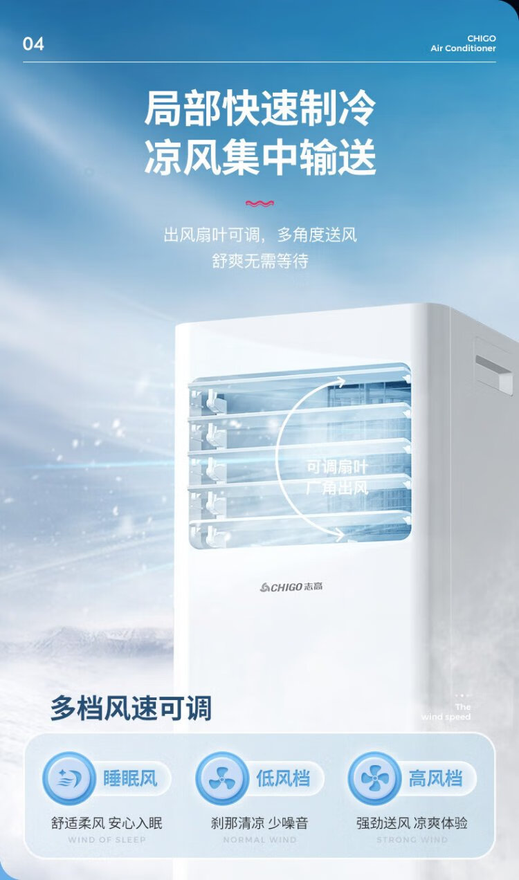 CHIGO mobile air conditioner 1.5 HP single cooling and heating air conditioner all-in-one unit without outdoor unit installation-free rental kitchen bedroom cooling portable mobile air conditioner 1.5 HP heating and cooling - suitable for 18 square meters