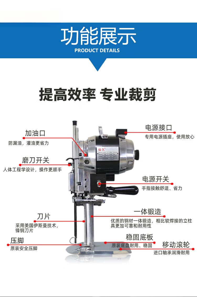 OLOEY electric scissors cutting machine clothing straight knife electric cutting bed cutting knife fully automatic electric shearing and cutting knife 6 inches cutting 10CM (CZD-5)