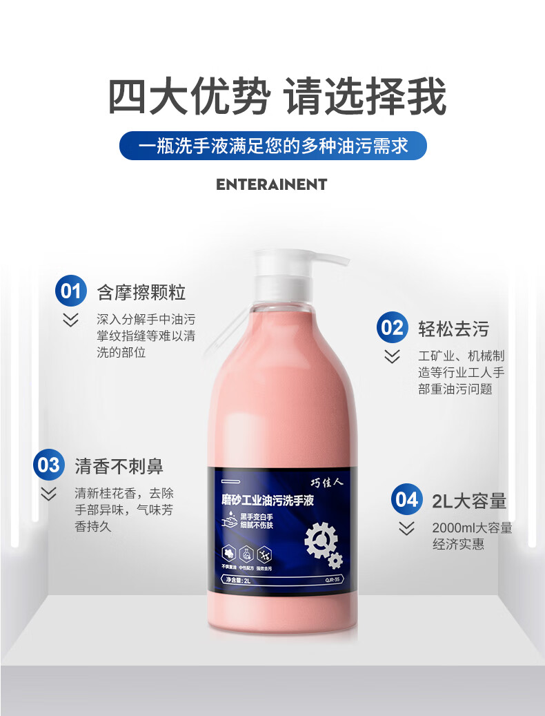 Frosted industrial oil-stained hand sanitizer, oil cleaning and repairman, auto repair black hands turn white hands, repair car oil removal hand sanitizer, 2L bottle