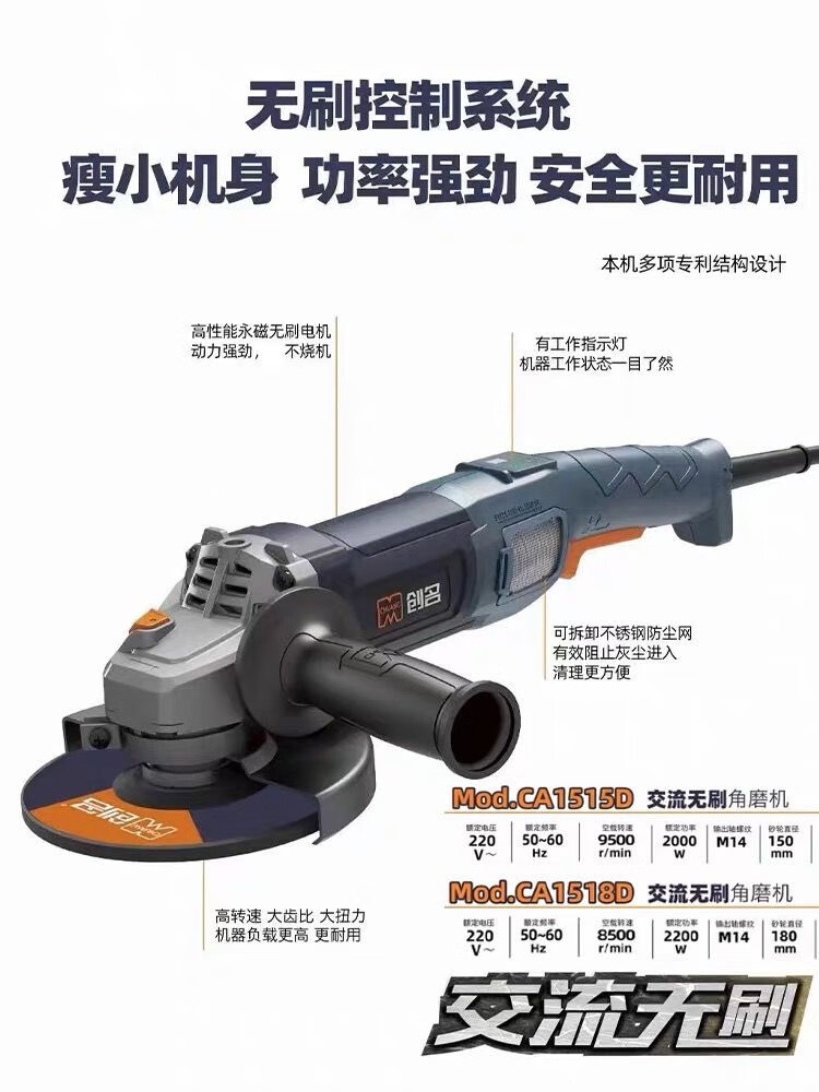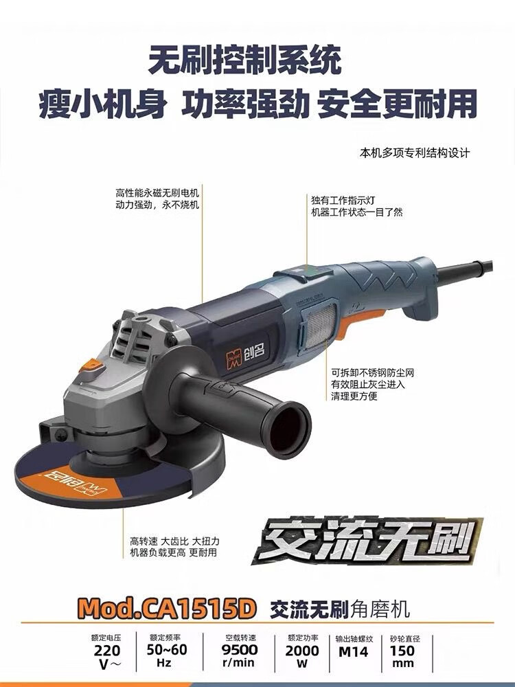 Chuangming 150 brushless angle grinder high-power grinder cutting machine household electric 2000W polisher Chuangming 150 brushless angle grinder 2000W