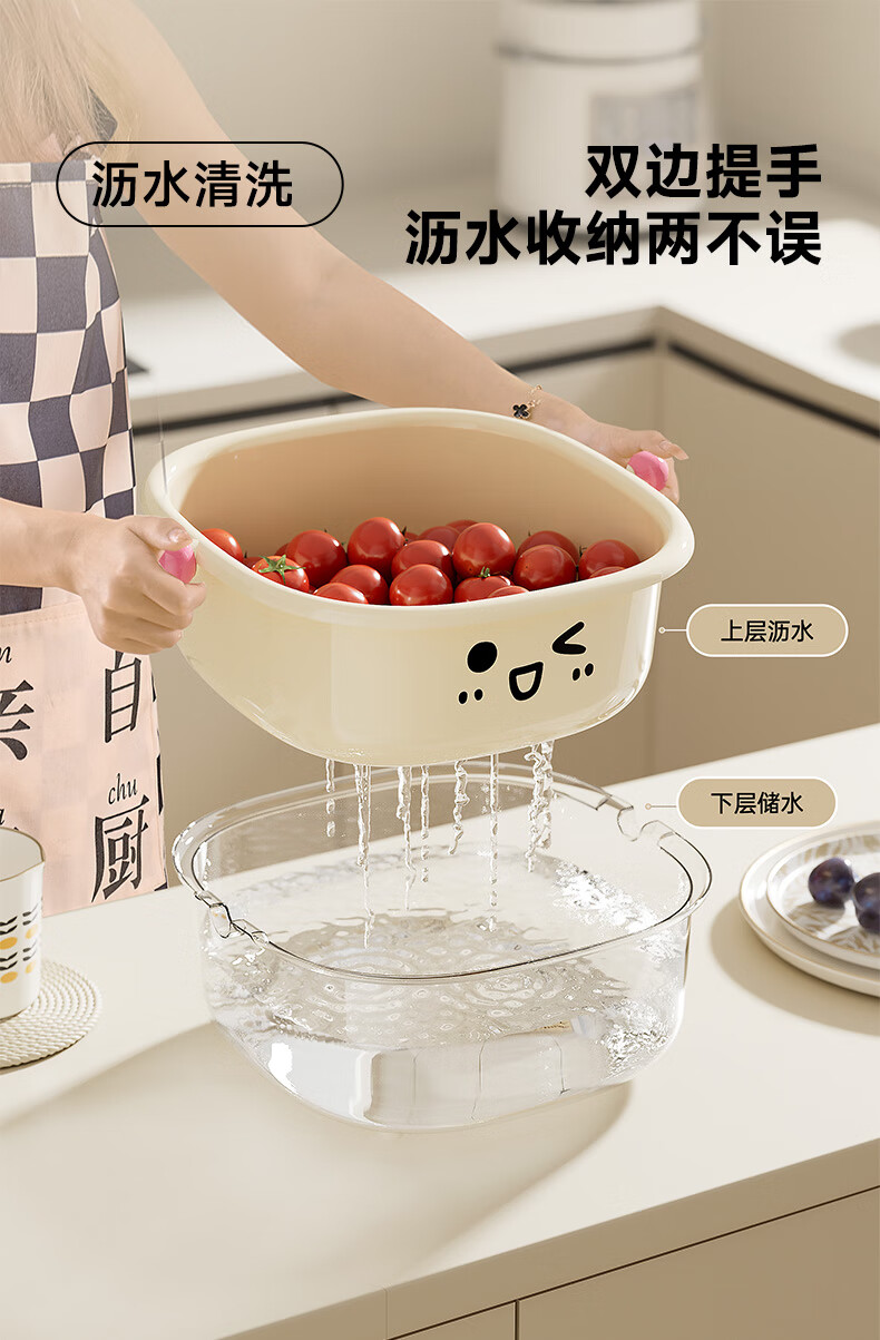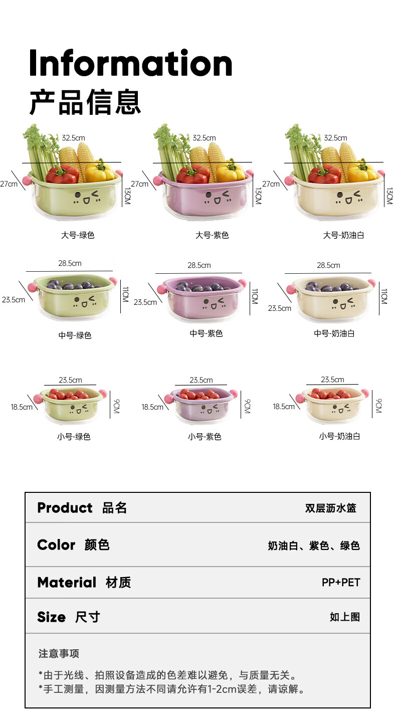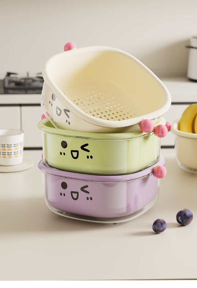 Cabinet star sink drain basket new home kitchen double-layer fruit basket washing basin living room exquisite small fruit plate white large + green medium + purple small