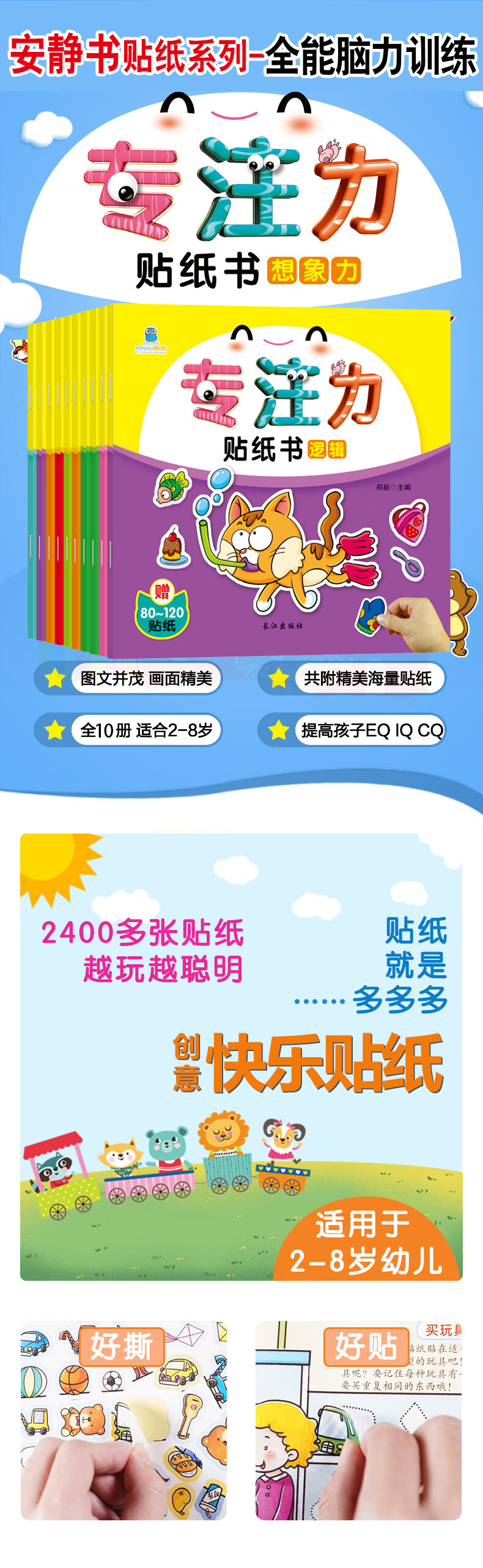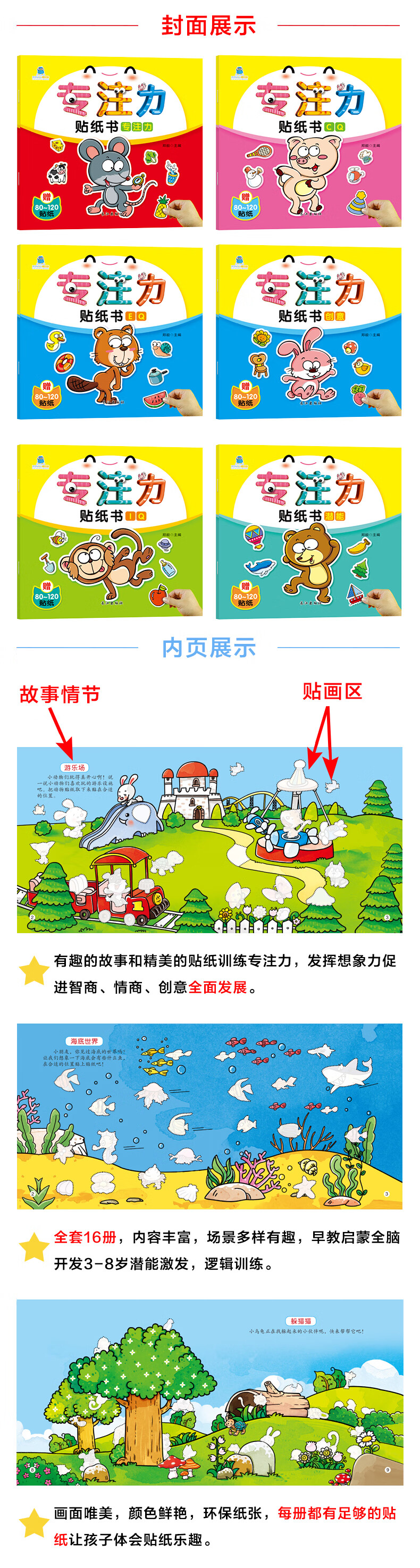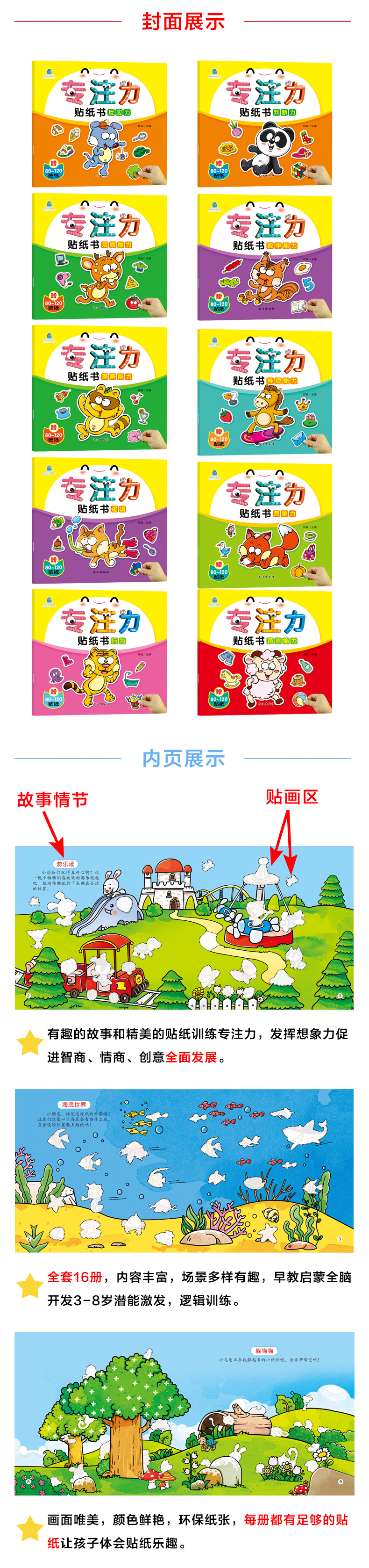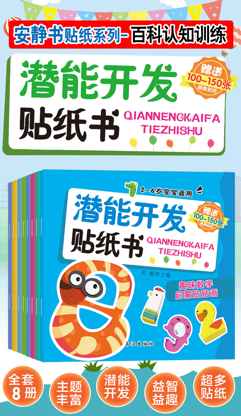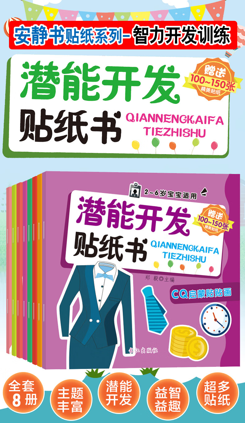A full set of 32 volumes, quiet book concentration and concentration training sticker book 0-3, 3-6 year old baby potential development, intellectual enlightenment, cognitive training, handmade sticker book, logical thinking training sticker book, potential development-encyclopedia cognitive training series, 8 volumes in total