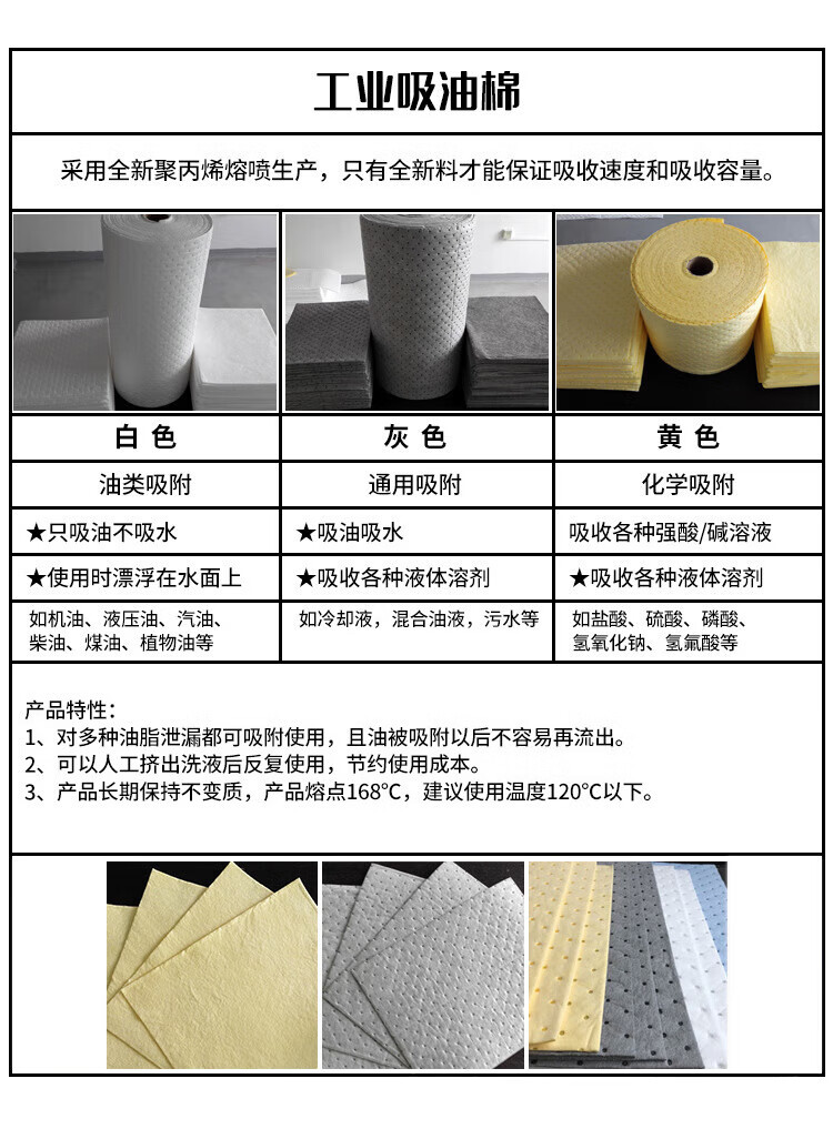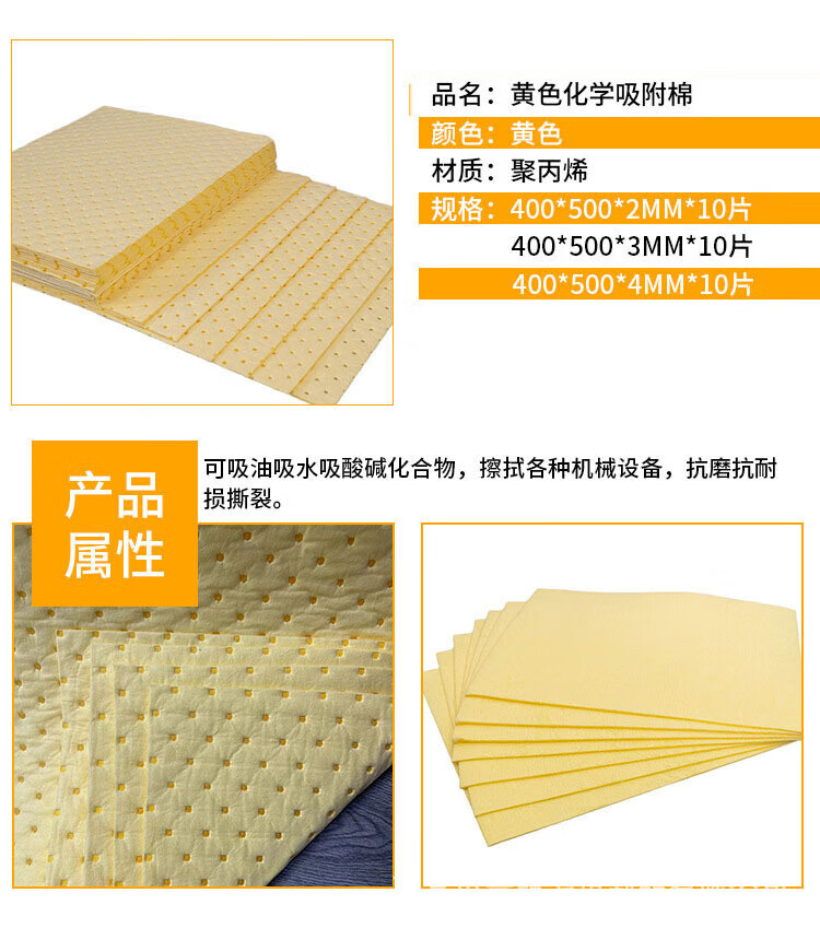 Zhonghuan Lian industrial oil-absorbing cotton liquid-absorbing cotton universal absorbent cotton yellow chemical adsorption 400*500*3mm/10 sheets ZH-1095