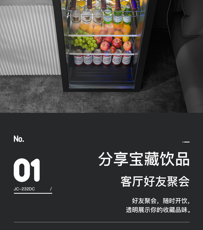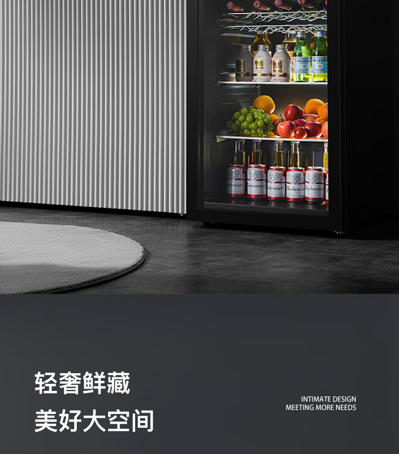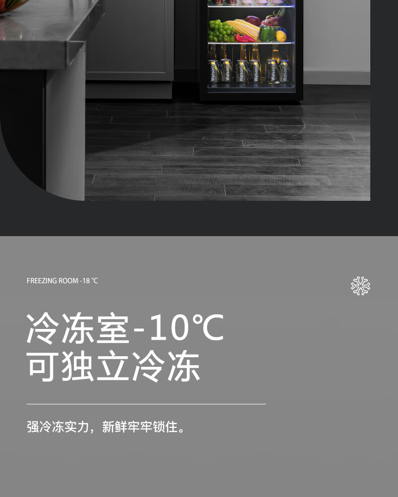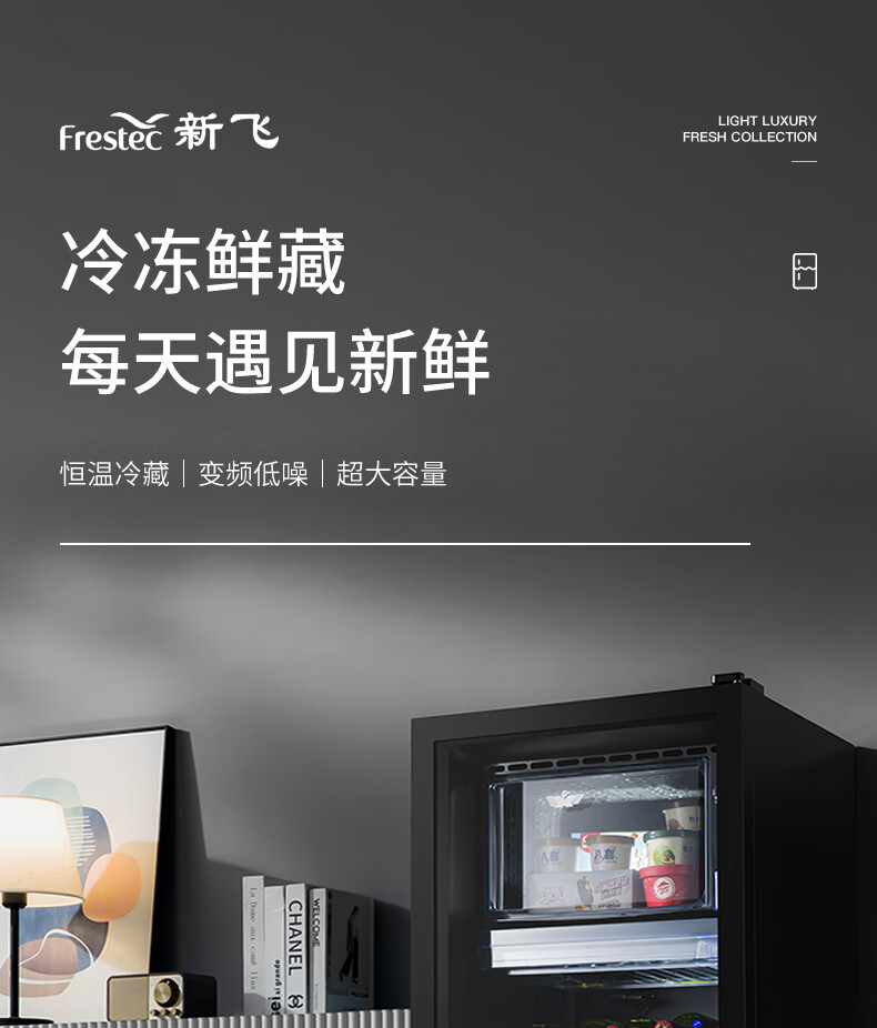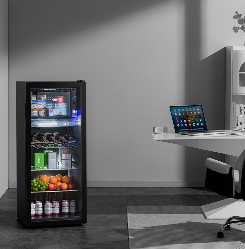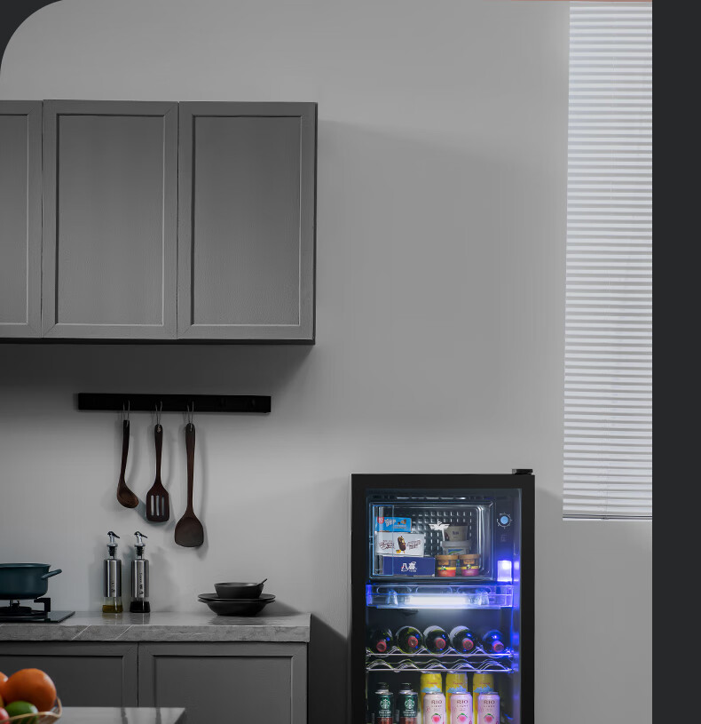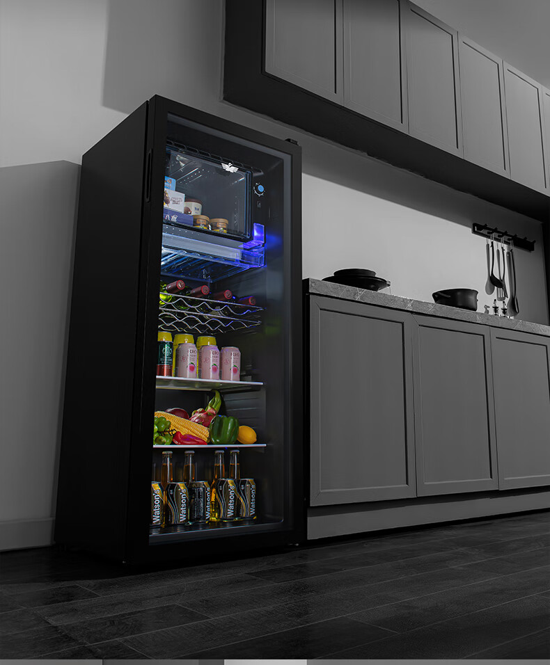 Frestec Ice Bar Bar Cabinet Office Large Capacity Small Refrigerator Home Living Room Glass Single Door Display Cabinet Red Wine Constant Temperature Refrigerator Second Level Energy Efficiency Retro Model 178 Liter Black Liner Refrigeration + Micro Freezing + Light + Lock