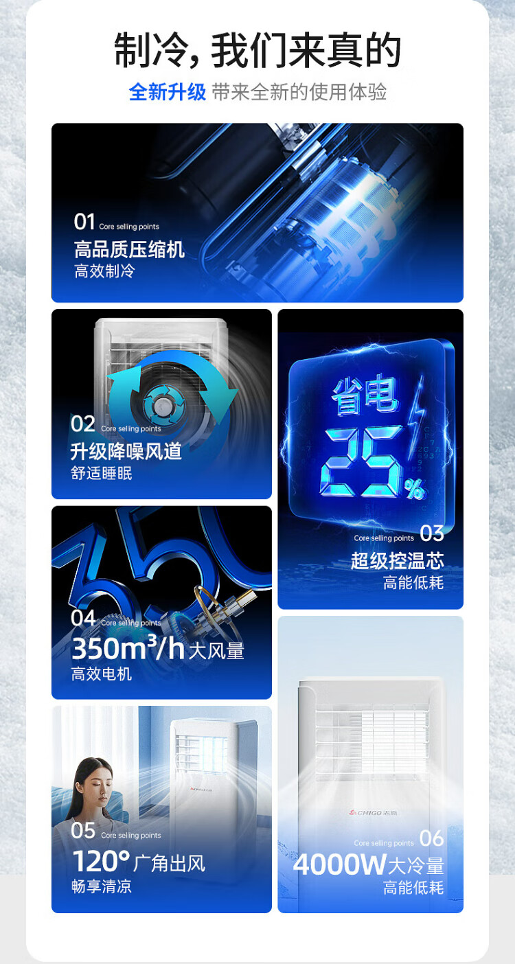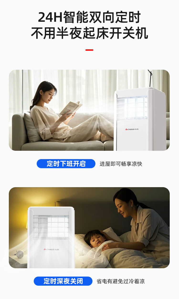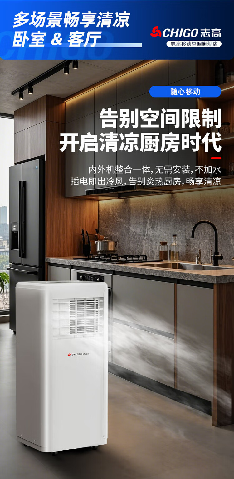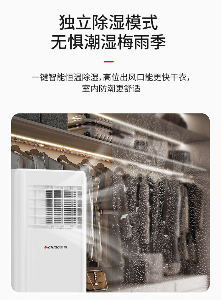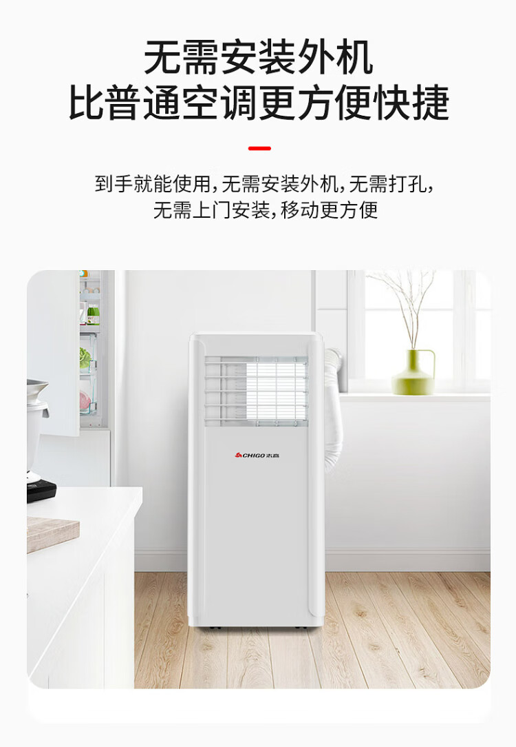 CHIGO mobile air conditioner single cooling and heating air conditioner all-in-one machine free of installation removable portable dehumidification vertical small air conditioner bedroom living room kitchen air conditioner large 1.5 HP single cooling - brand compressor