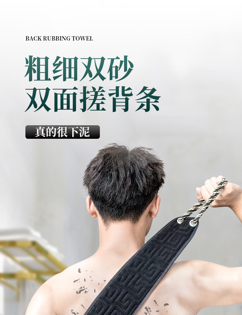 Jingyouyu Japanese bath towel men's special coarse sand strong mud rub painless double-sided thickened back rub strip household bath artifact second generation black widened and thickened reinforced upgrade