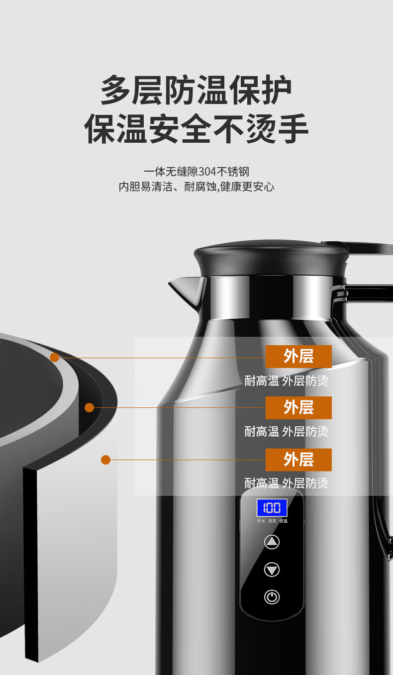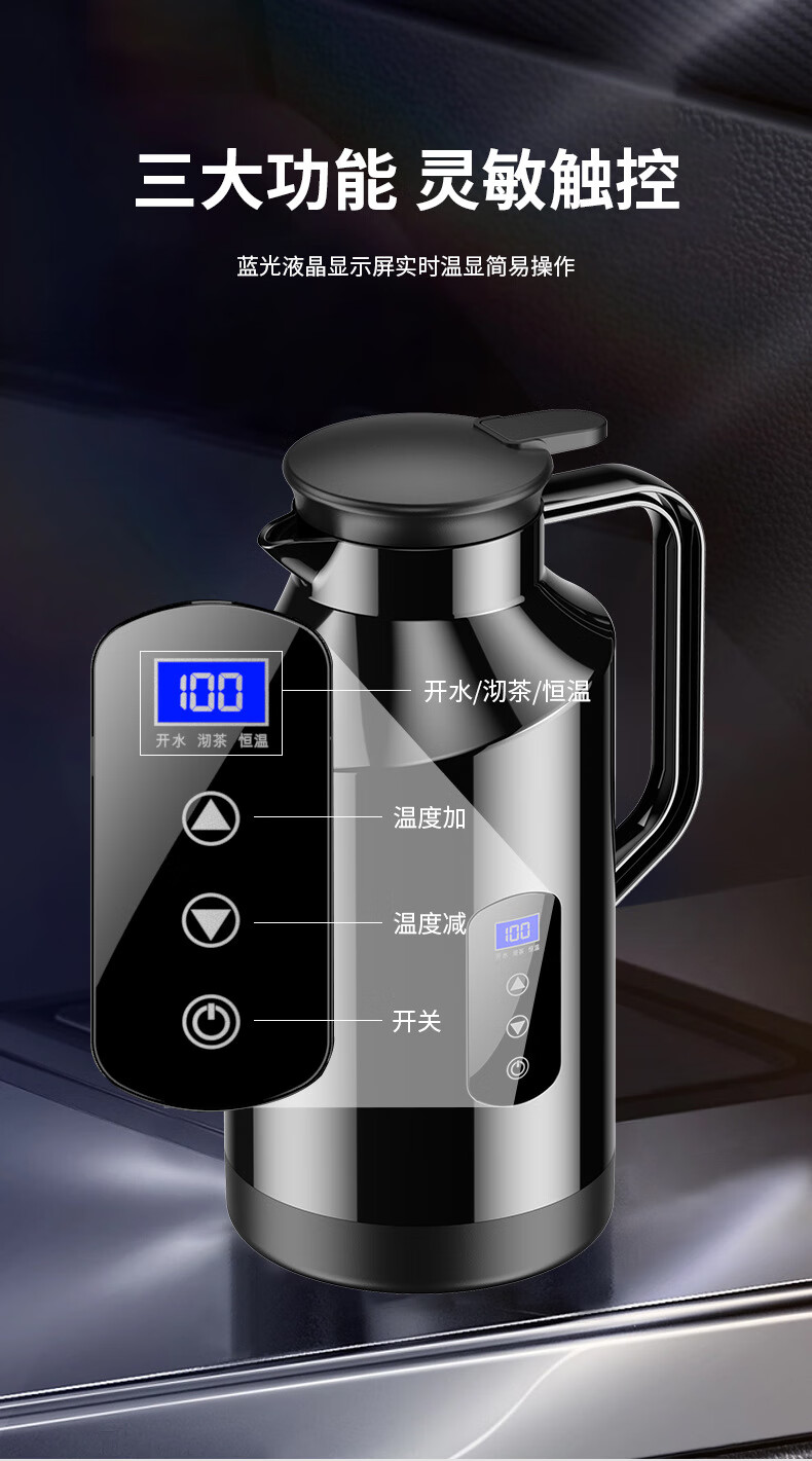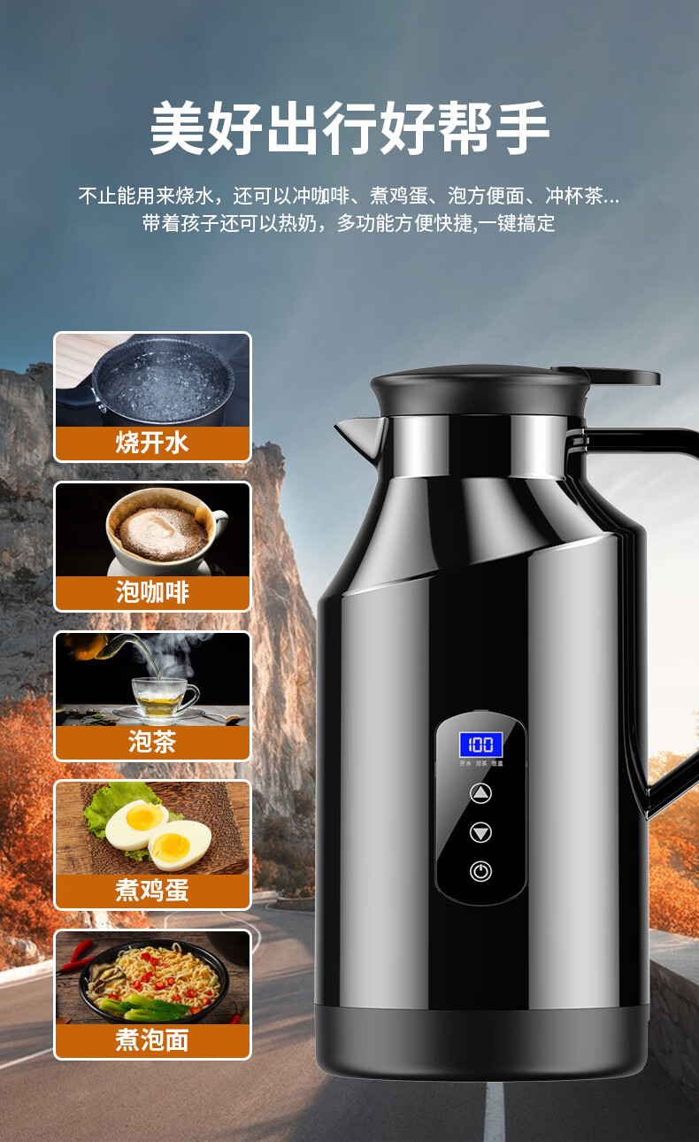 CLCEY car kettle 12v24v universal truck special 2024 new insulation and heating integrated electric cup water heater car smart kettle for home and car dual use 1.2L