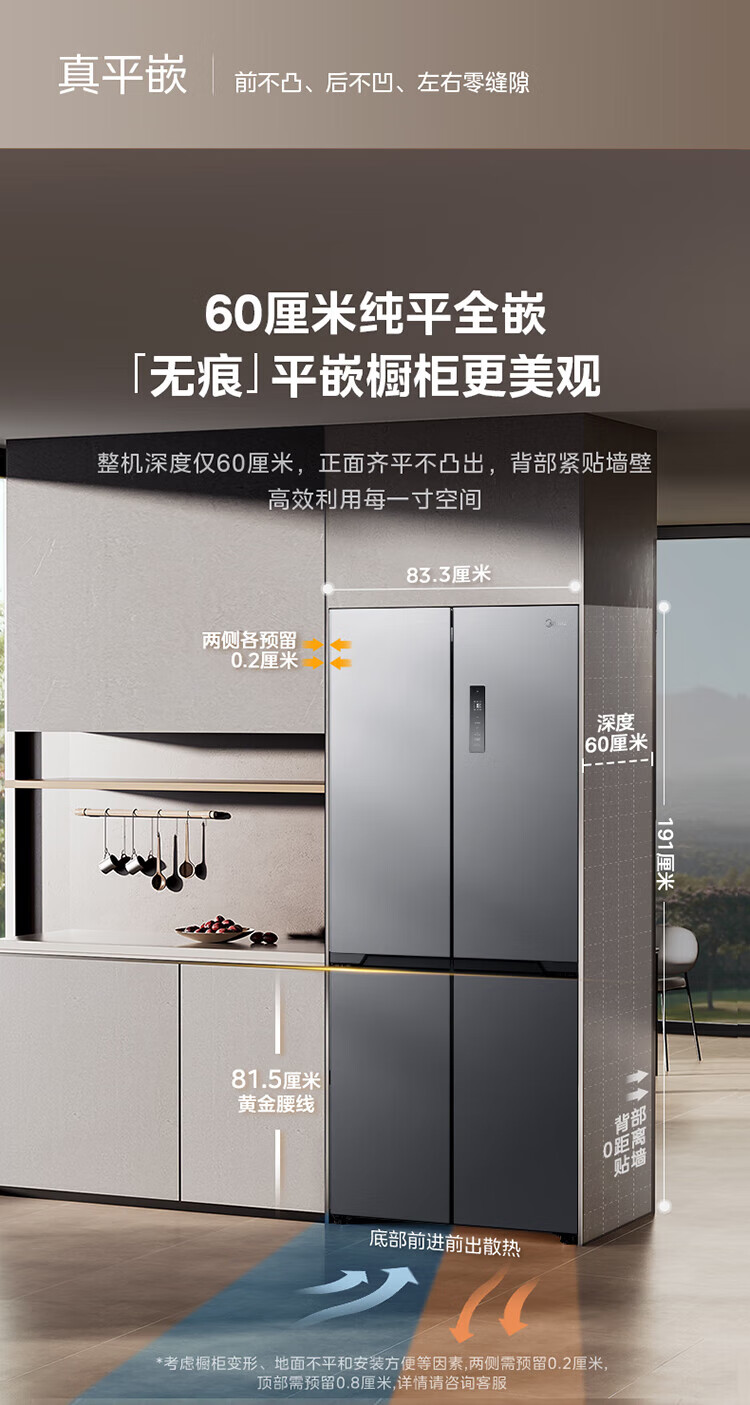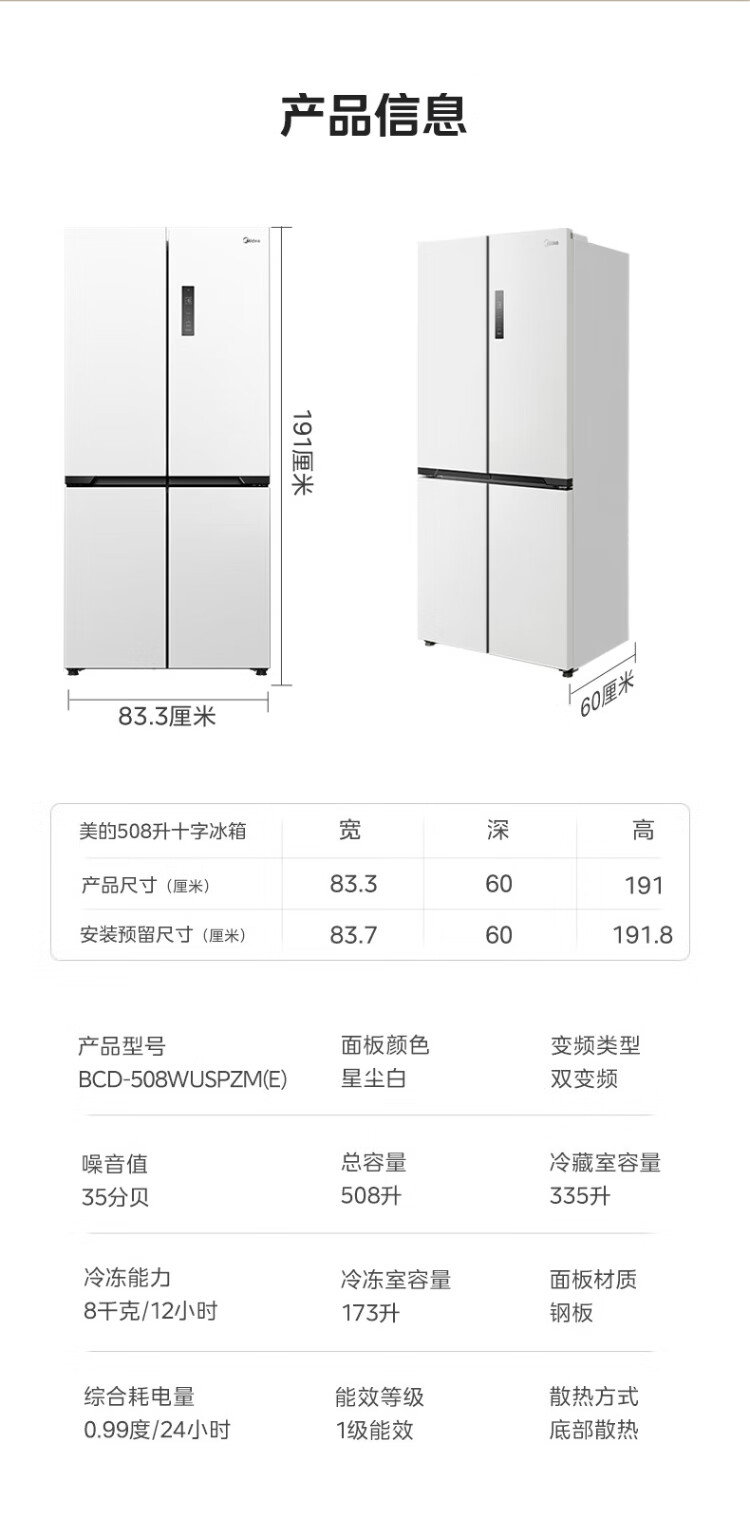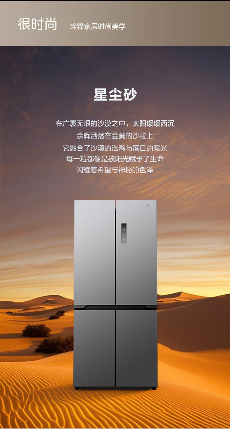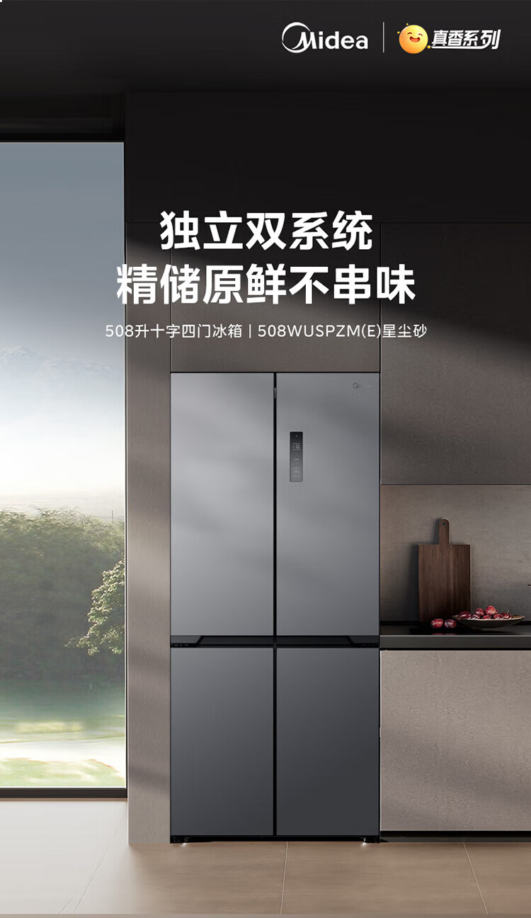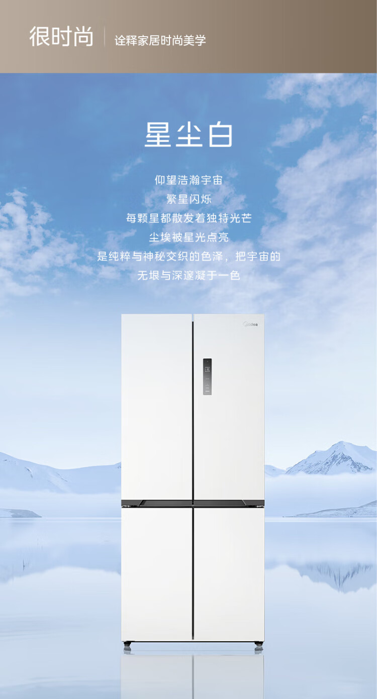 Midea M60 True Fragrance Series 508-liter cross-fold four-door refrigerator dual-system dual-cycle ultra-thin zero-flat inlay air-cooled frost-free first-class energy efficiency household large capacity government subsidy white BCD-508WUSPZM (E) Stardust White