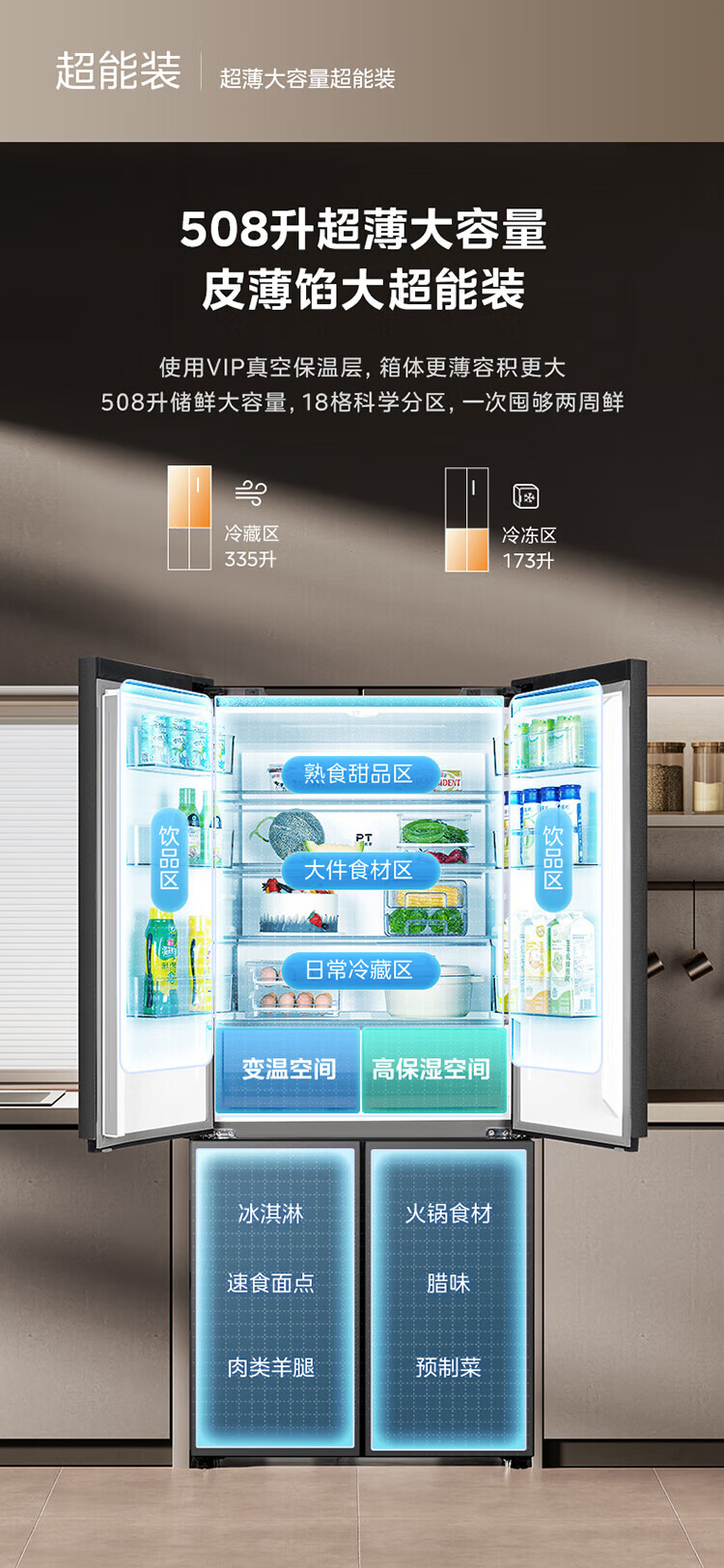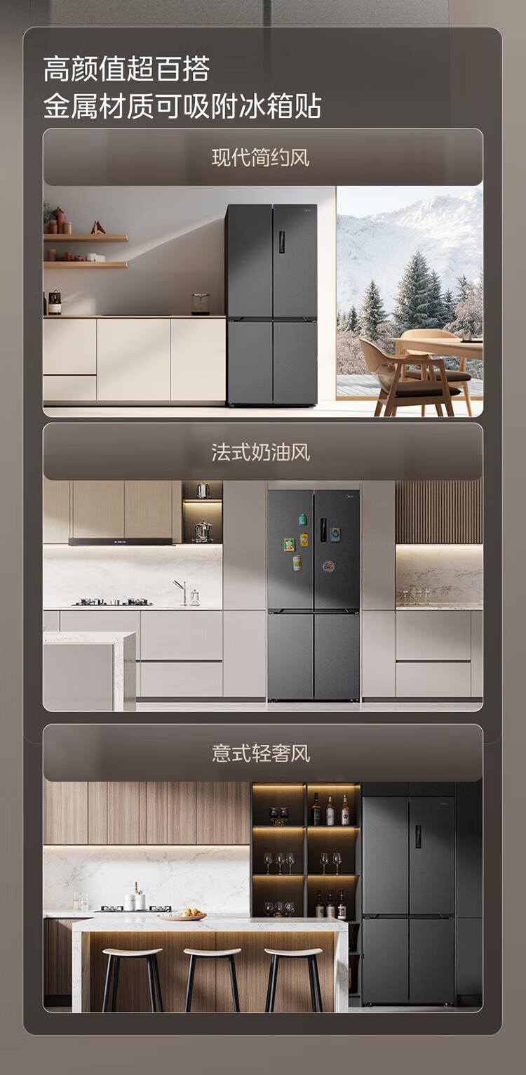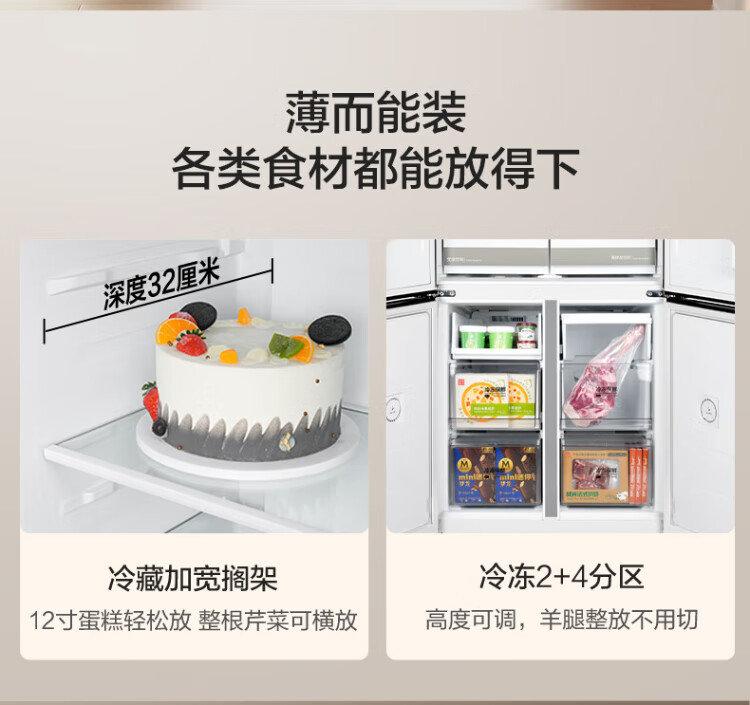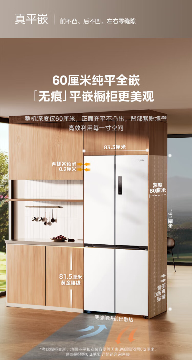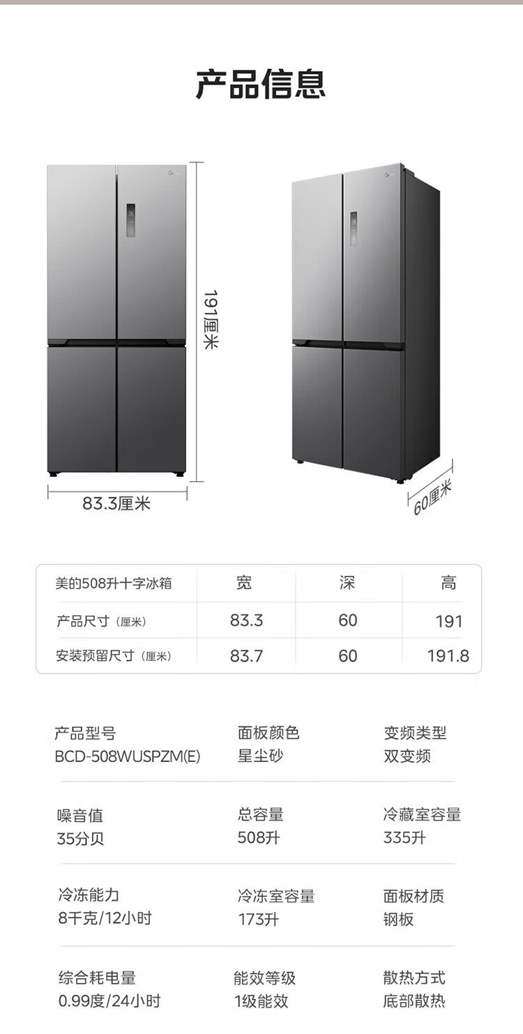 Midea M60 True Fragrance Series 508-liter cross-fold four-door refrigerator dual-system dual-cycle ultra-thin zero-flat inlay air-cooled frost-free first-class energy efficiency household large capacity government subsidy white BCD-508WUSPZM (E) Stardust White