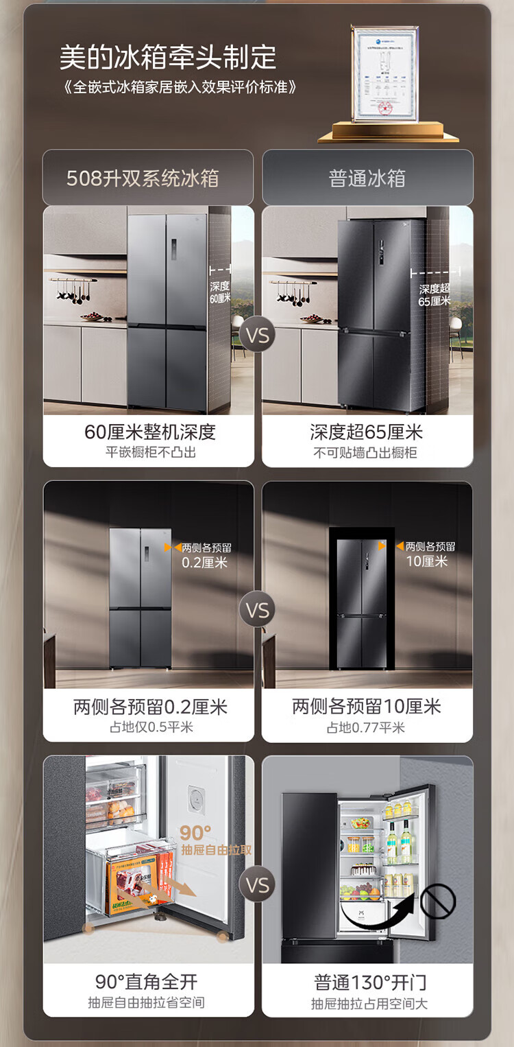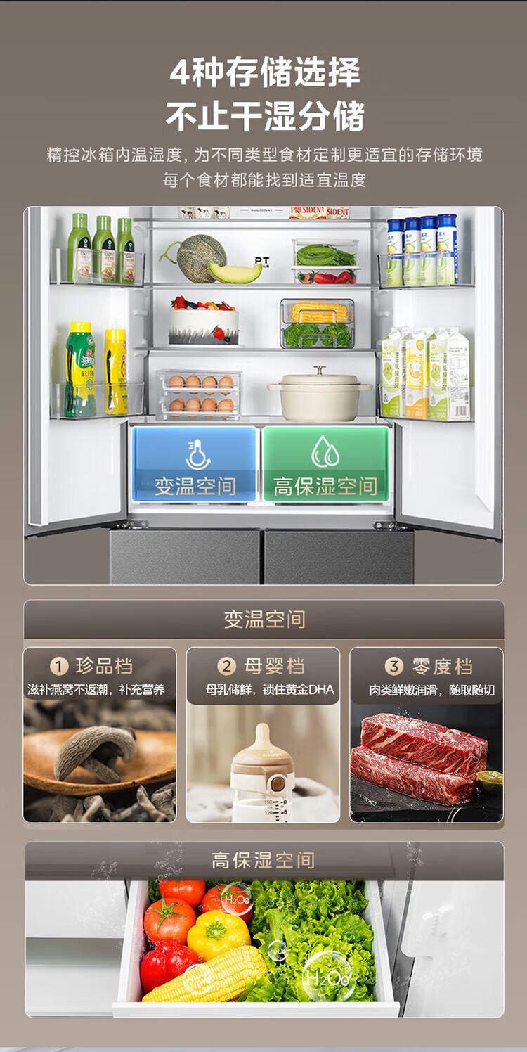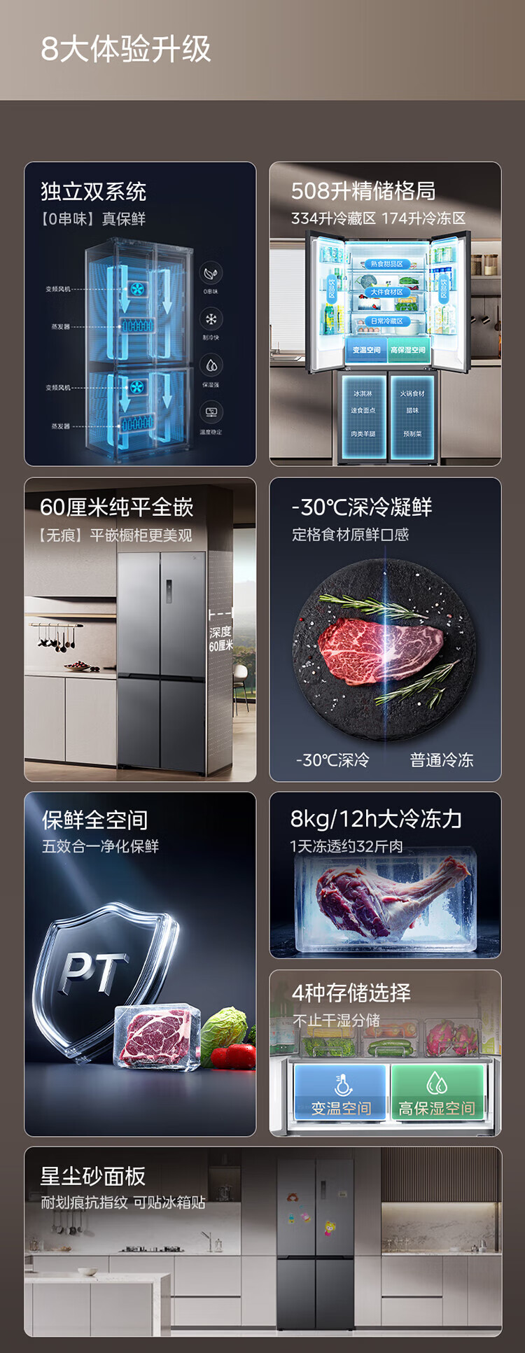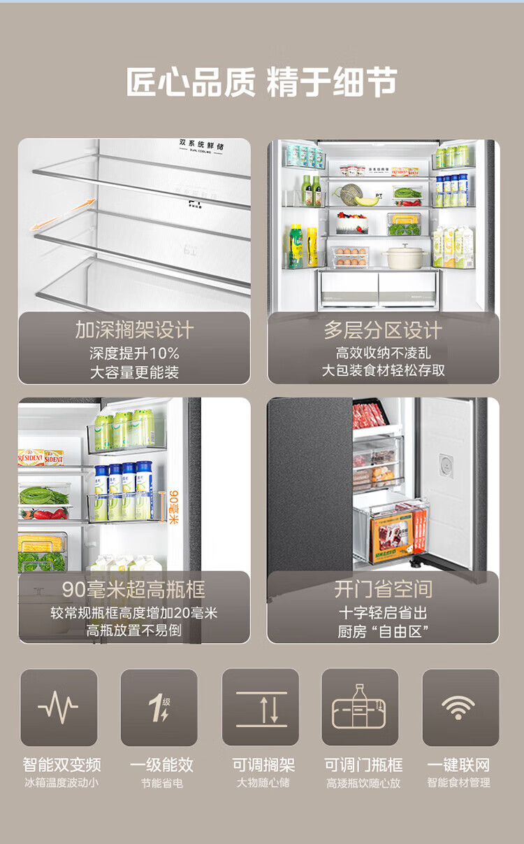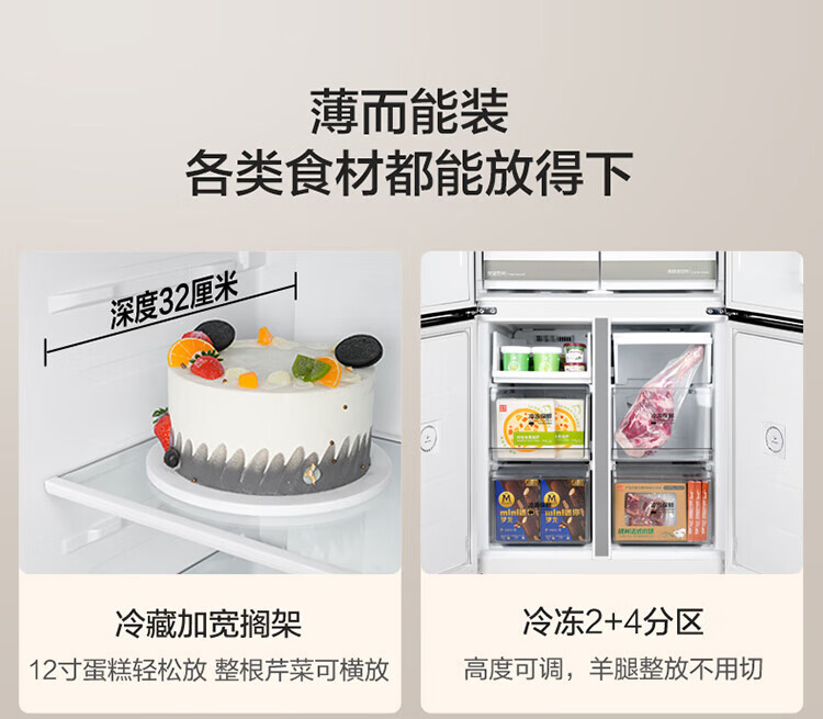 Midea M60 True Fragrance Series 508-liter cross-fold four-door refrigerator dual-system dual-cycle ultra-thin zero-flat inlay air-cooled frost-free first-class energy efficiency household large capacity government subsidy white BCD-508WUSPZM (E) Stardust White