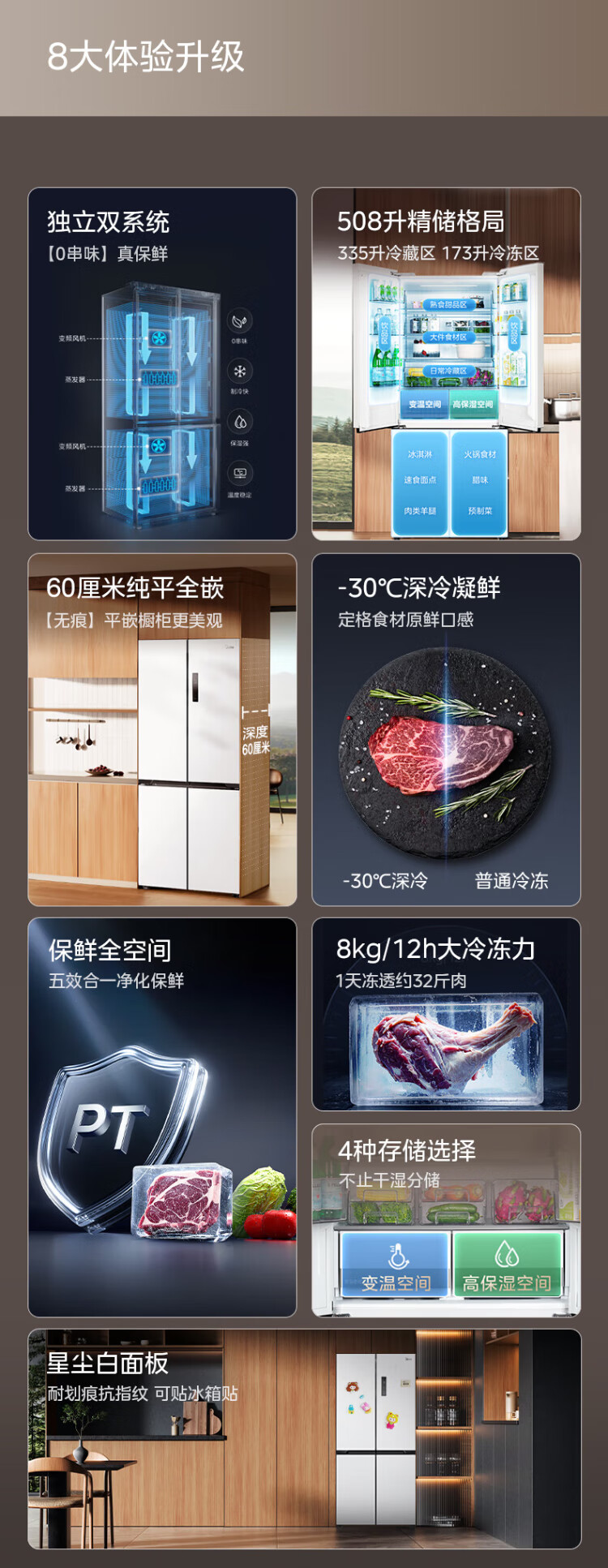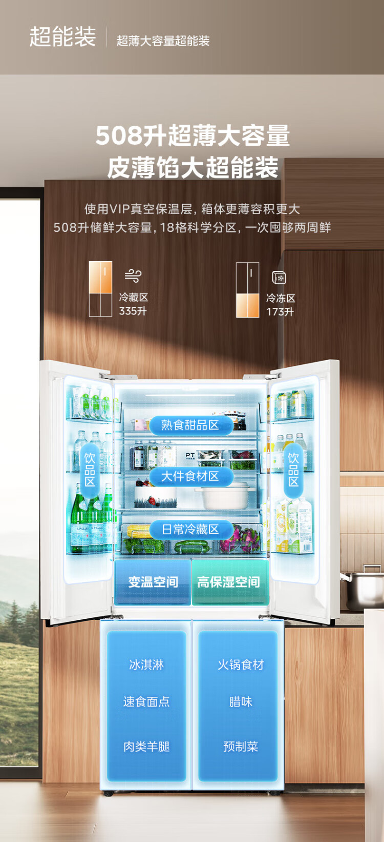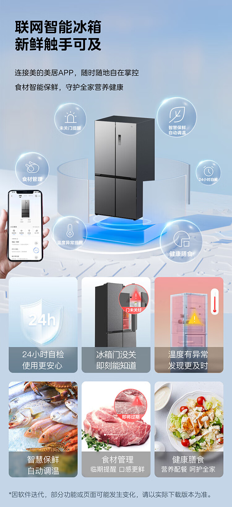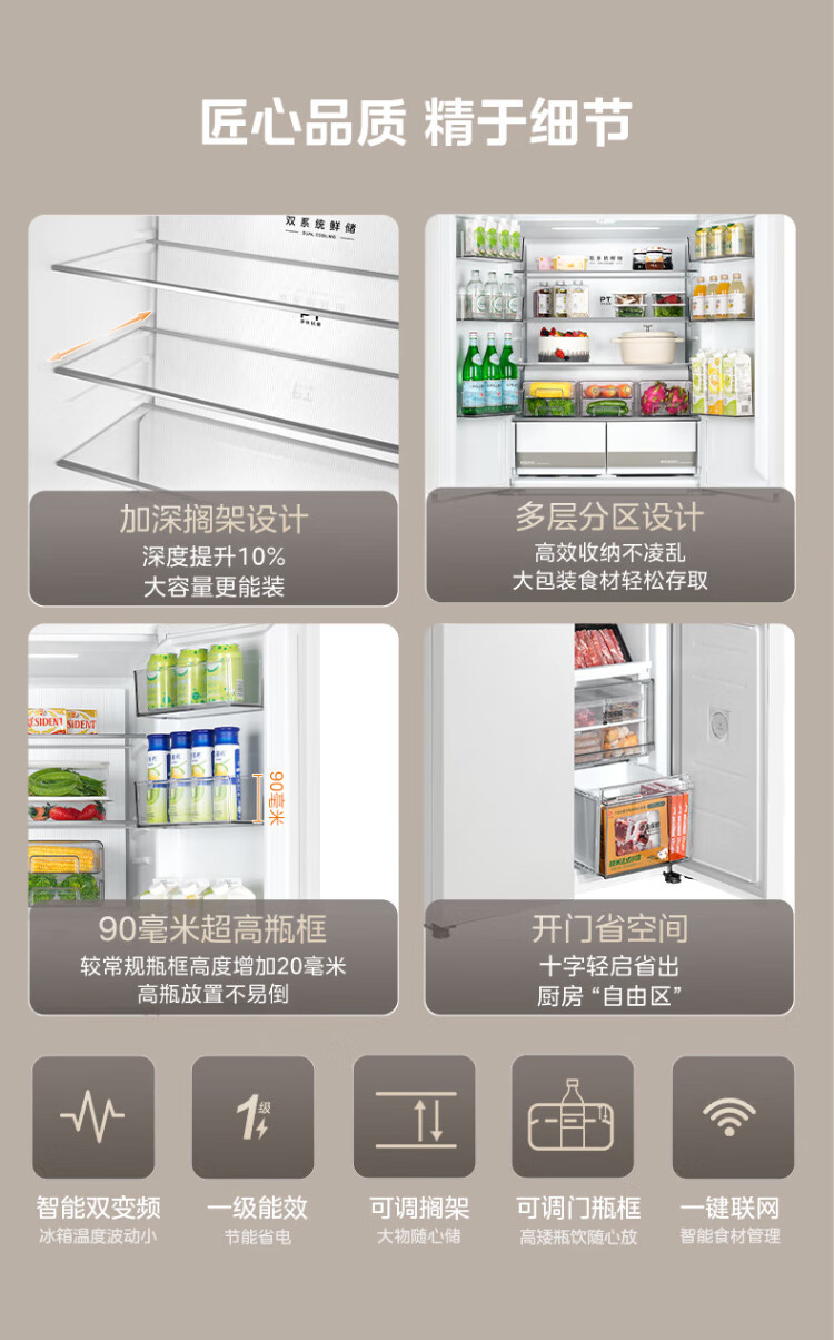 Midea M60 True Fragrance Series 508-liter cross-fold four-door refrigerator dual-system dual-cycle ultra-thin zero-flat inlay air-cooled frost-free first-class energy efficiency household large capacity government subsidy white BCD-508WUSPZM (E) Stardust White