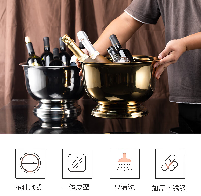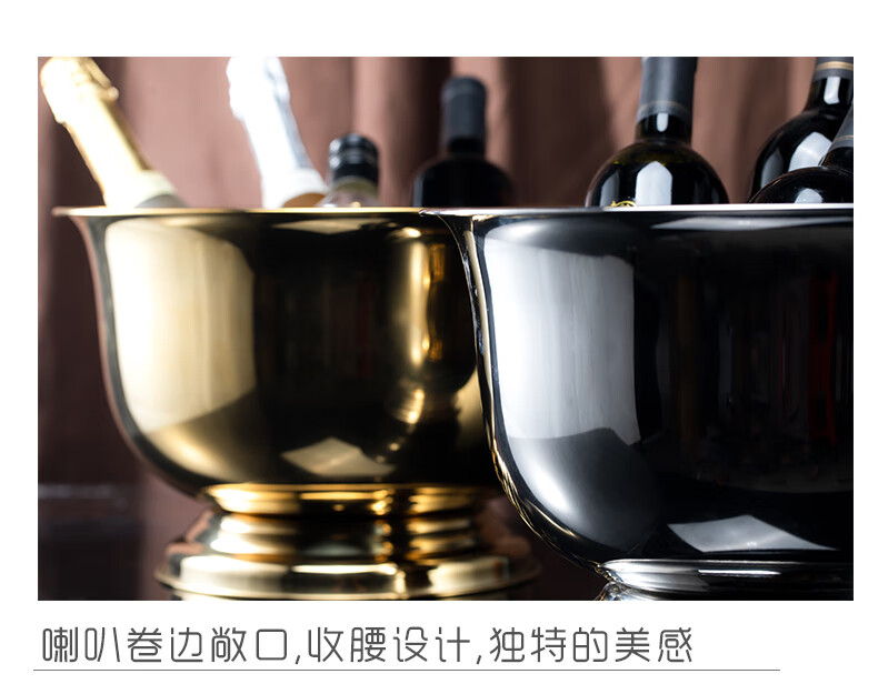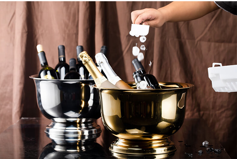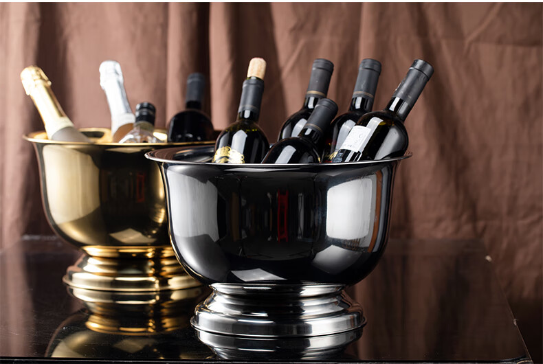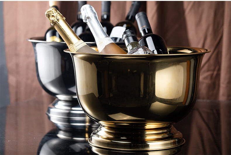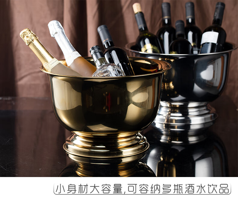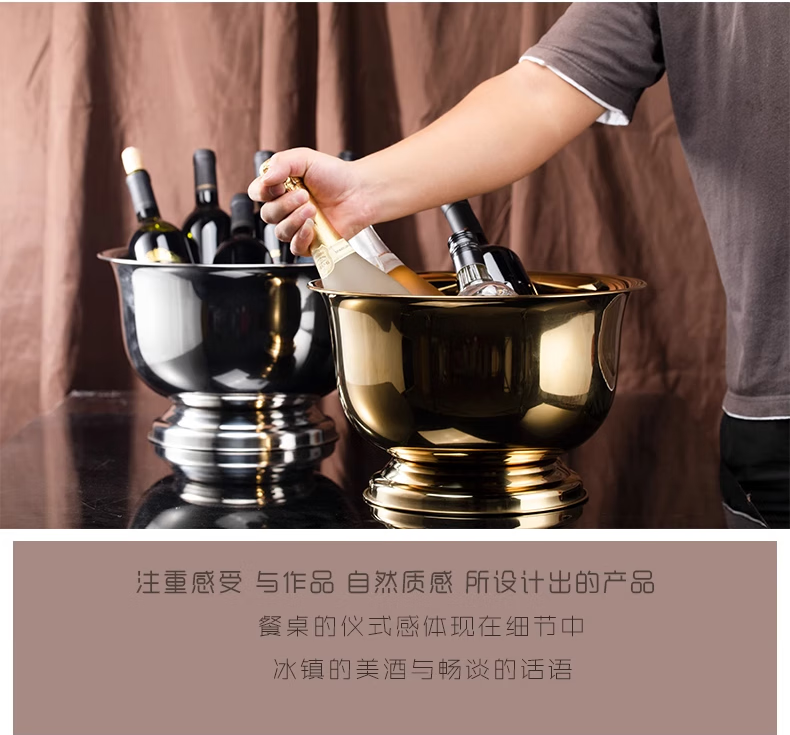 Half Sheng stainless steel champagne bucket European style new ice wine bucket outdoor champagne bucket bar club KTV soft decoration design golden champagne bucket/single