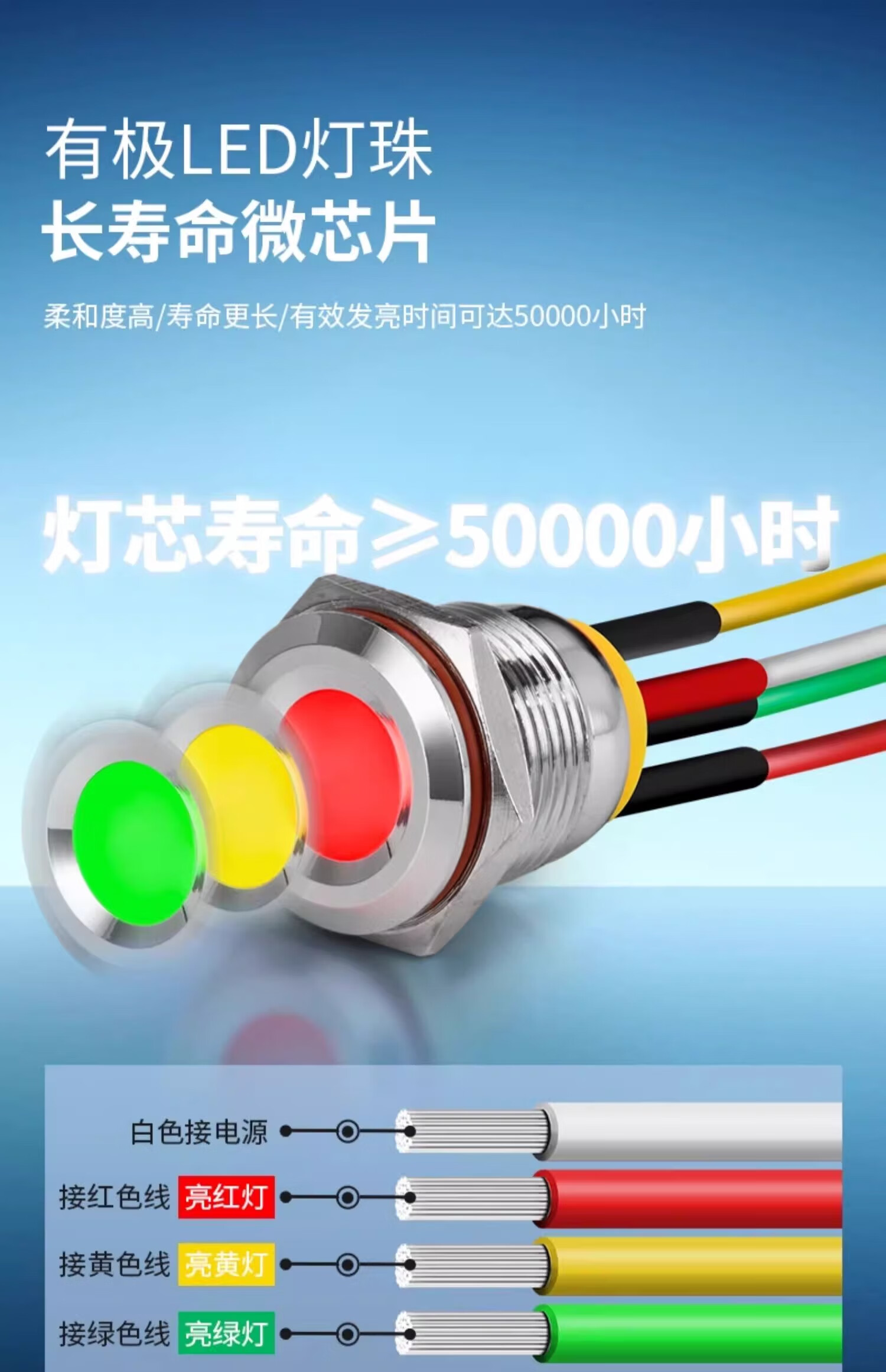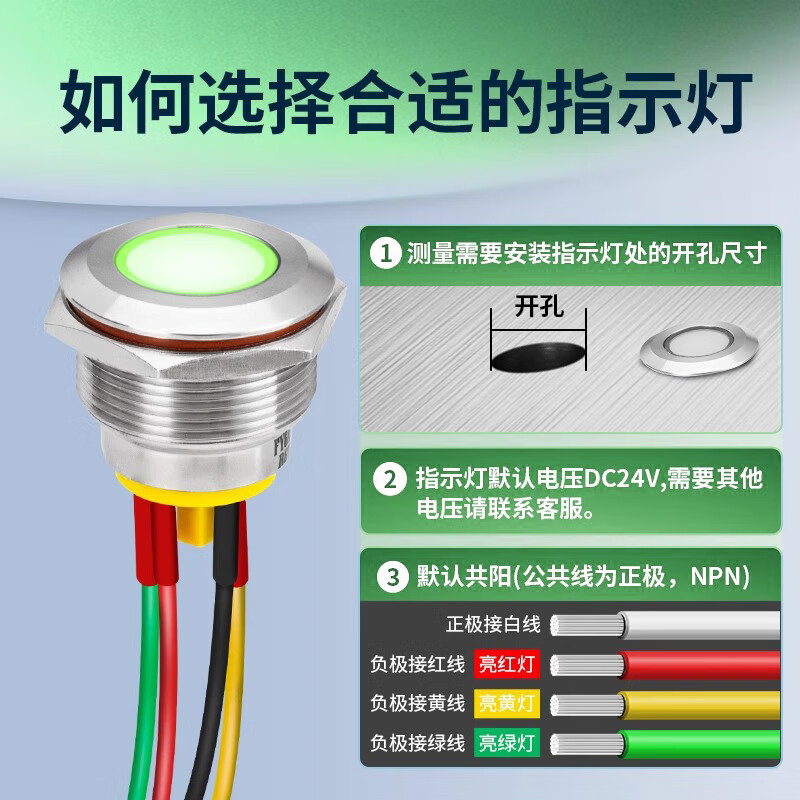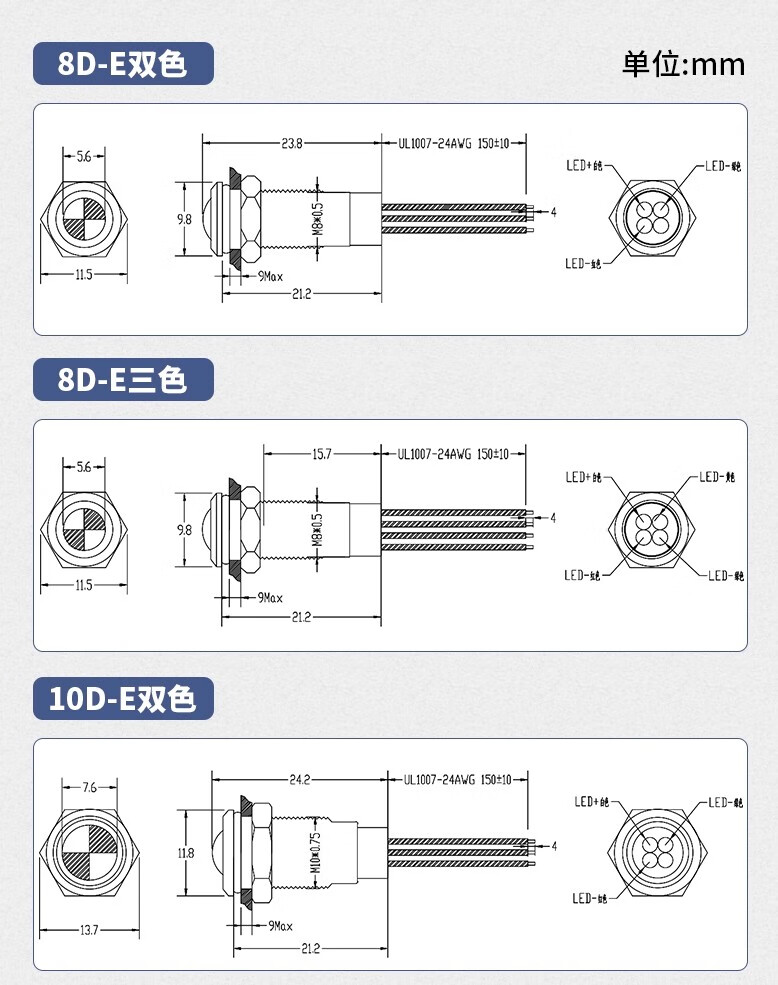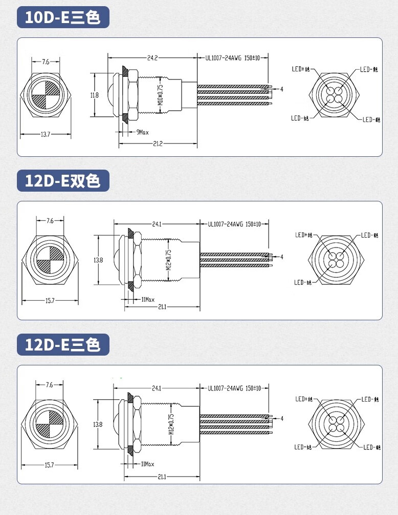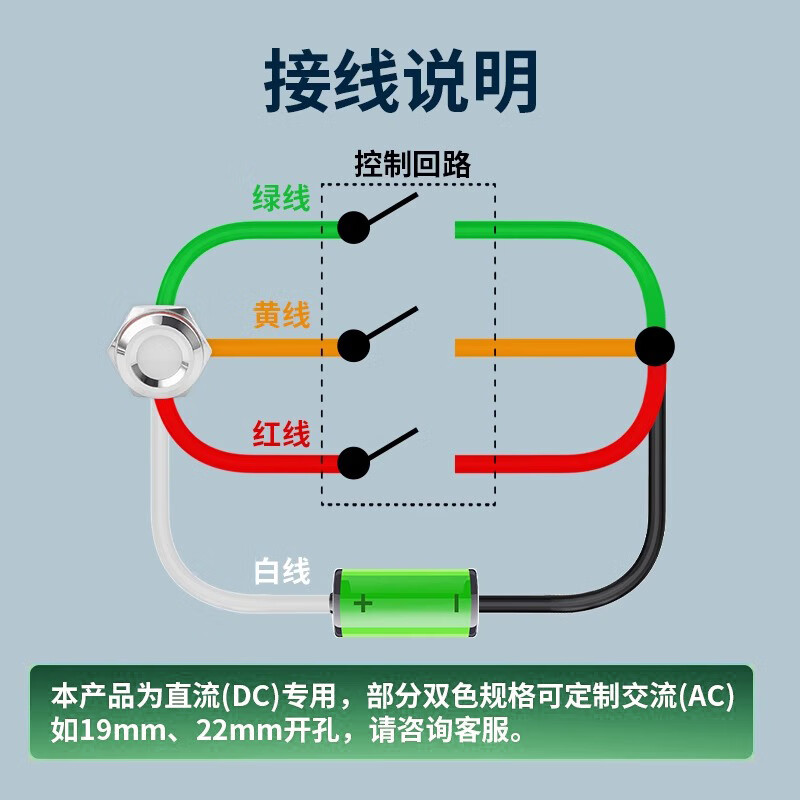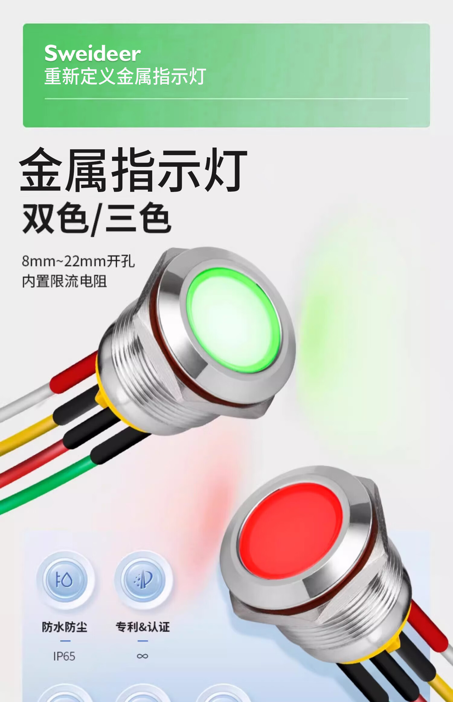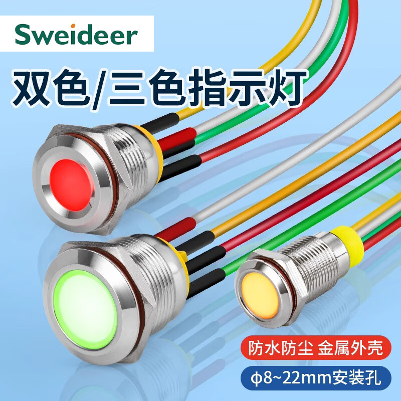 Sweideer 8/10MM two-color three-color LED waterproof metal signal light indicator light small power supply with cable other voltages or total negative photographed