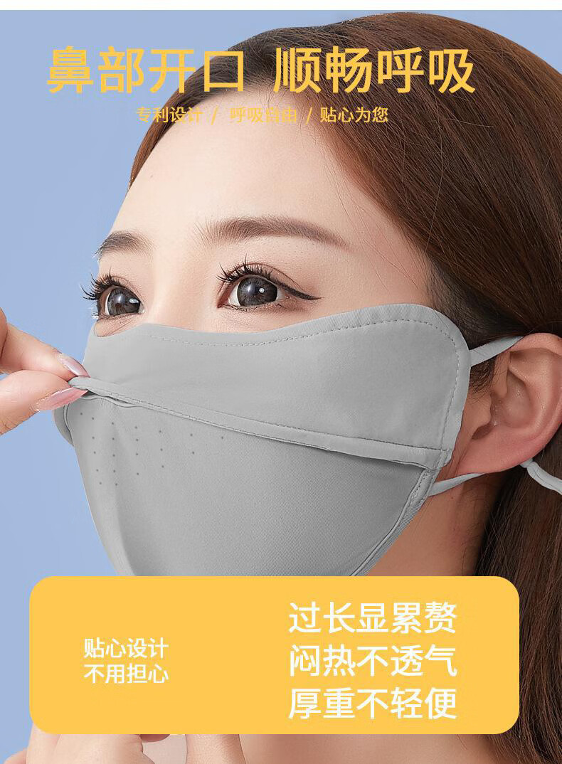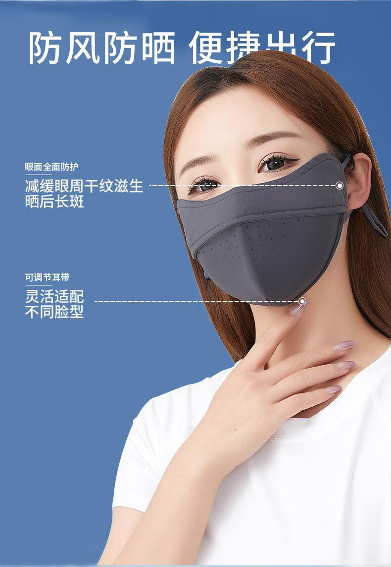 Sun protection mask, UV protection for high-looking women, exposed nose, eye protection, three-dimensional slimming, summer breathable sunshade mask, dark gray