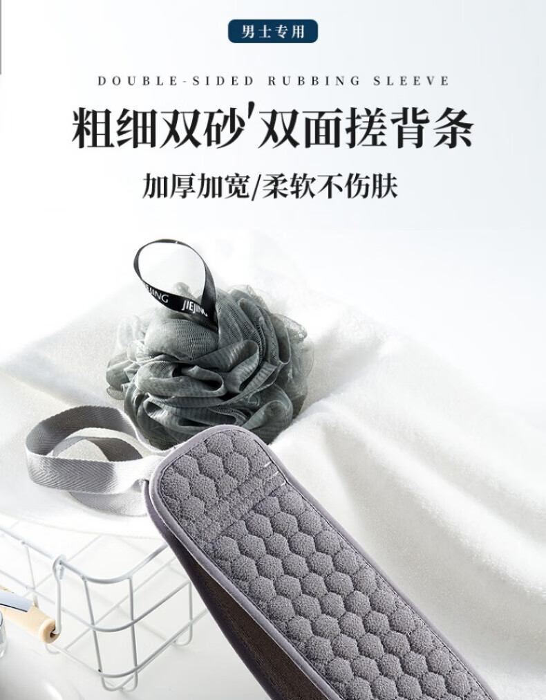 JCZS German quality bath towel, men's special bath and back rub artifact, home use without asking for help, strong mud rub, coarse sand strip, new gray, double layer lengthened and thickened