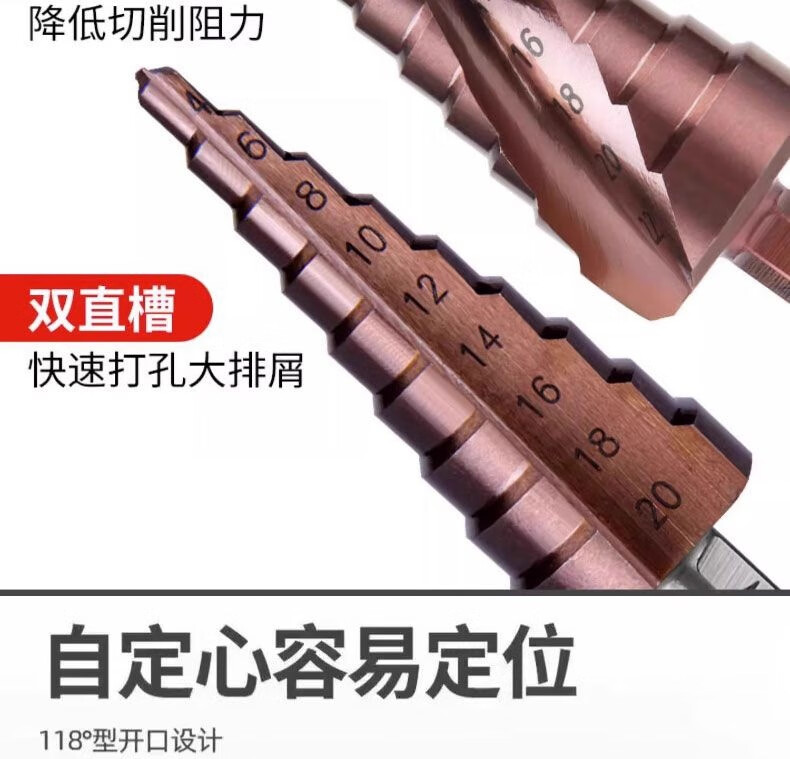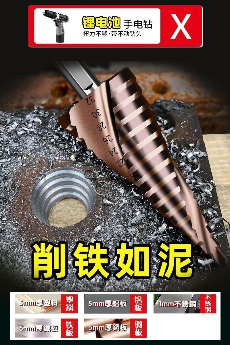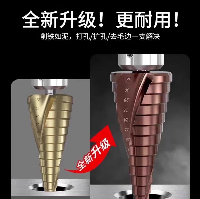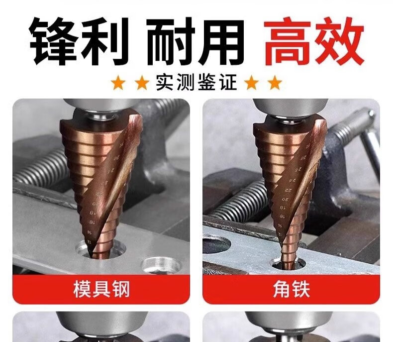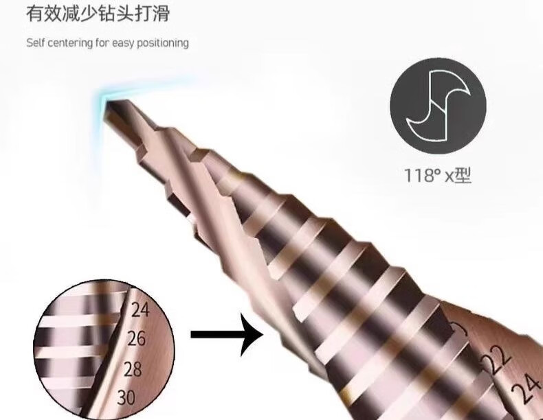 Meikejie M high hardness pagoda drill bit electric wrench reaming tungsten steel stainless steel metal tapered extra hard cobalt-containing hole opener containing cobalt/4-22 (ten layers) with electric wrench adapter M35 spiral groove/buy five and get one, recommended by the master