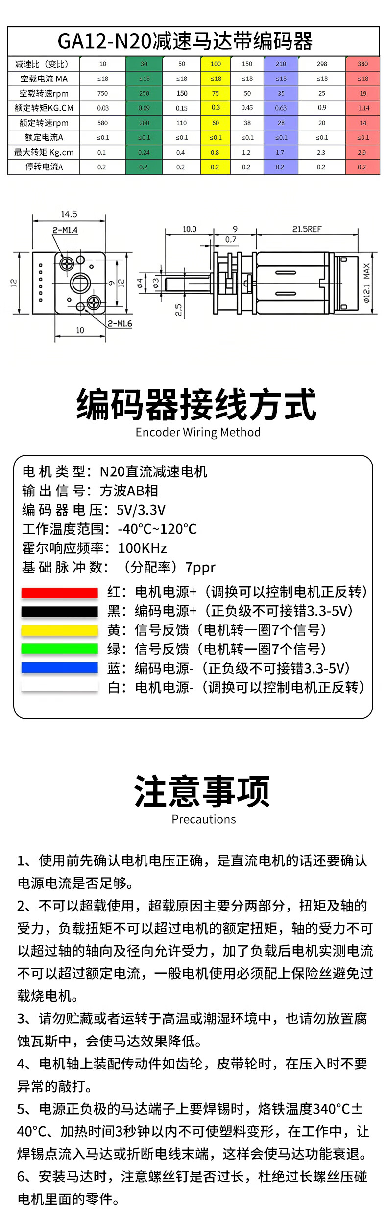 Precision N20 reduction motor DC3V3.7V5V 6V DC slow motor miniature all-metal gear reduction box commonly used new N20 motor (reduction ratio 1 240 shaft length 15mm)