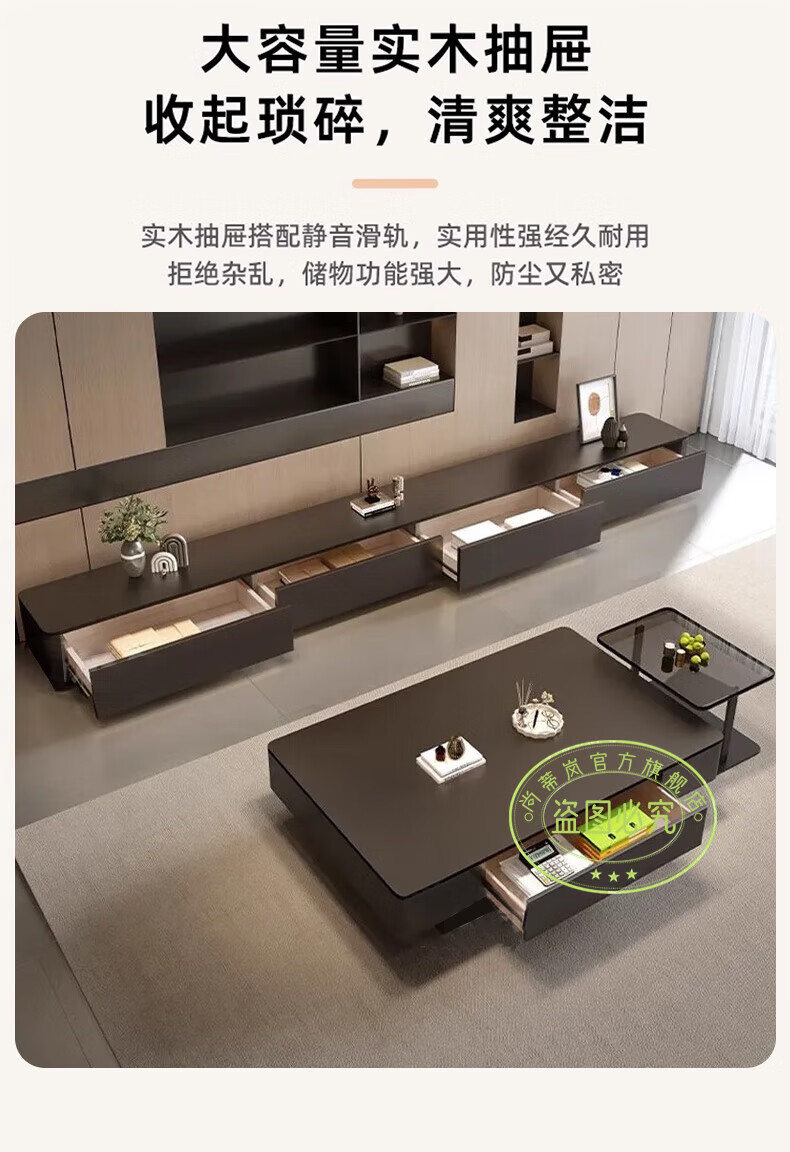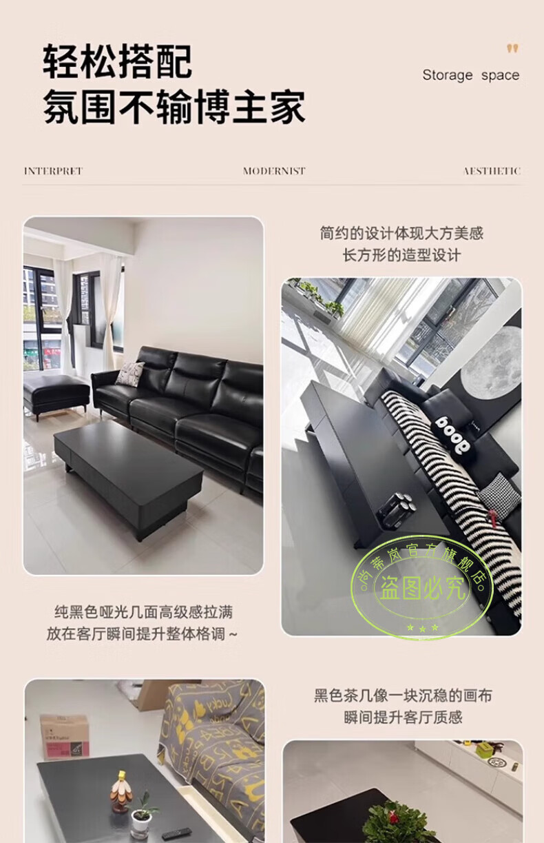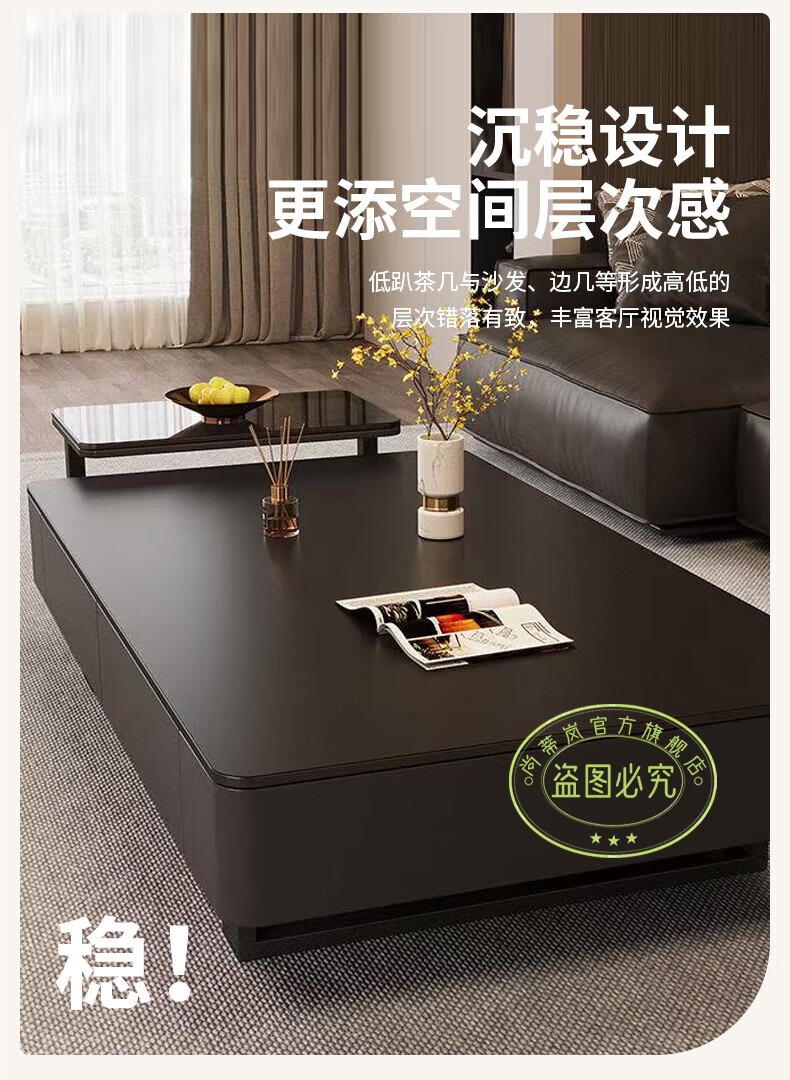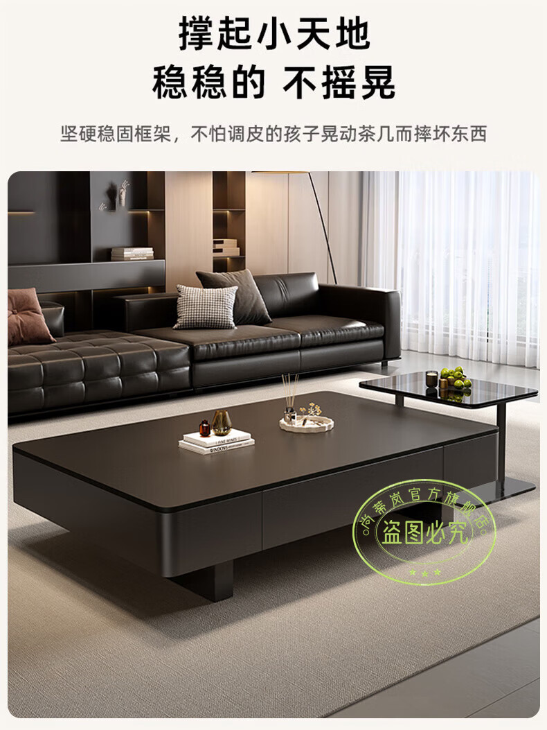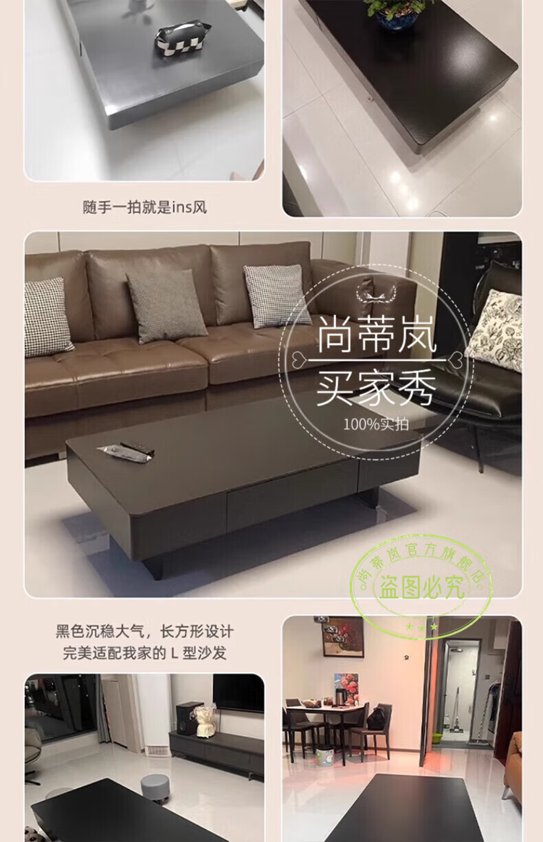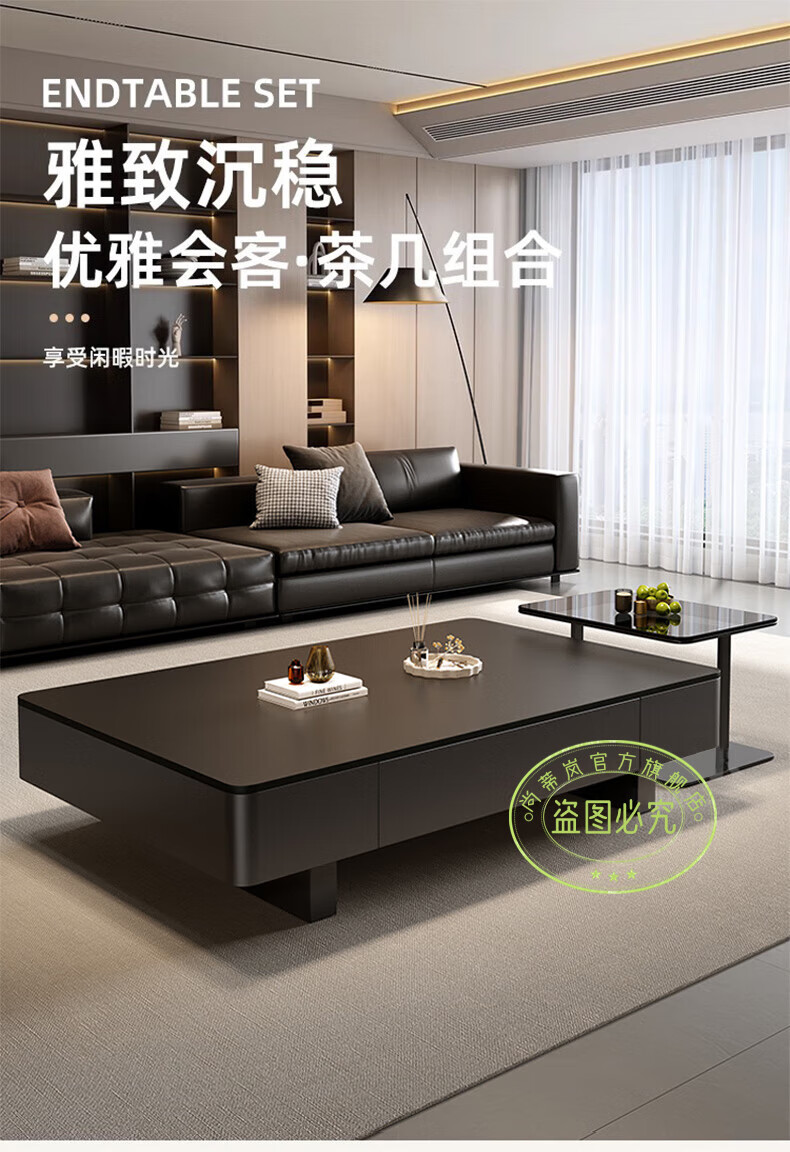 Shantilan slate coffee table living room light luxury high-end mobile small coffee table small apartment modern simple coffee table rectangular tea machine 140*60 pure black slate + black cabinet black frame