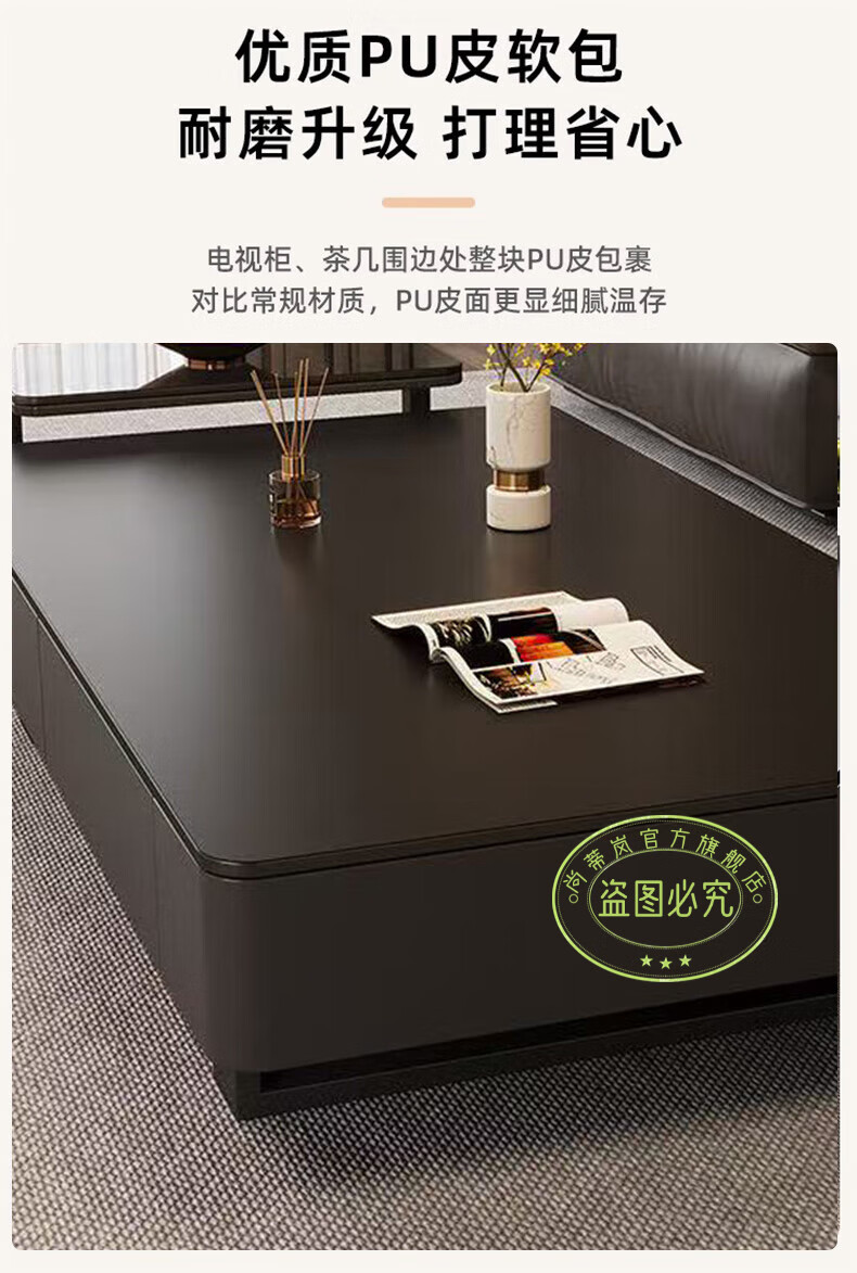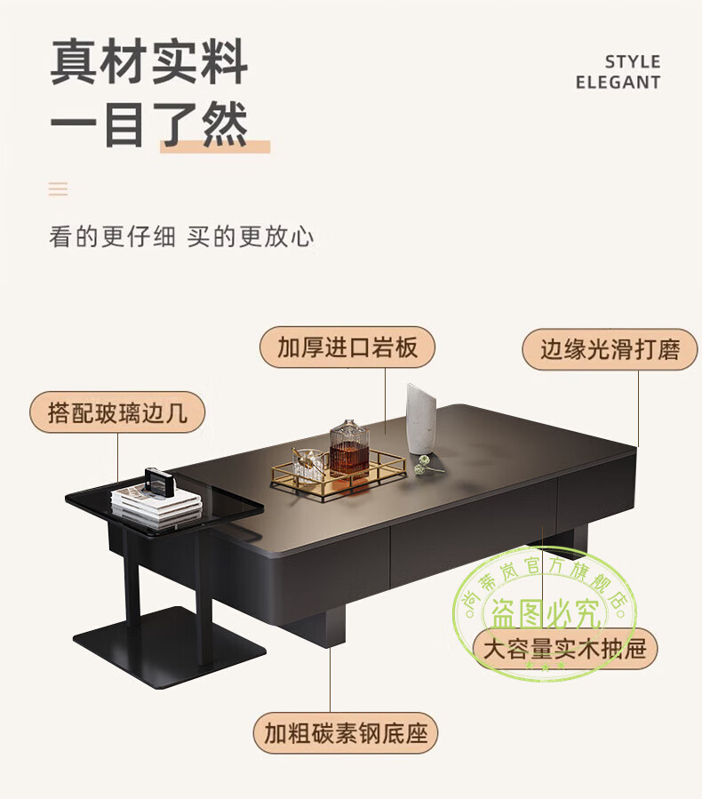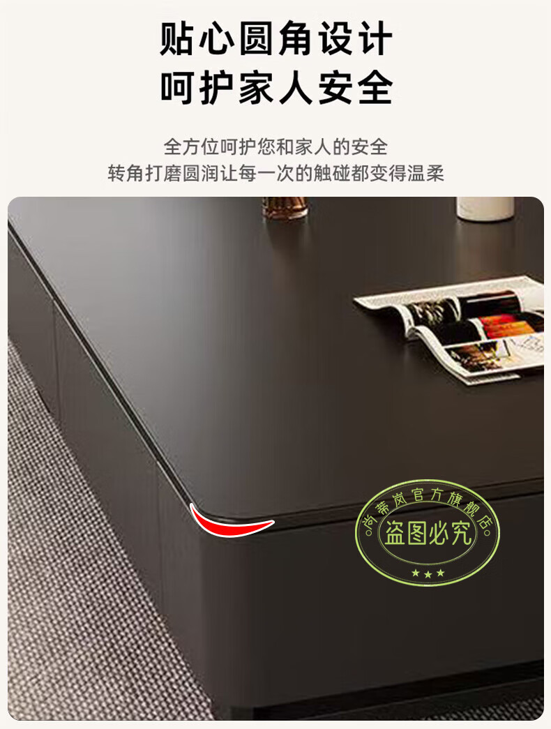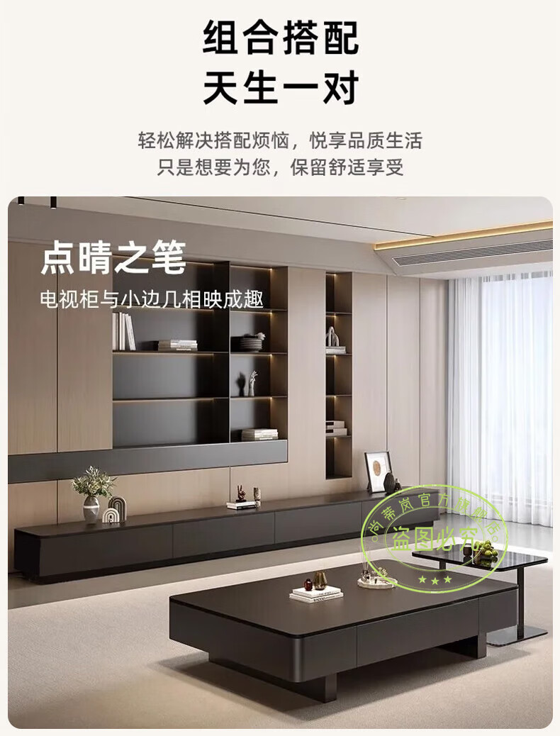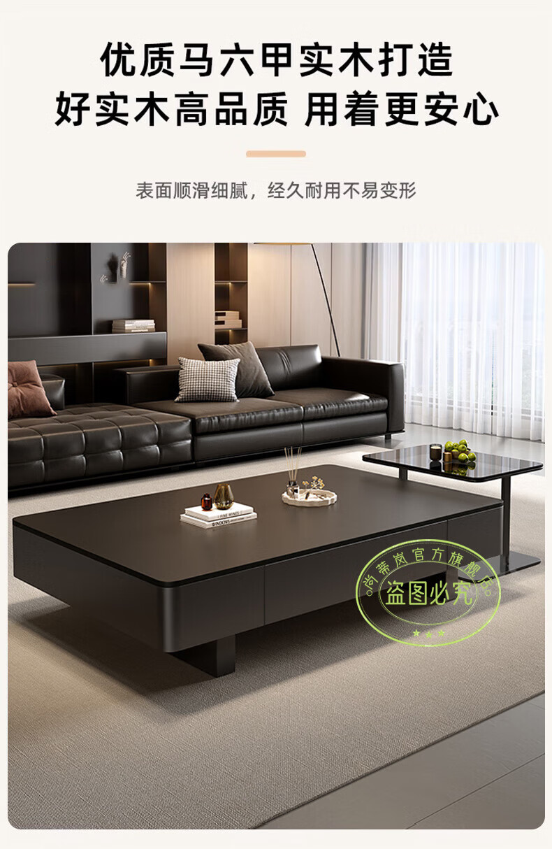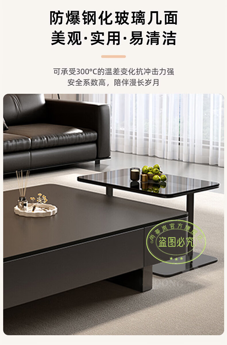 Shantilan slate coffee table living room light luxury high-end mobile small coffee table small apartment modern simple coffee table rectangular tea machine 140*60 pure black slate + black cabinet black frame