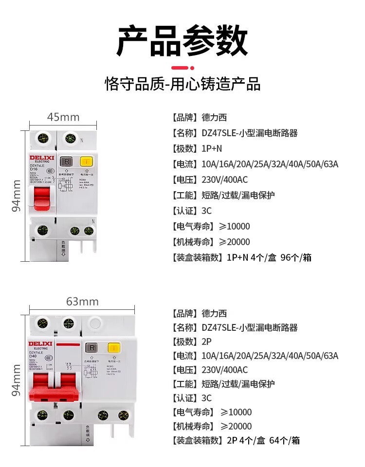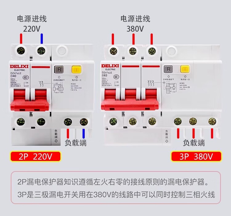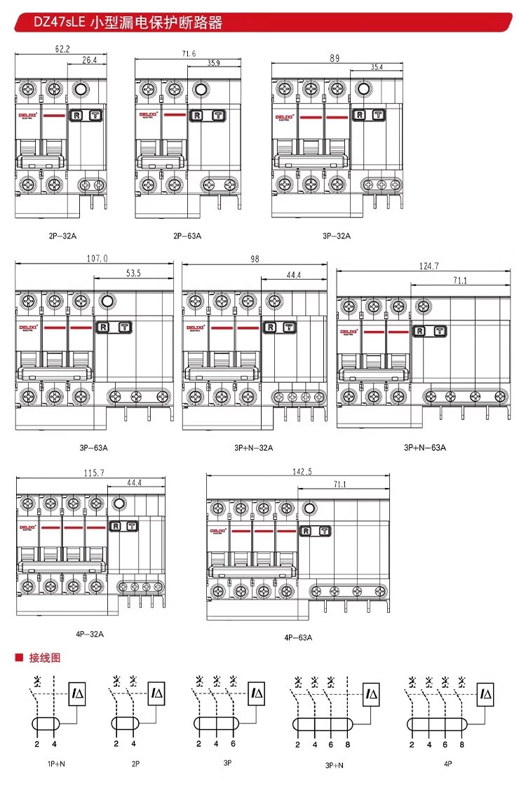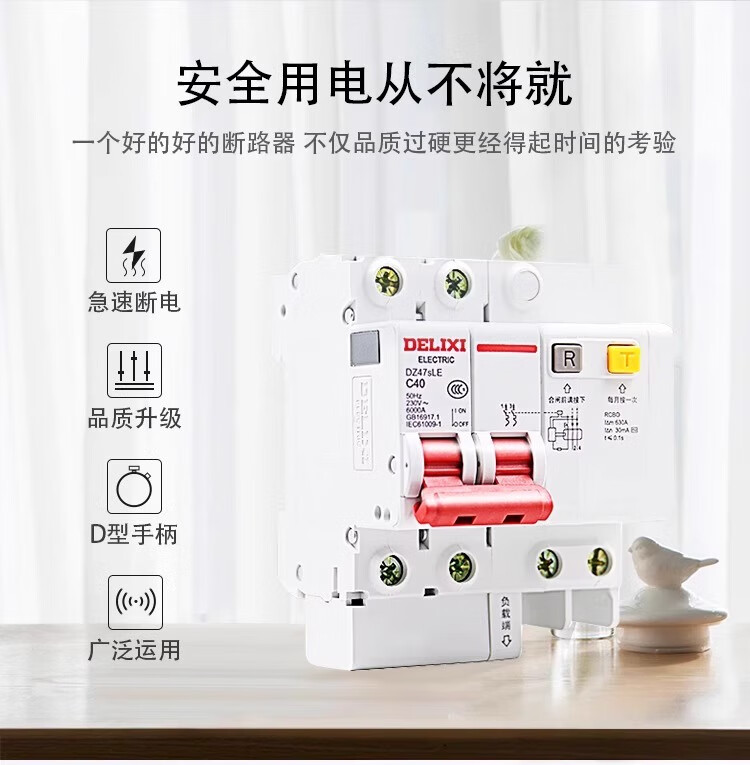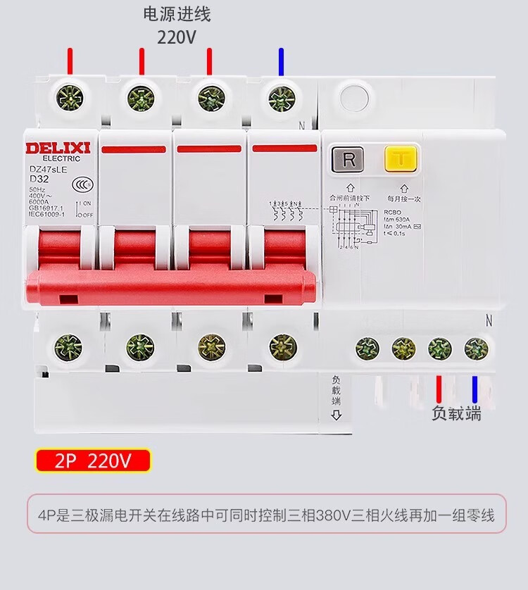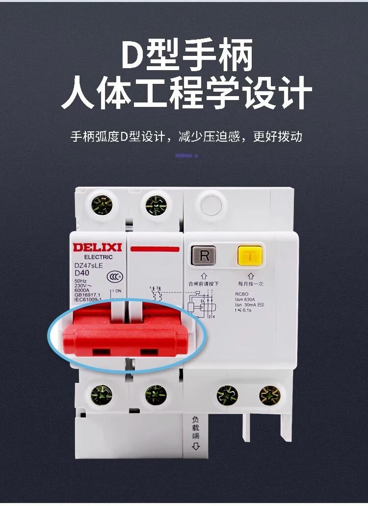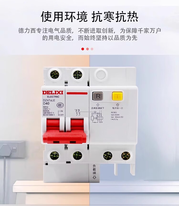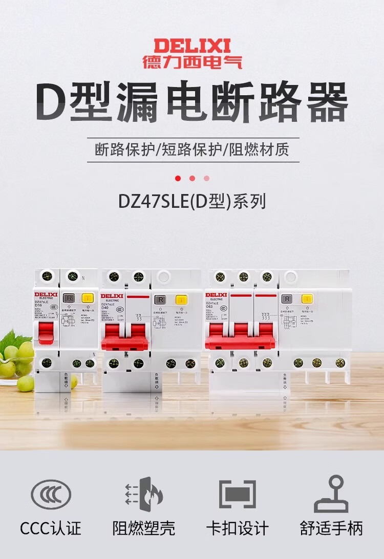 Delixi Electric Delixi D-type leakage protection switch DZ47SLE power 2P63a 220V air conditioner 32 three-phase 3P circuit breaker 40A 2P
