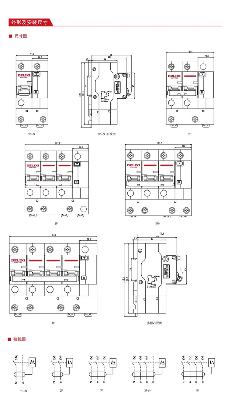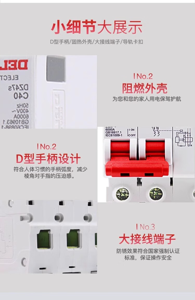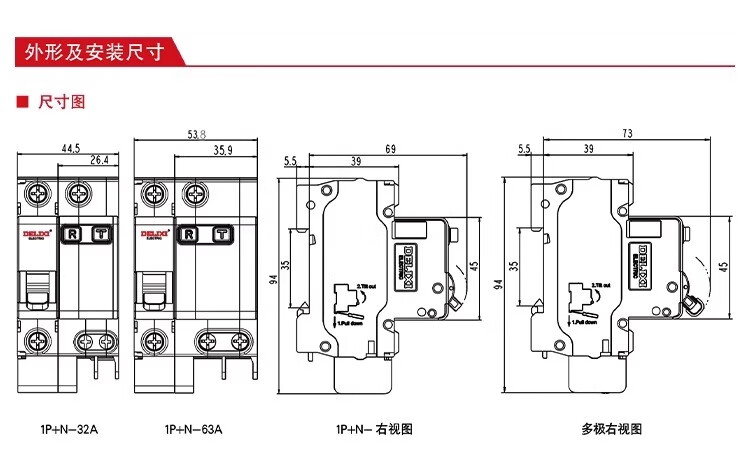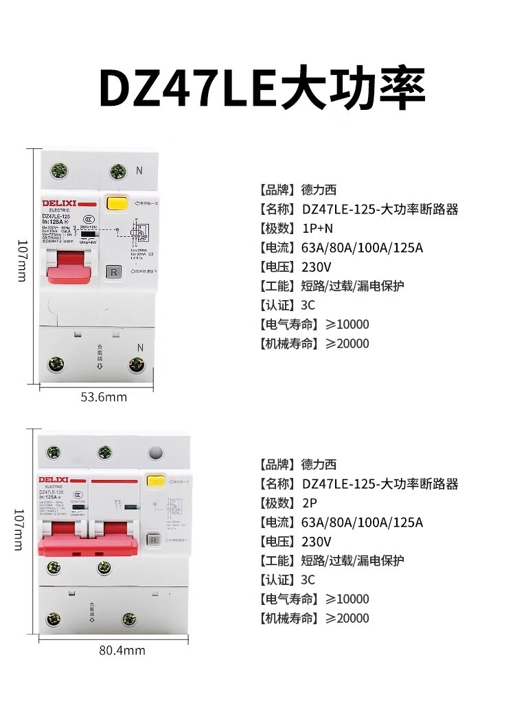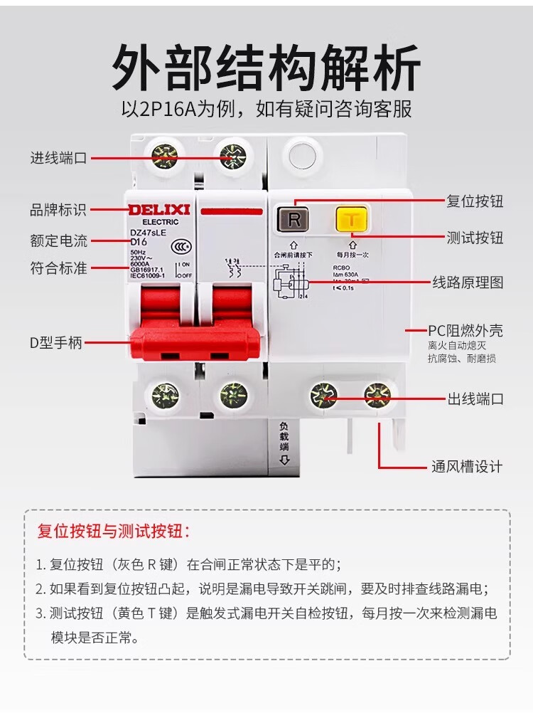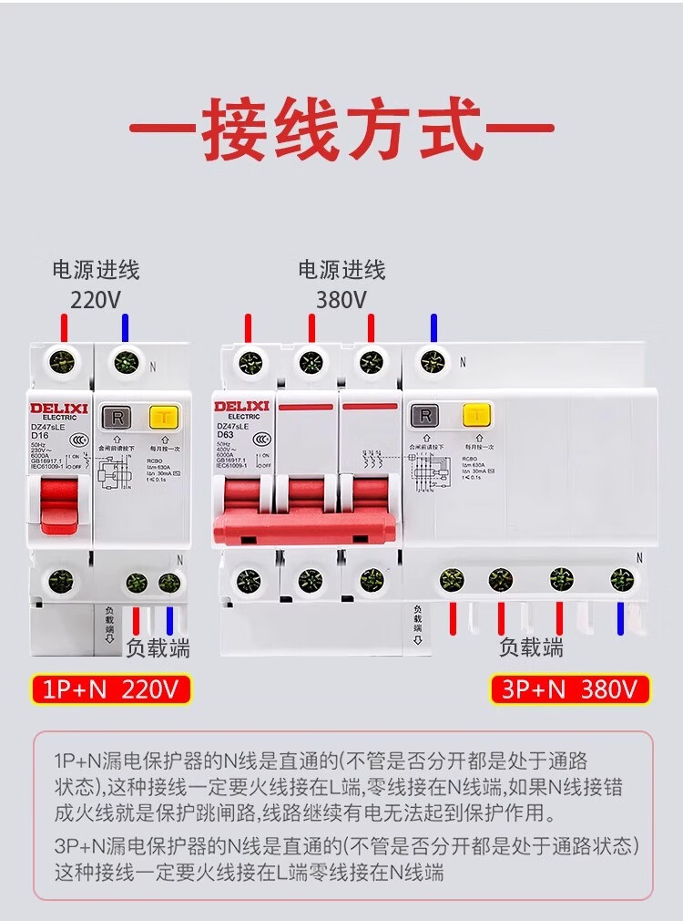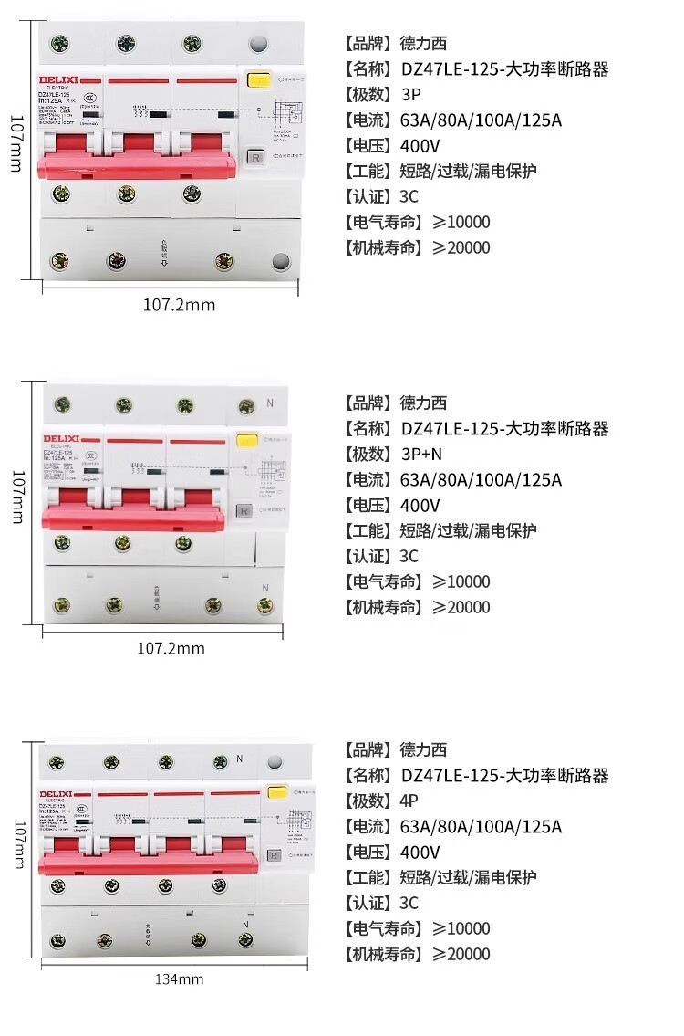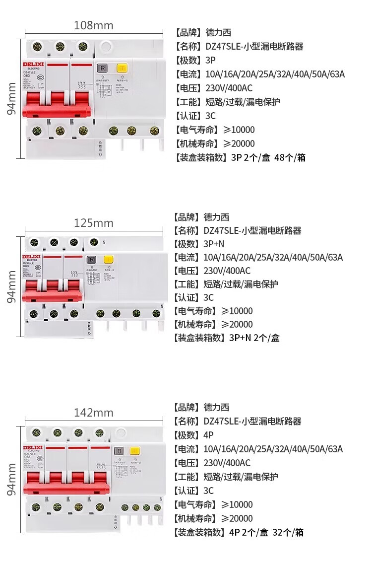 Delixi Electric Delixi D-type leakage protection switch DZ47SLE power 2P63a 220V air conditioner 32 three-phase 3P circuit breaker 40A 2P