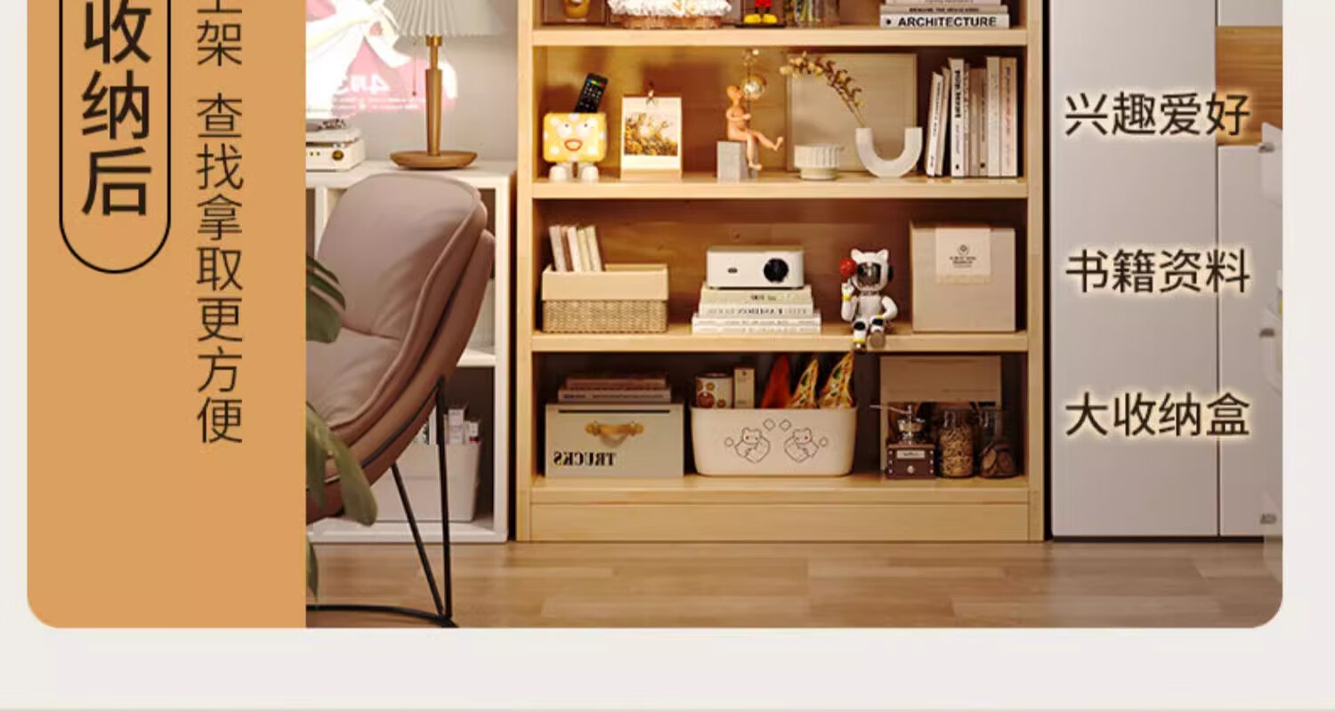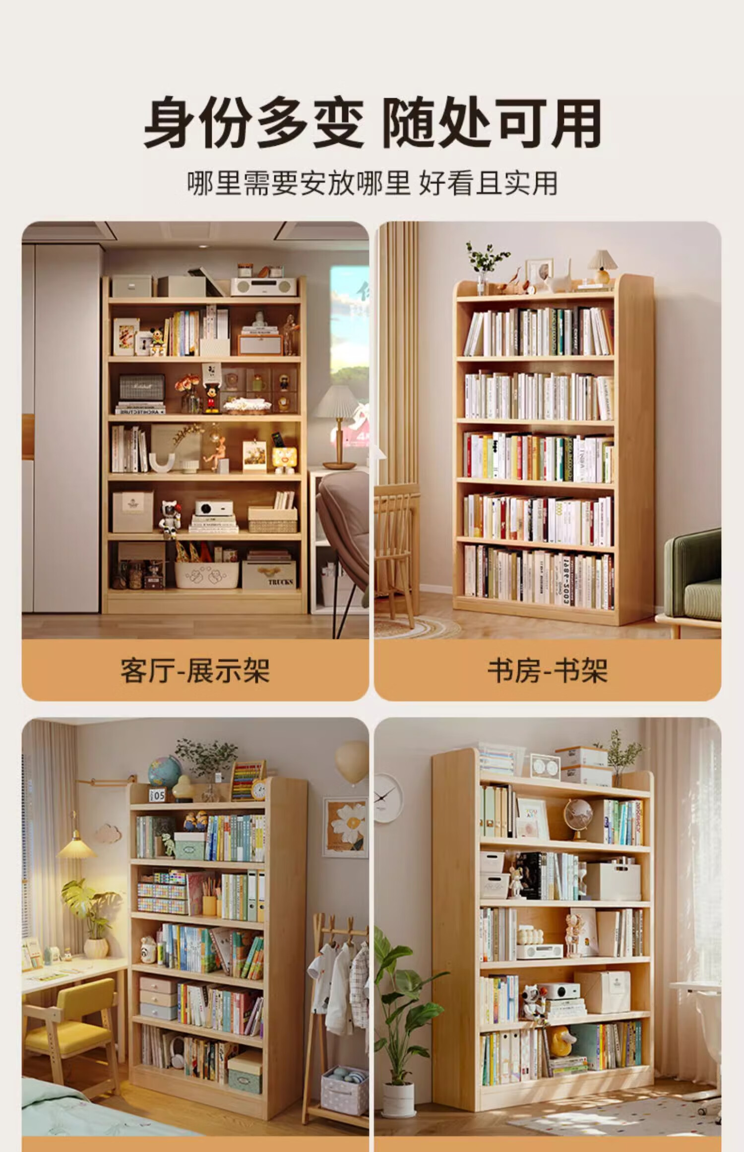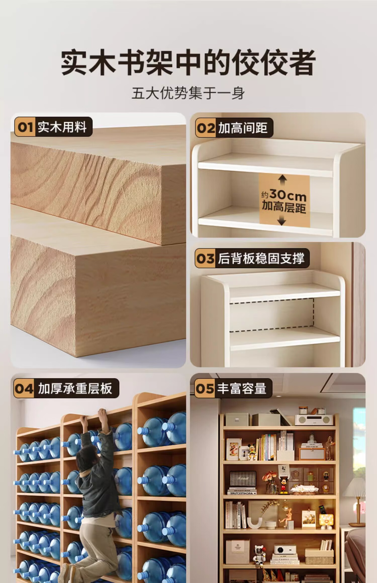 Zhongtao solid wood bookshelf floor-standing storage rack living room simple storage storage cabinet children's narrow gap corner cabinet home bookcase all solid wood 15MM plate five layers 40x30