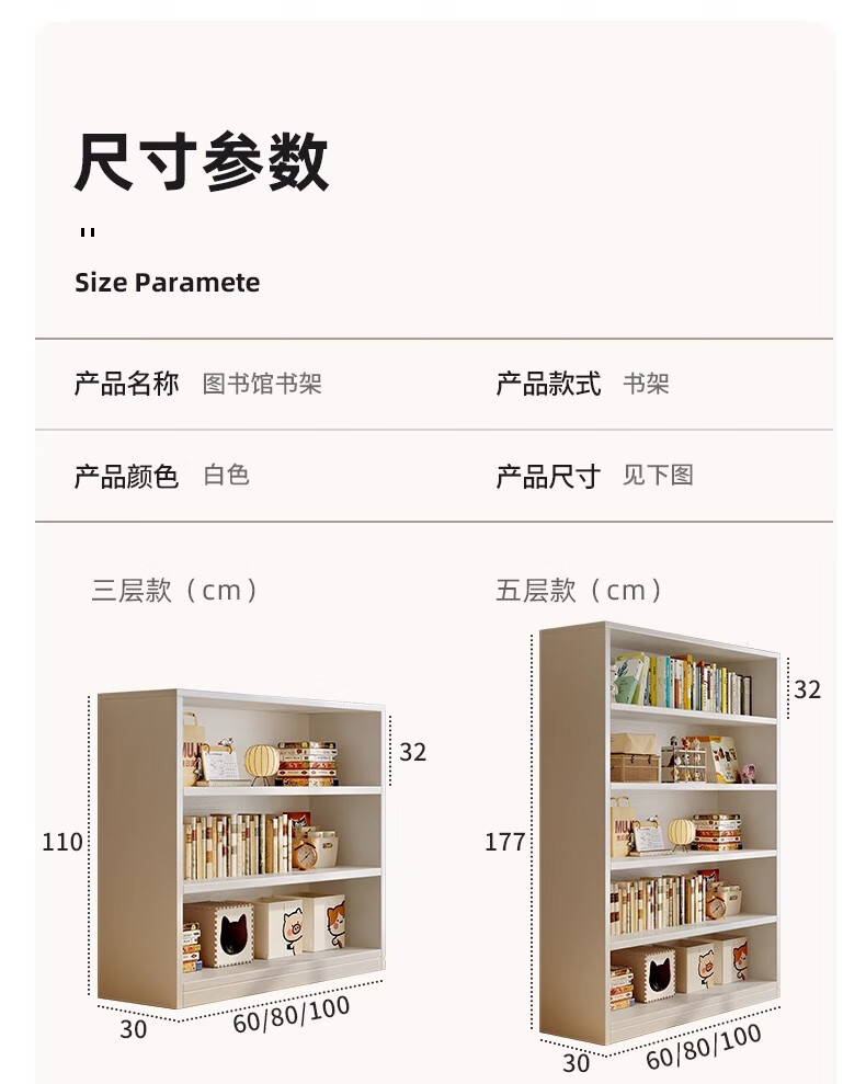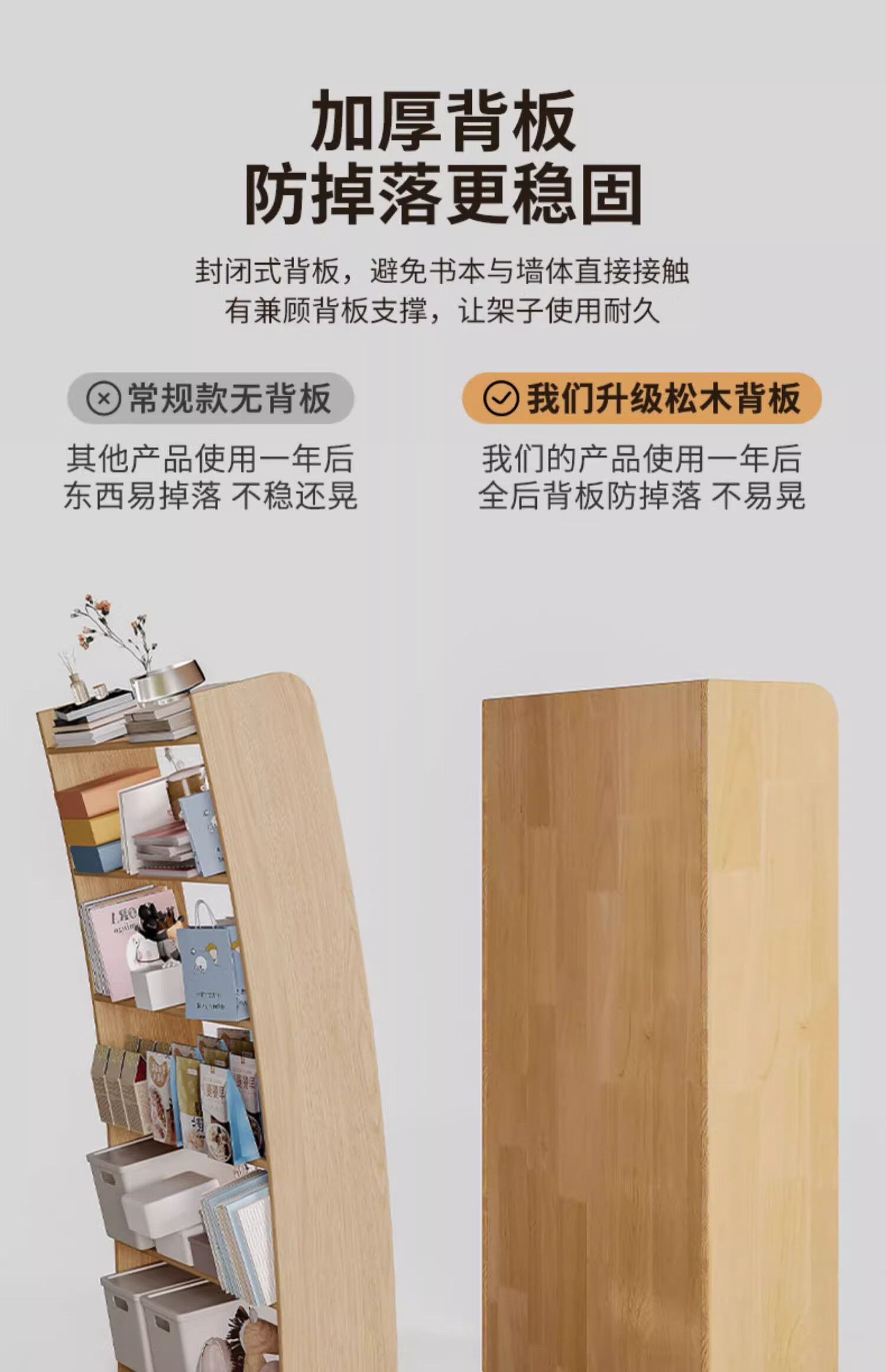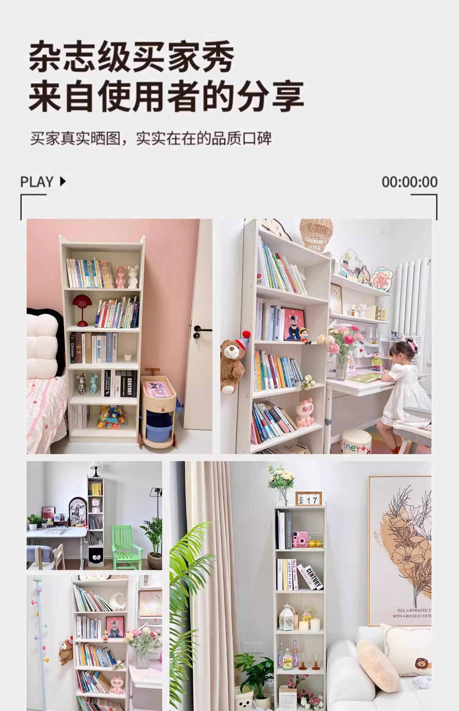 Zhongtao solid wood bookshelf floor-standing storage rack living room simple storage storage cabinet children's narrow gap corner cabinet home bookcase all solid wood 15MM plate five layers 40x30