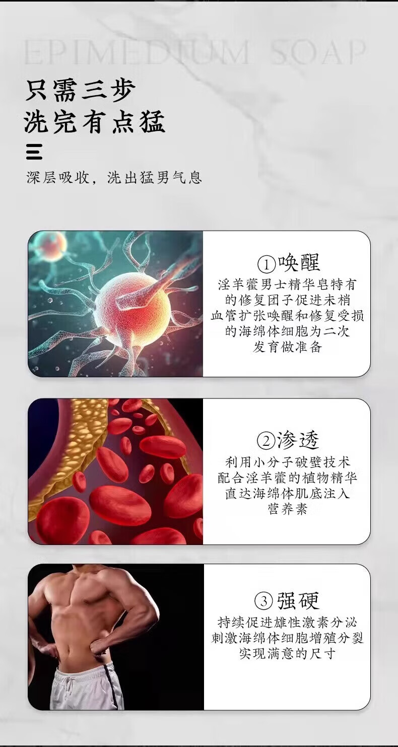 The golden gun will never fail. Epimedium soap for men will thicken, enlarge, grow and harden the corpus cavernosum for secondary development after washing. Single box. Hard after washing.