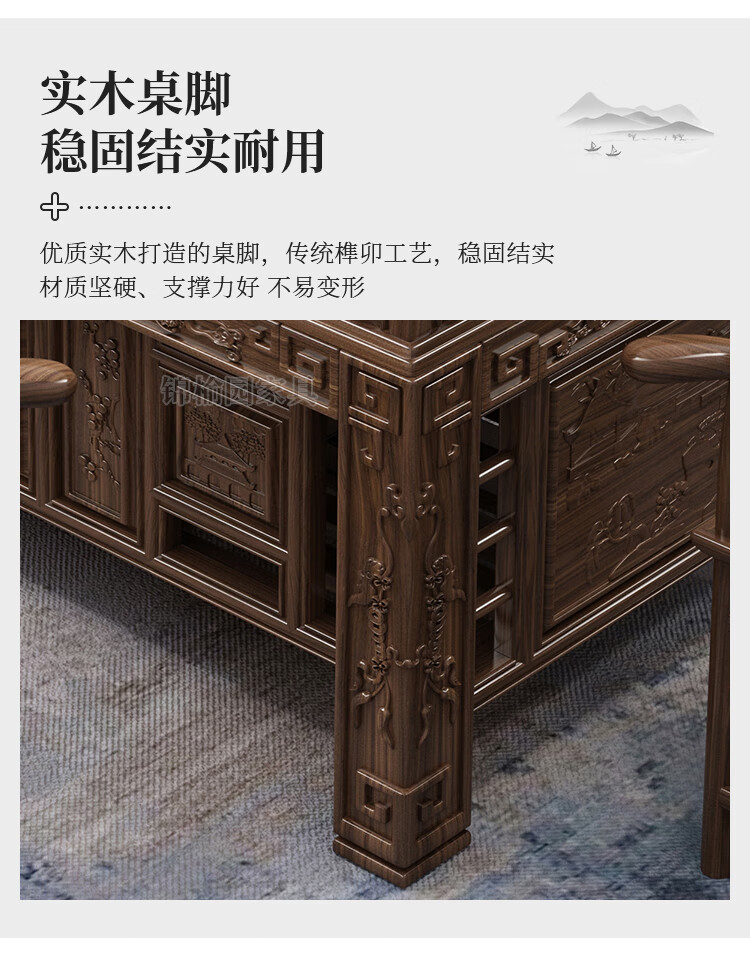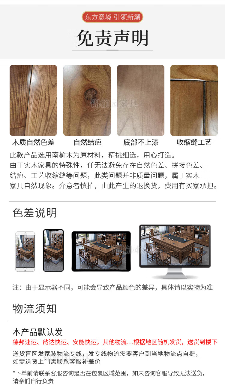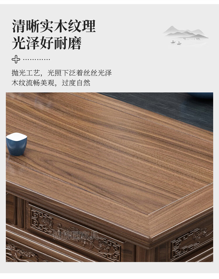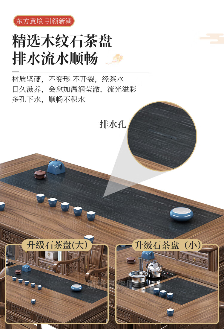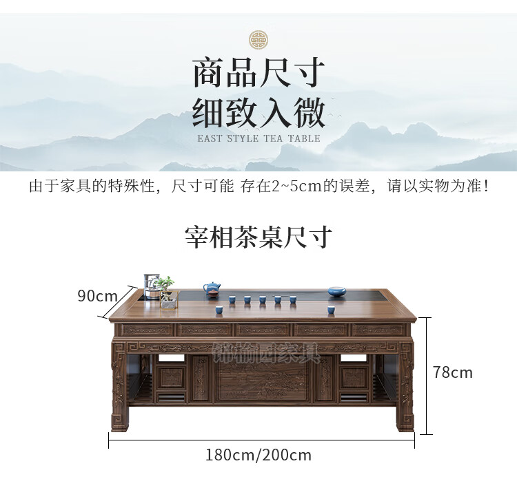 Jinyuyuan old elm solid wood tea table and chair combination office home tea table integrated modern simple Kung Fu Zen tea table 1.8 meters tea table + 1 armchair + 4 crescent chairs / wooden tea tray