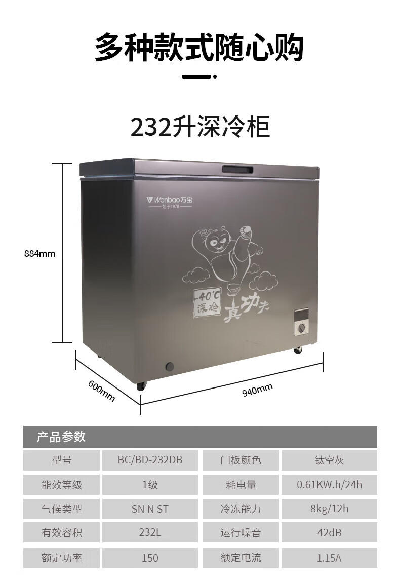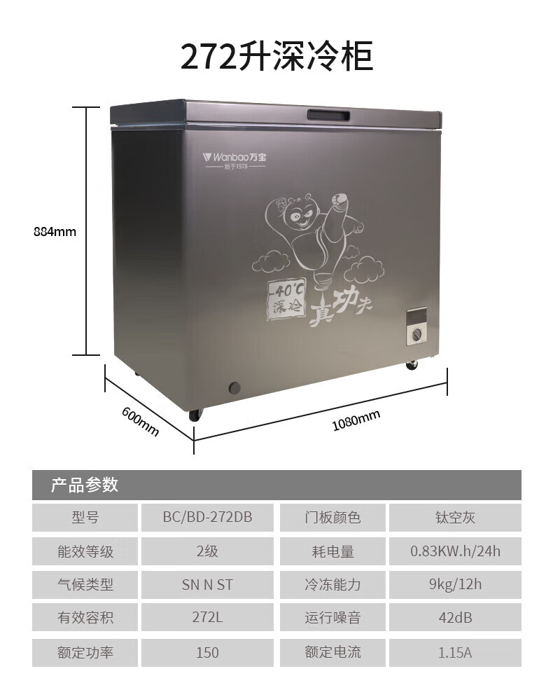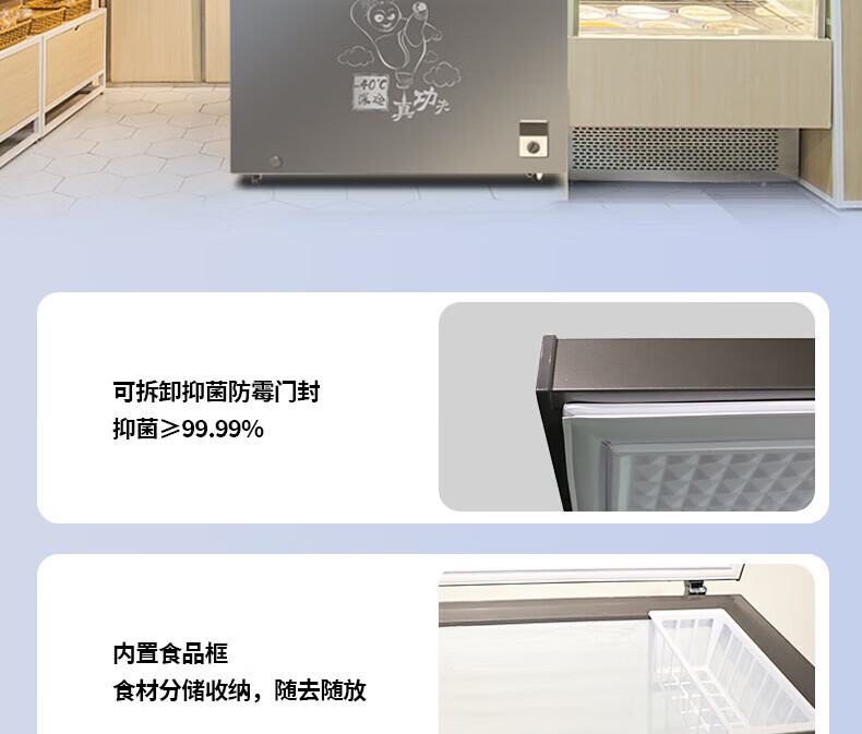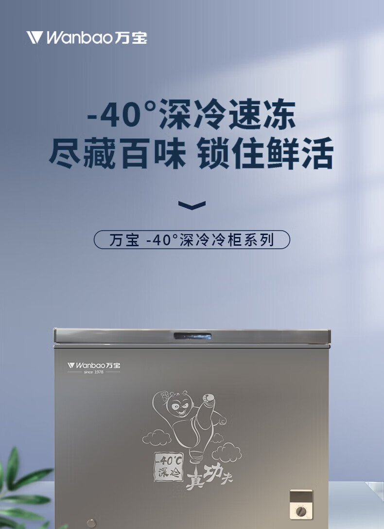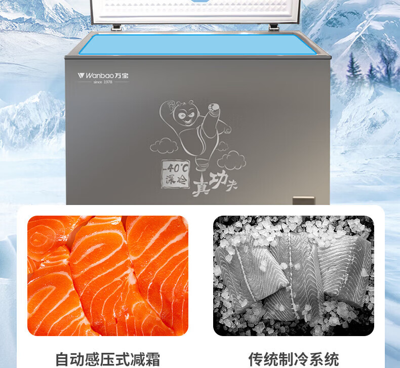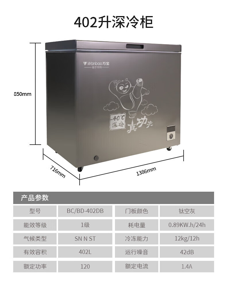 Wanbao horizontal freezer - 40 degrees Cryogenic 80% frost reduction antibacterial liner quick freezing fully frozen household commercial freezer dark gray 402L secondary energy efficiency cryogenic -40