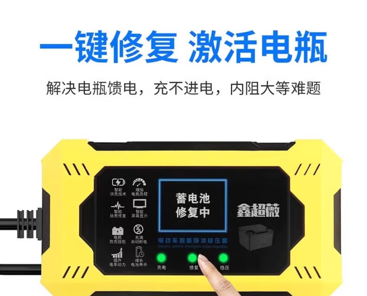 Electric vehicle battery repairer for two or three-wheel electric vehicles activates the battery universal pulse repair battery automatic power-off supreme battery repairer imported chip