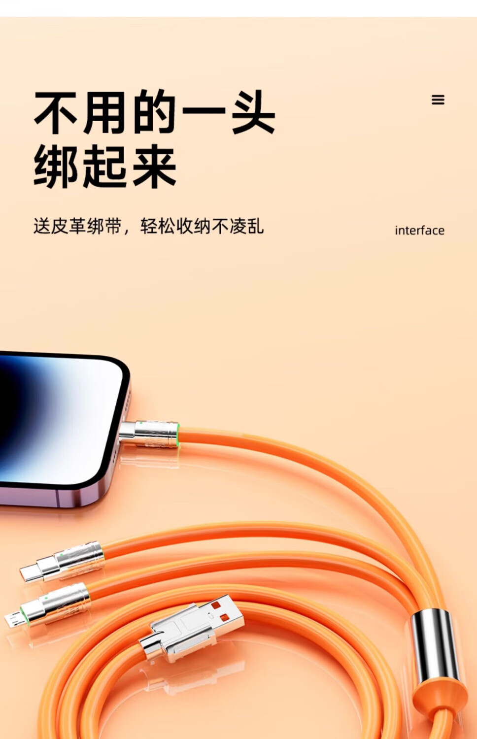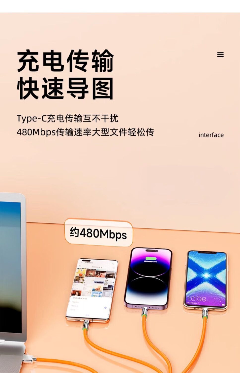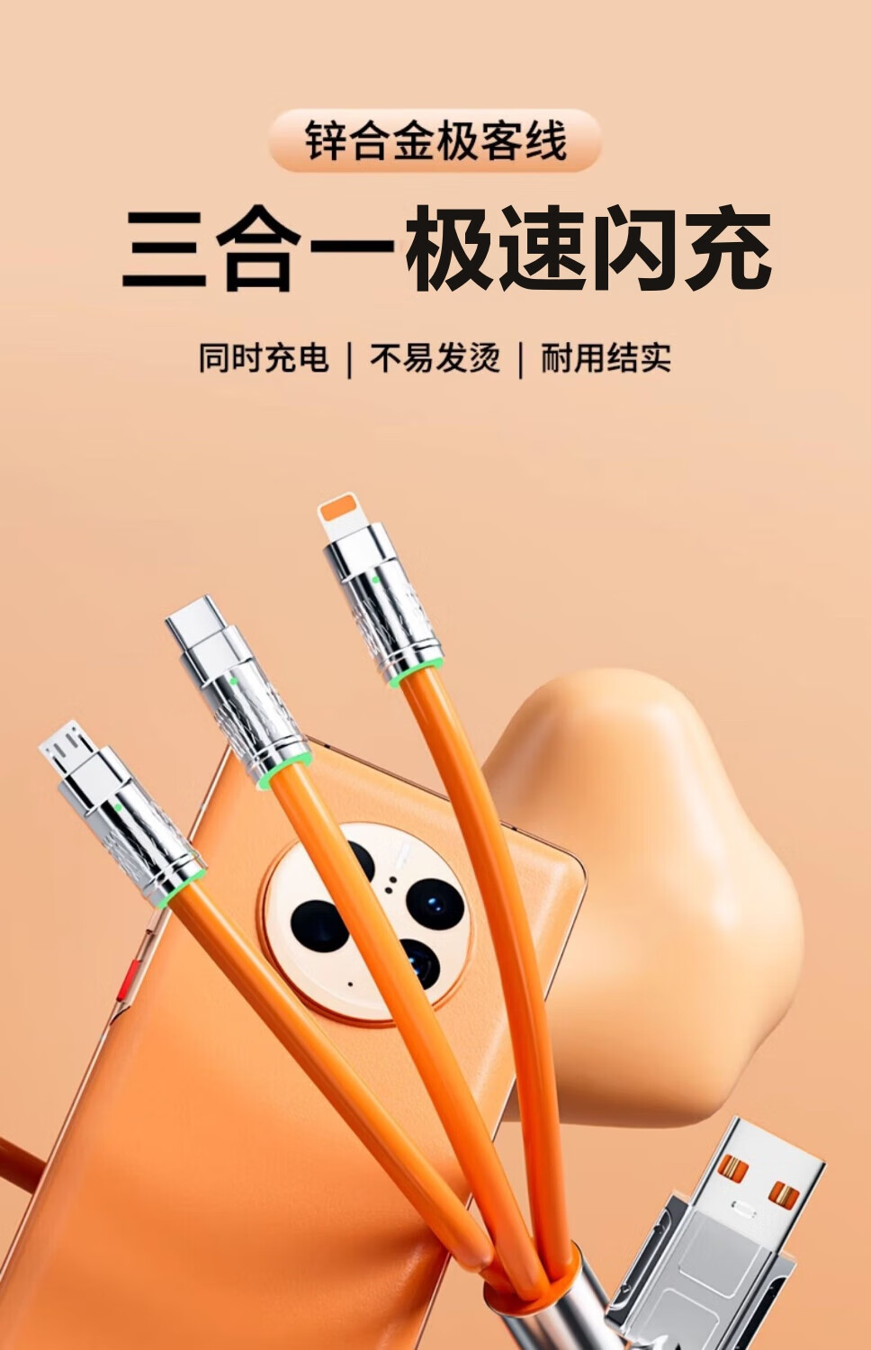 St. Heaton's new fast charging data cable, three-in-one charging cable, one-to-three, suitable for Huawei TYPE-C, suitable for Apple, suitable for Honor, suitable for Xiaomi Android mobile phones, flash charging, universal car, 1 meter, cream white, 6A super fast charge